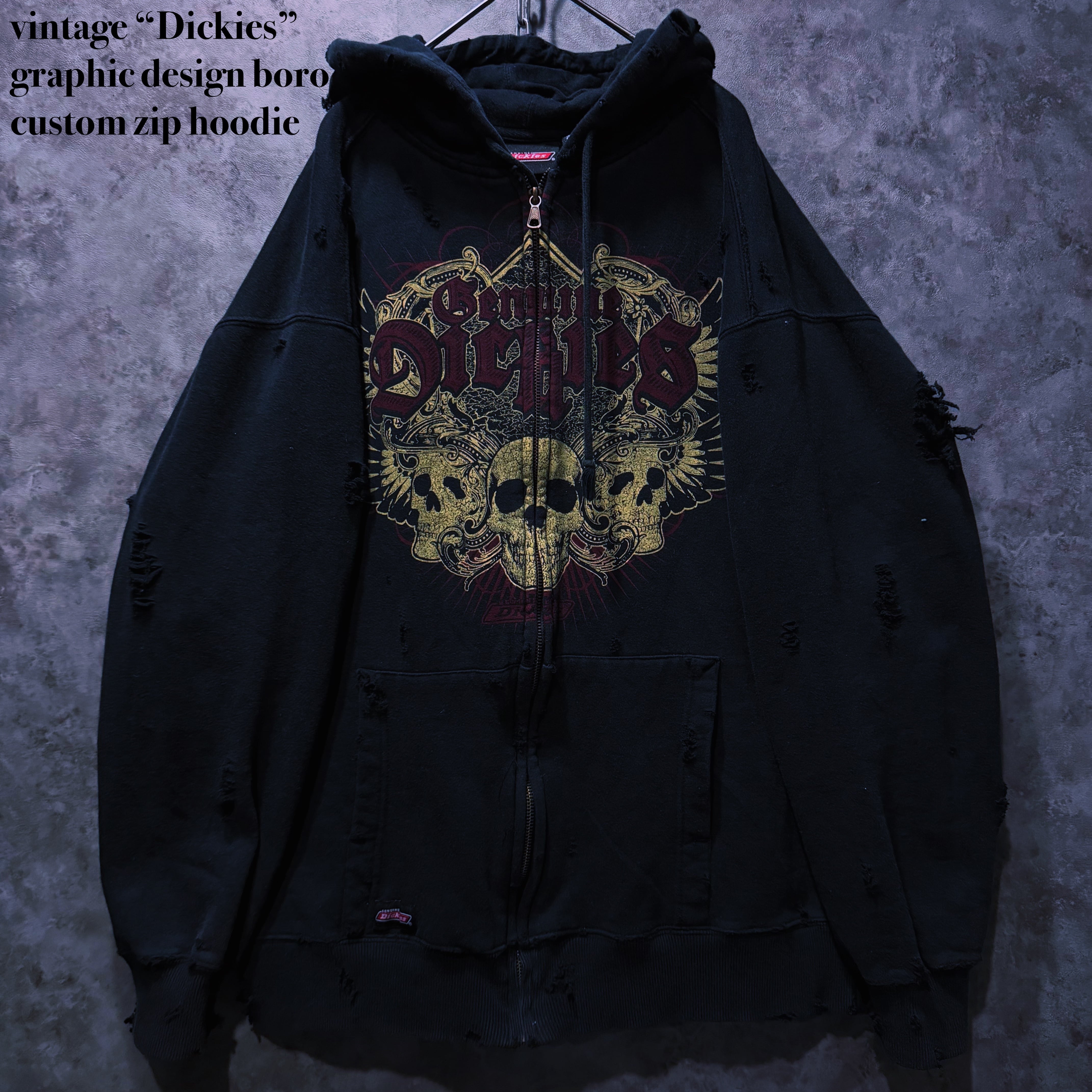 ヴィンテージ“Dickies”グラフィックデザインボロカスタムジップフーディ
