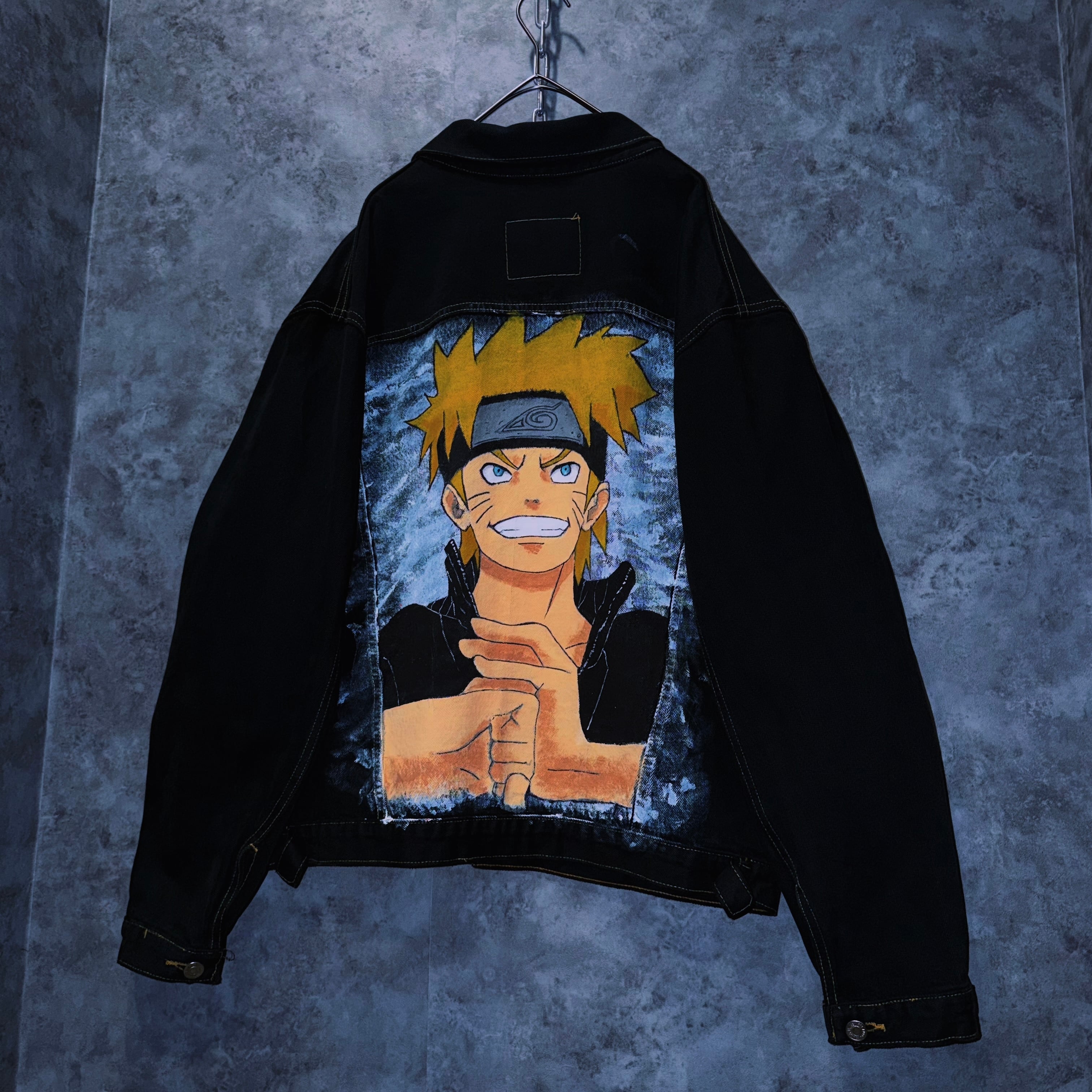 バックには大きく“NARUTO”のキャラクターがペイントデザインされており、後ろからのインパクトも申し分なし。デニムジャケットでありながら、ナードな雰囲気を取り込んだ個性的な一枚。