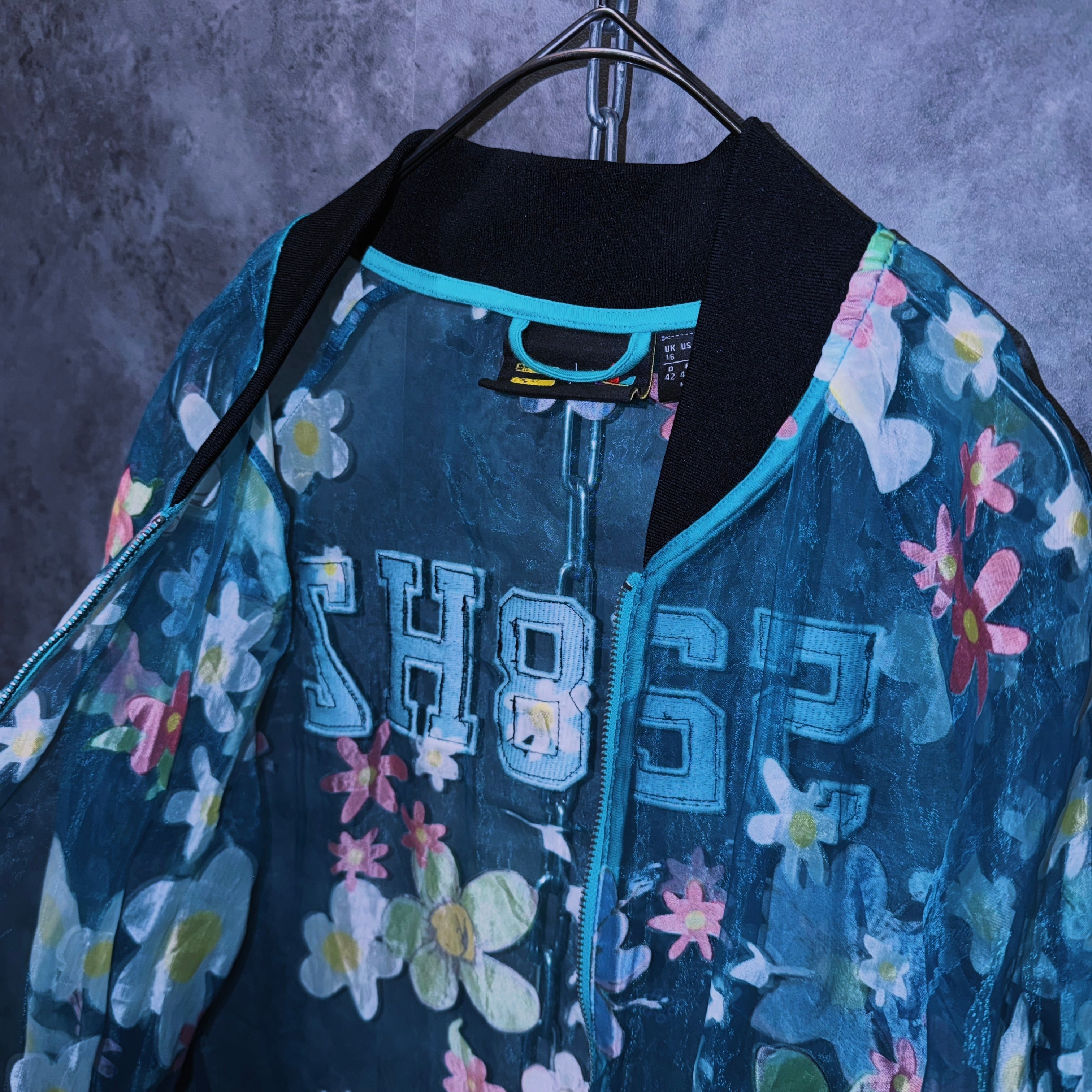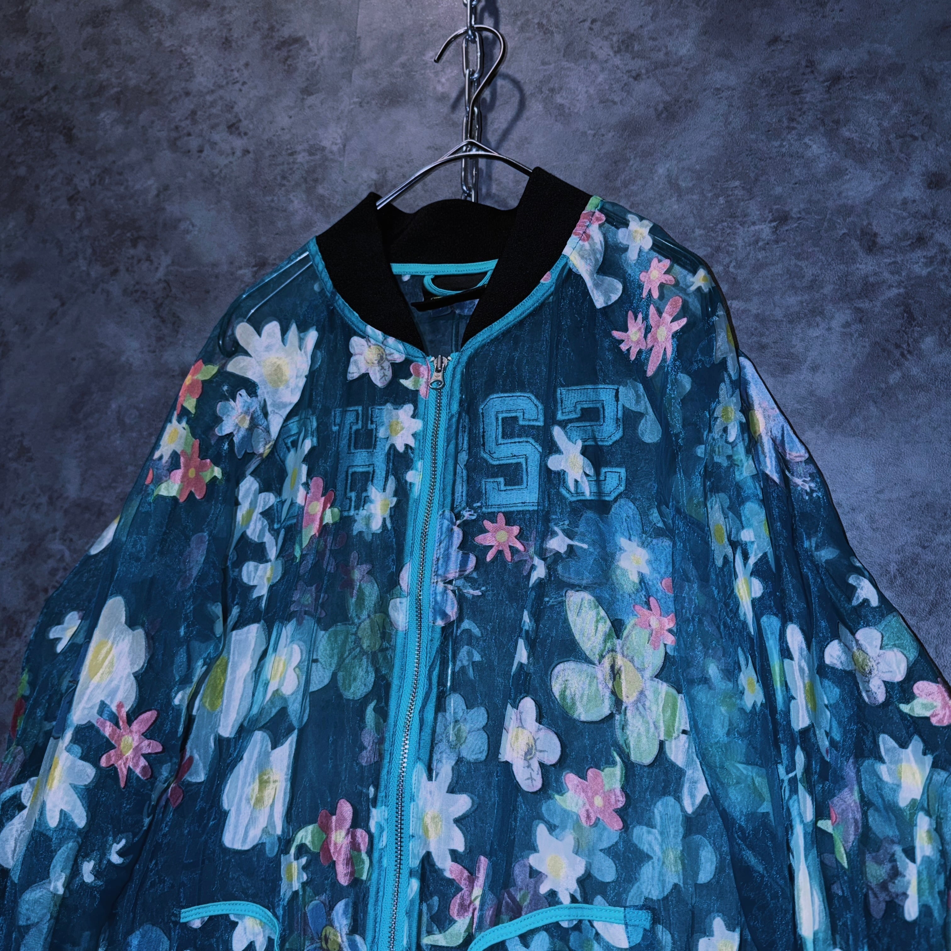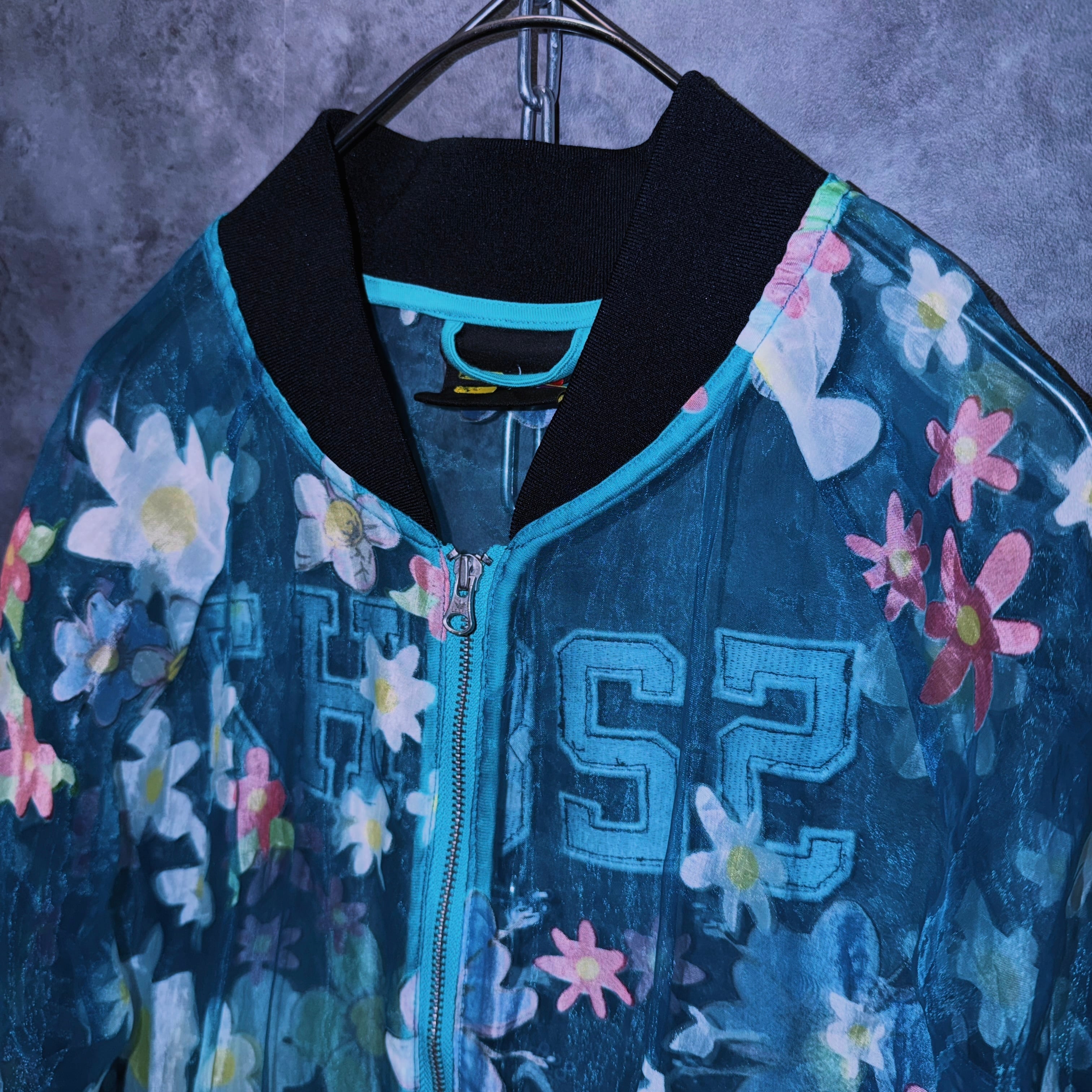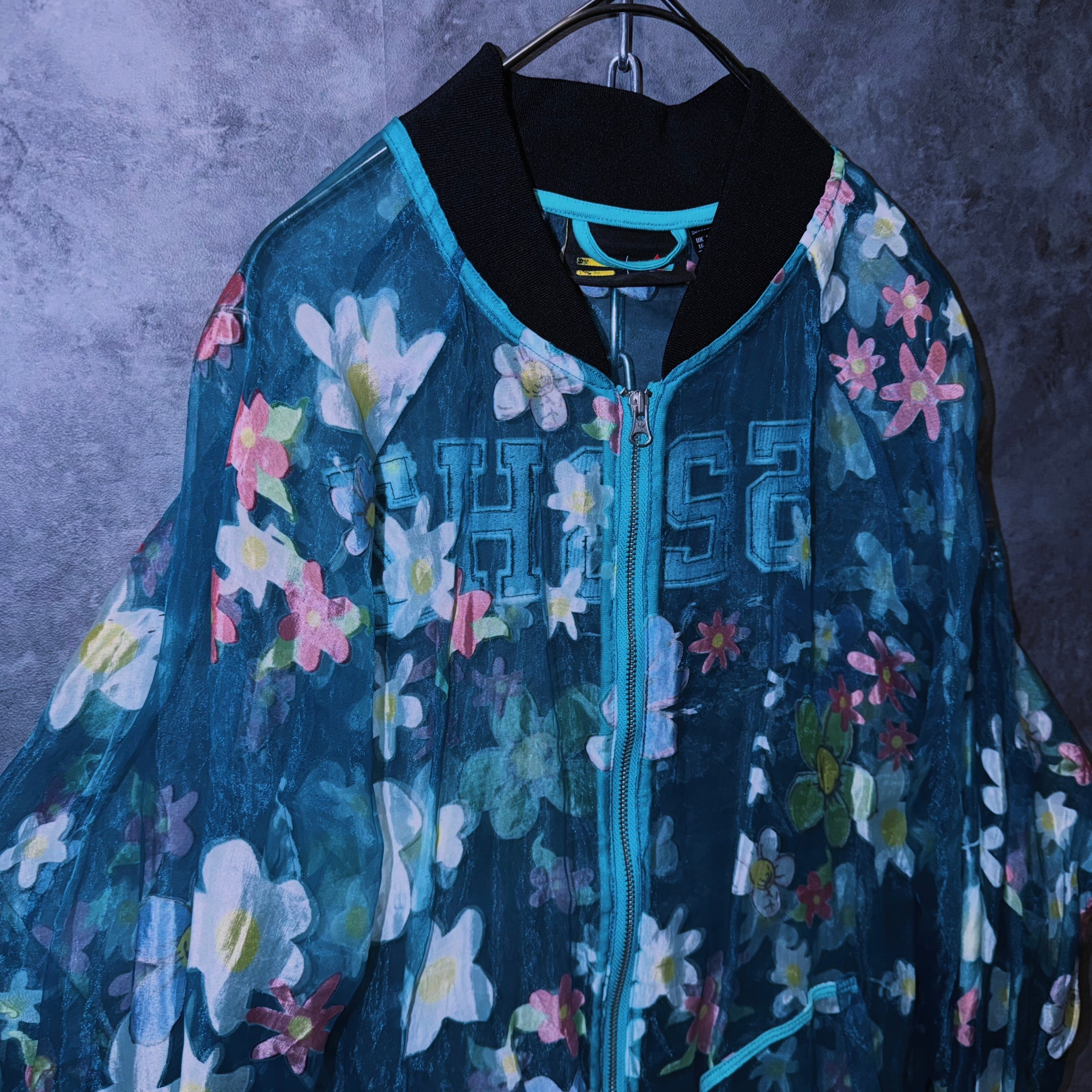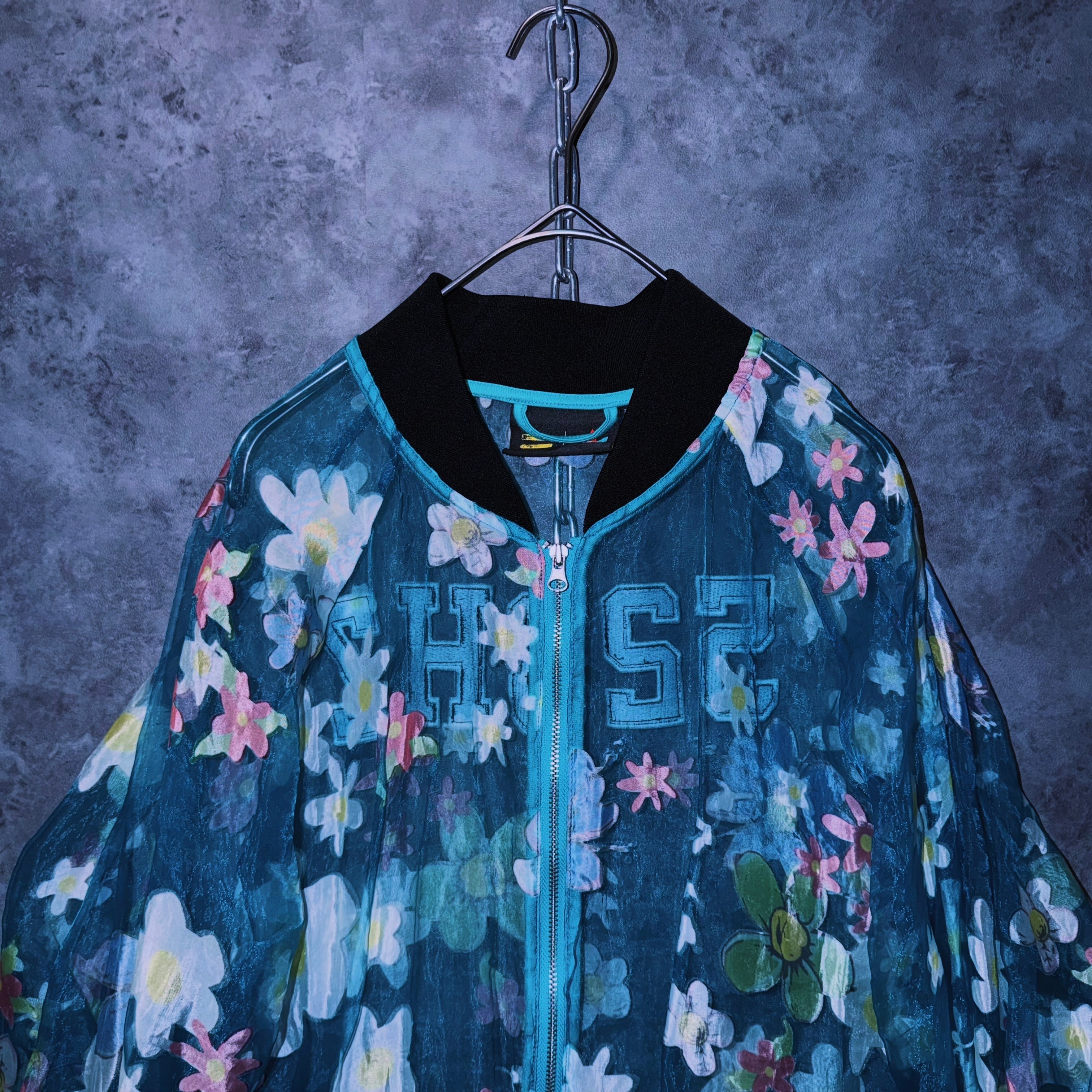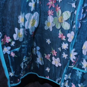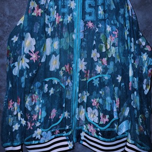 【doppio】vintage “adidas” flower pattern design crew neck sheer jacket