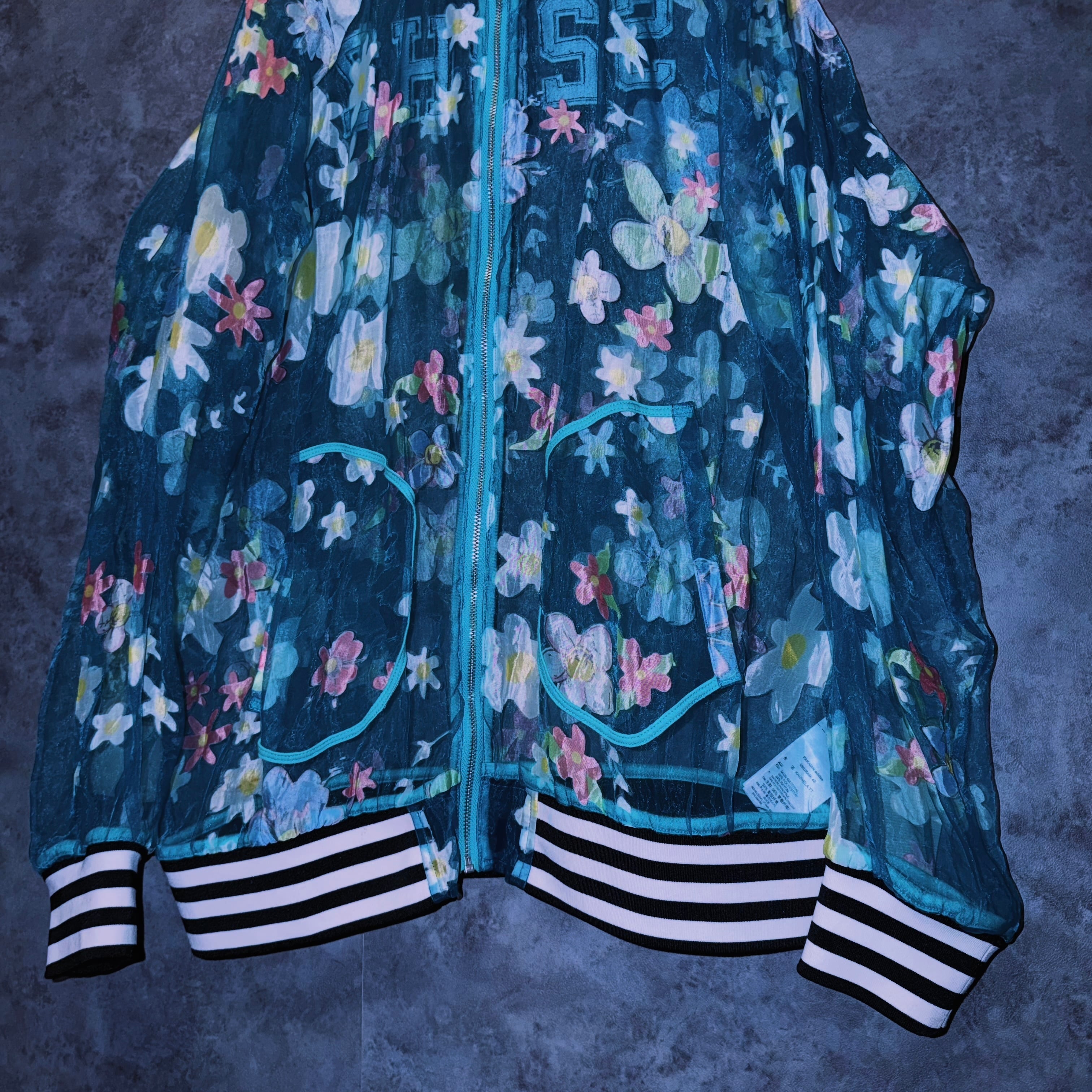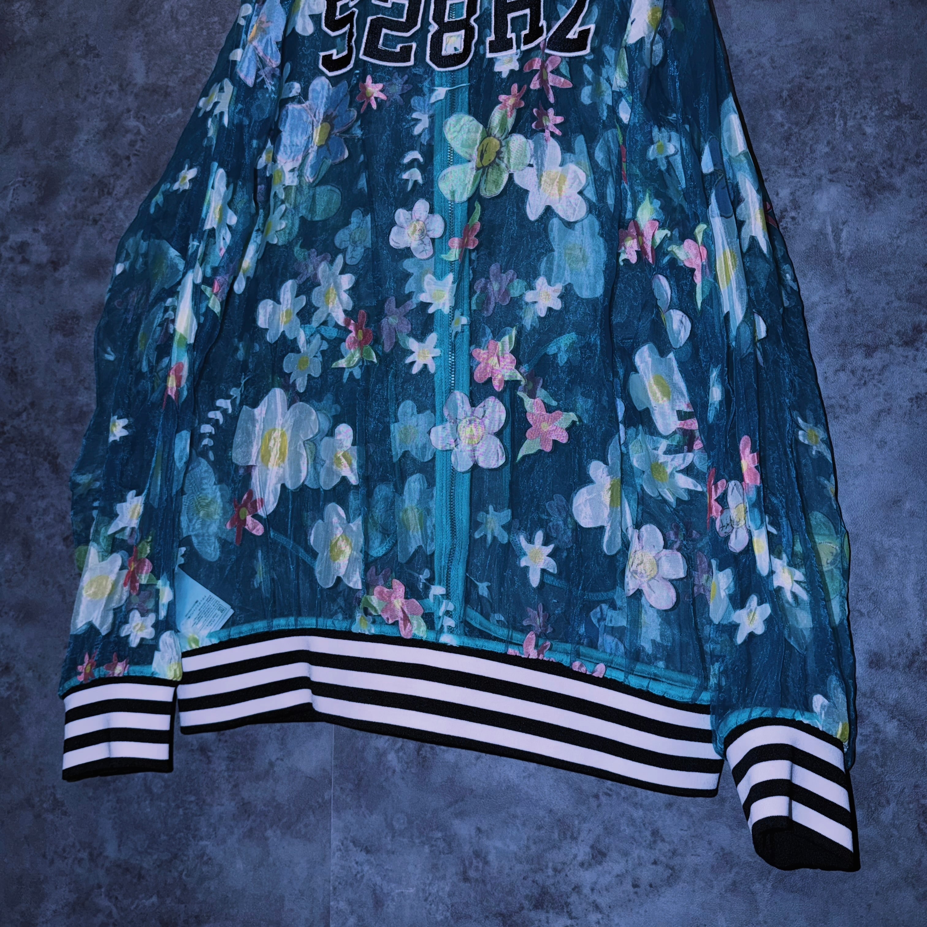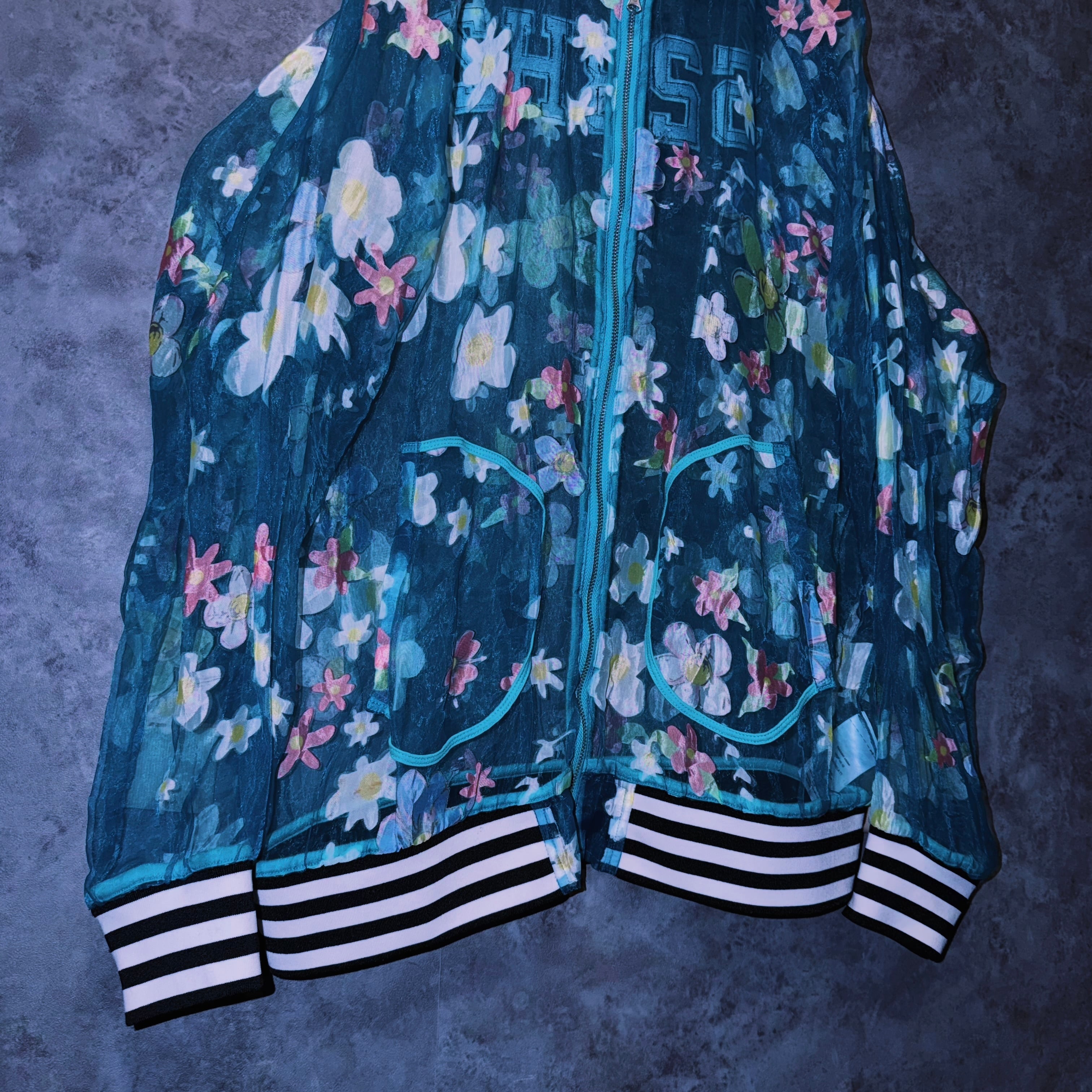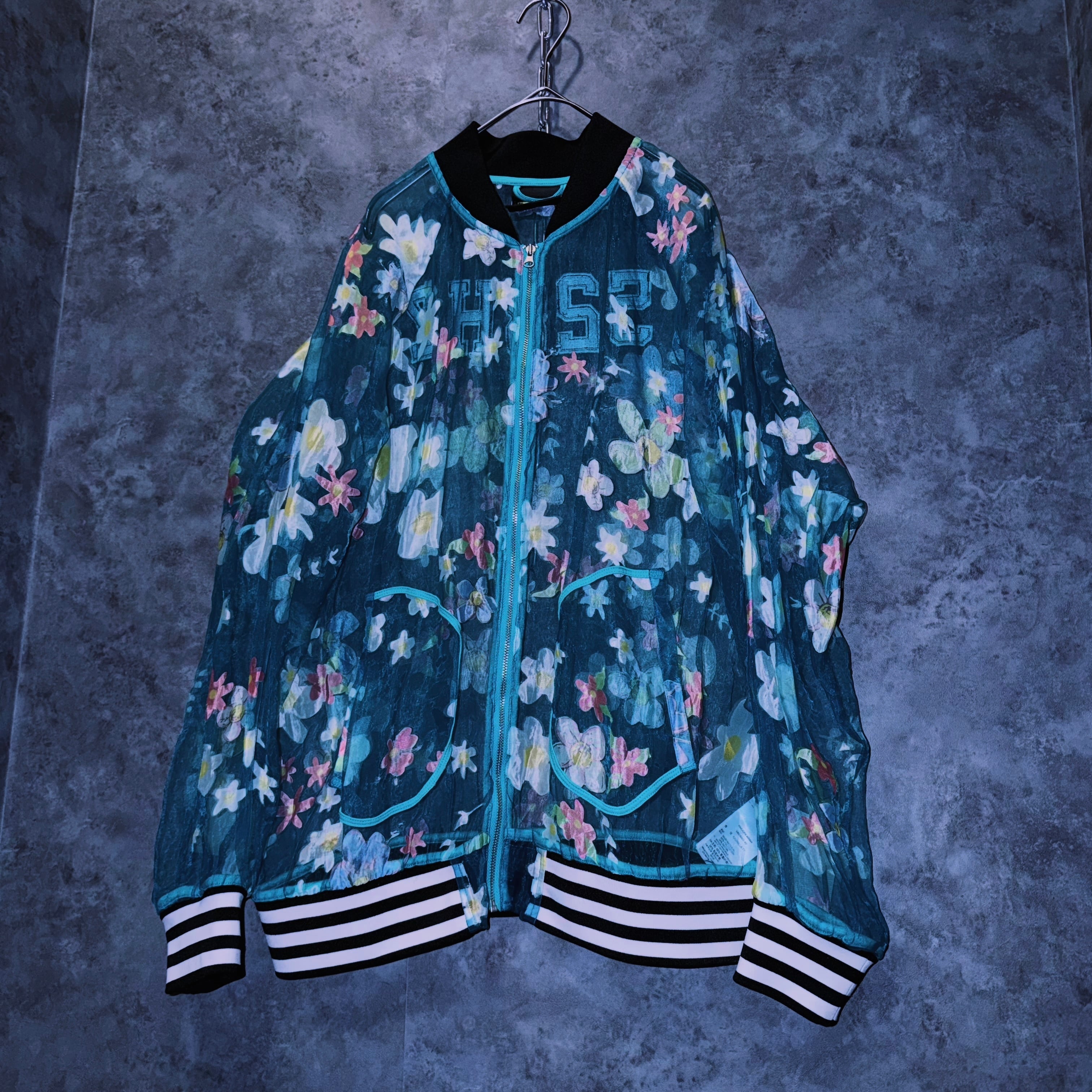 【doppio】vintage “adidas” flower pattern design crew neck sheer jacket
