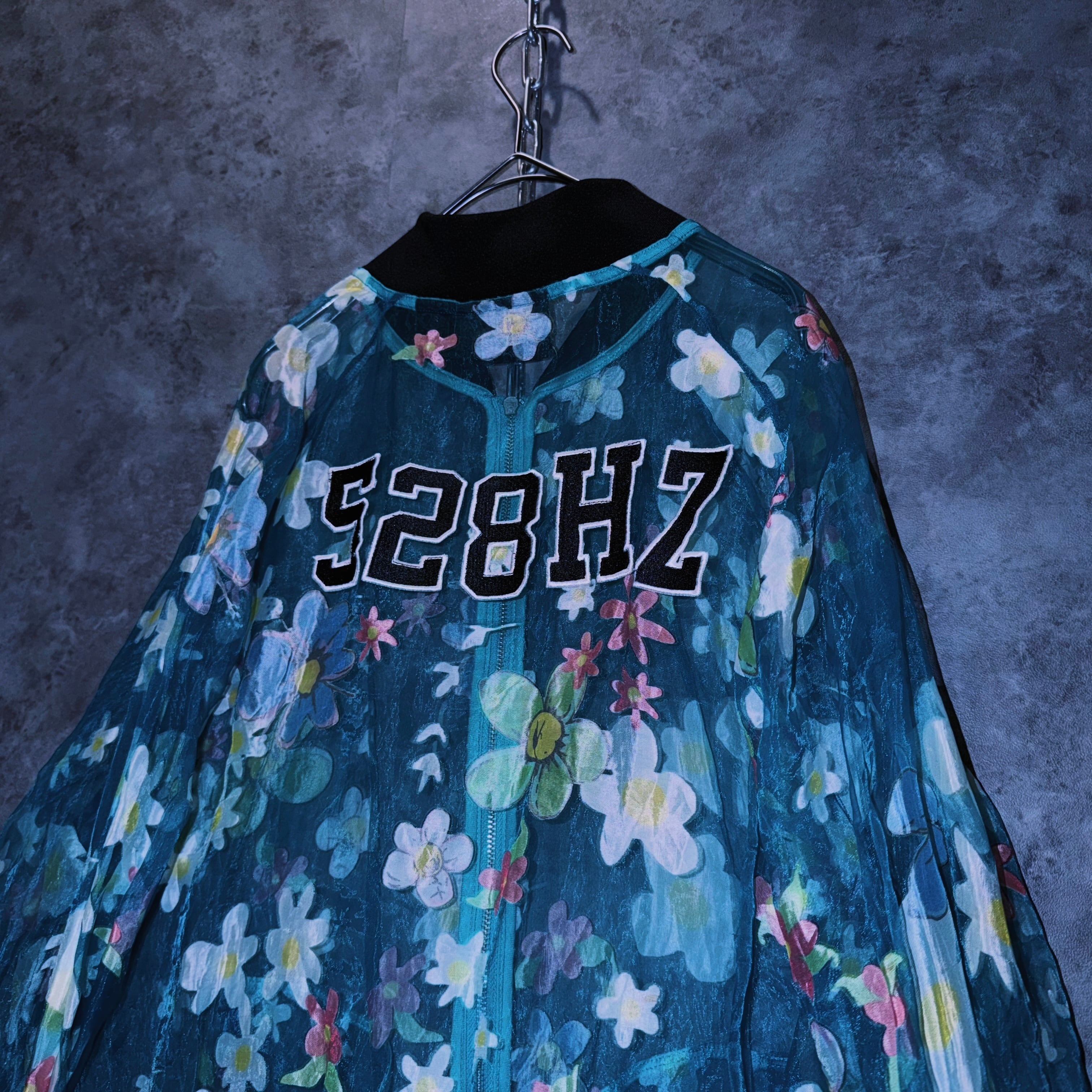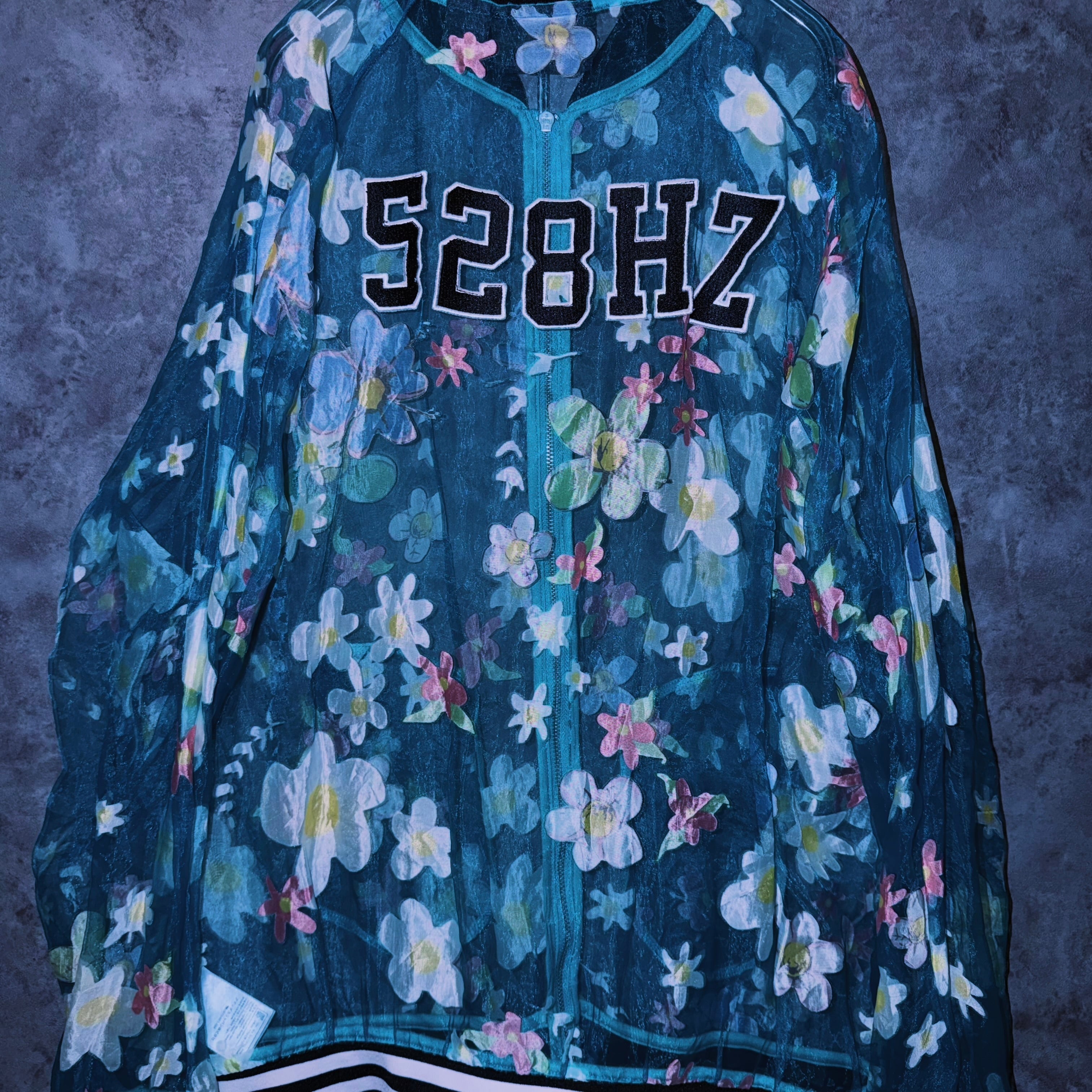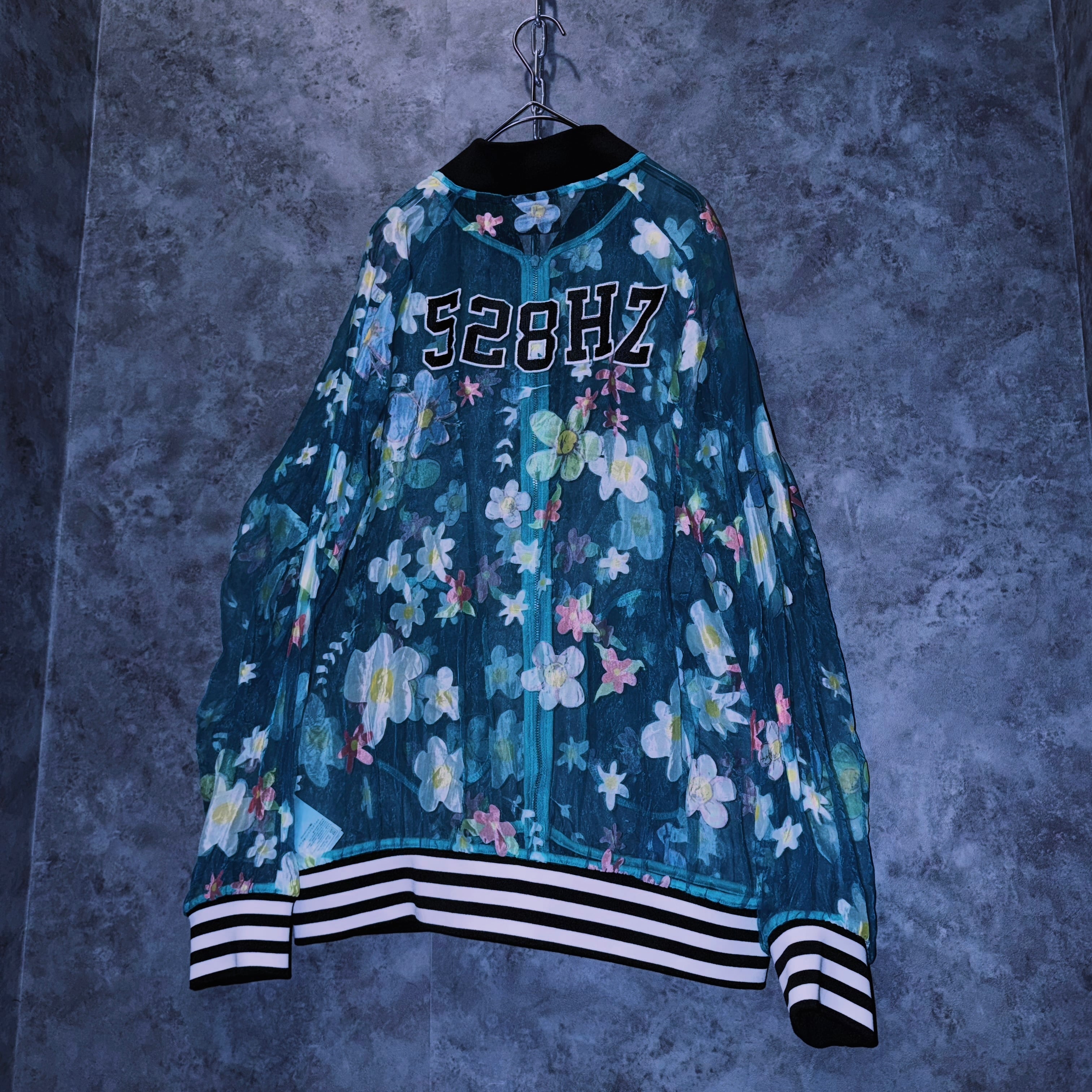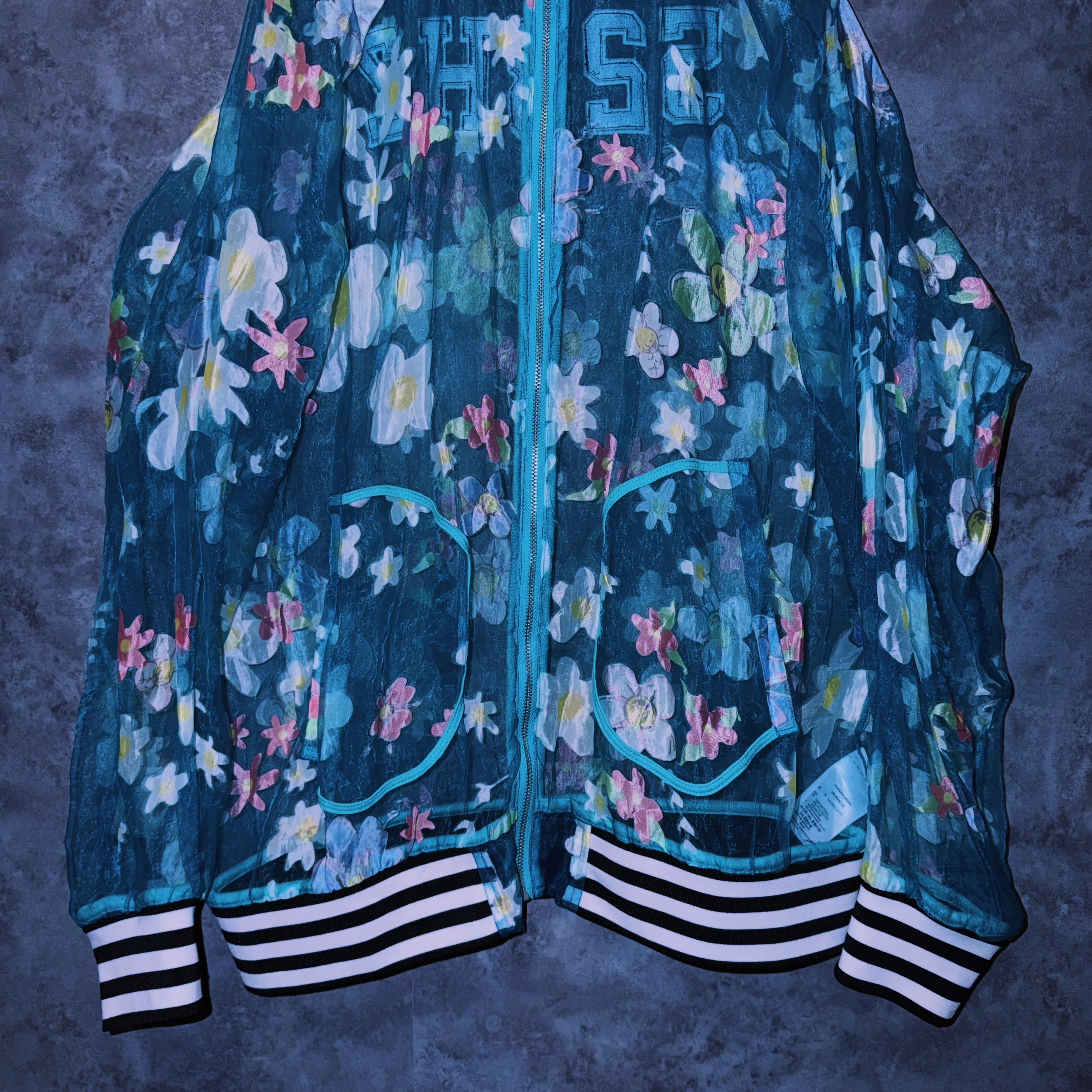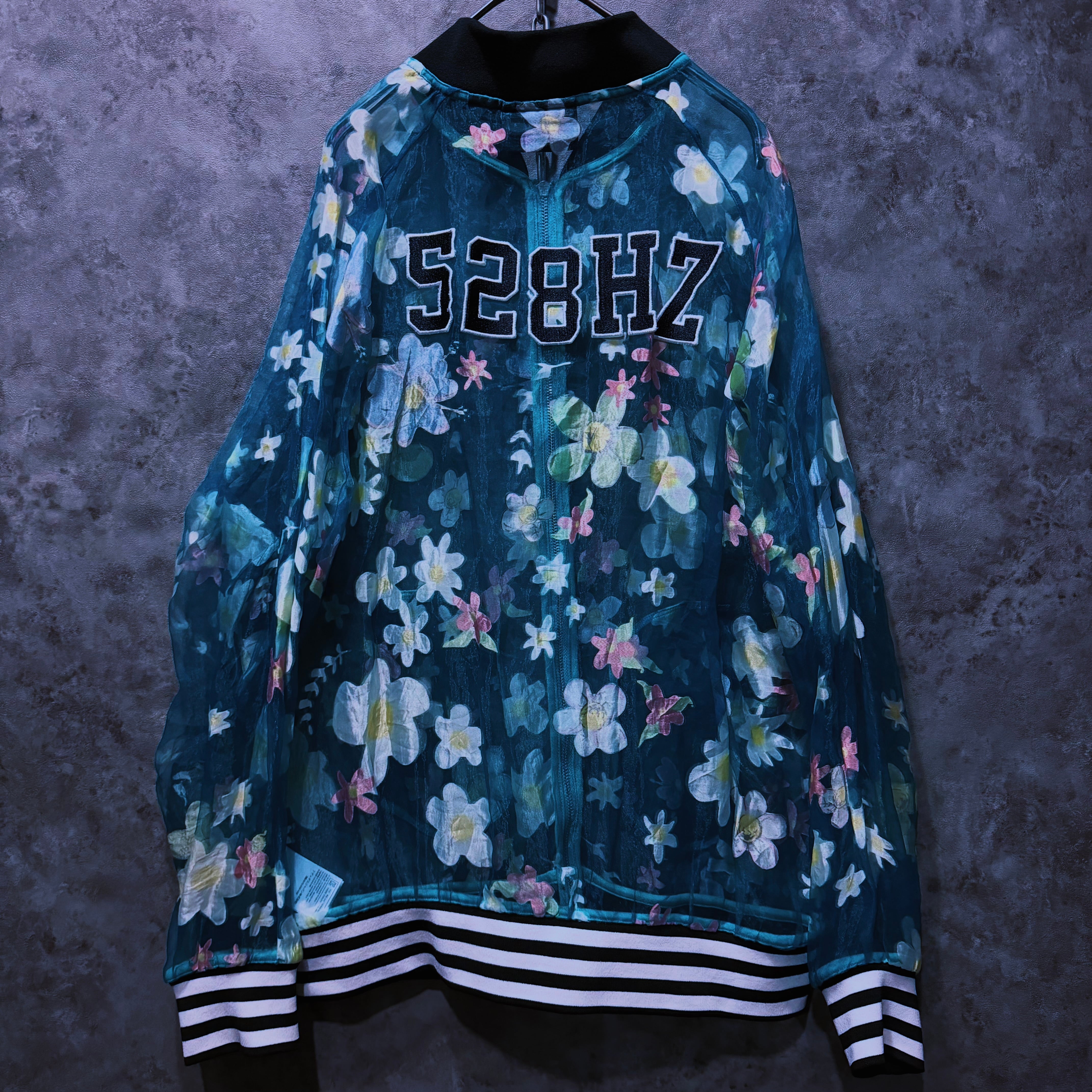 【doppio】vintage “adidas” flower pattern design crew neck sheer jacket
