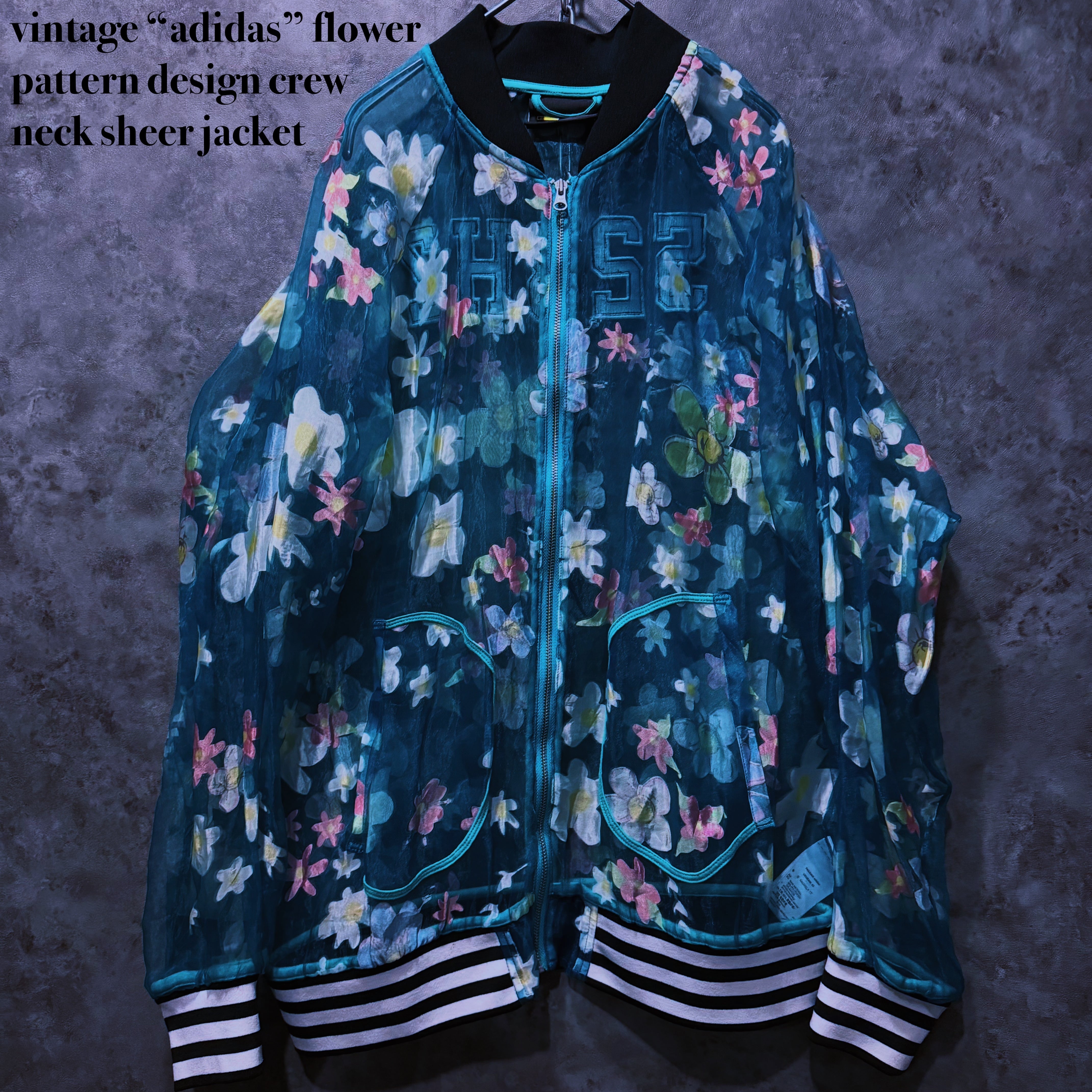 vintage “adidas” flower pattern design crew neck sheer jacket