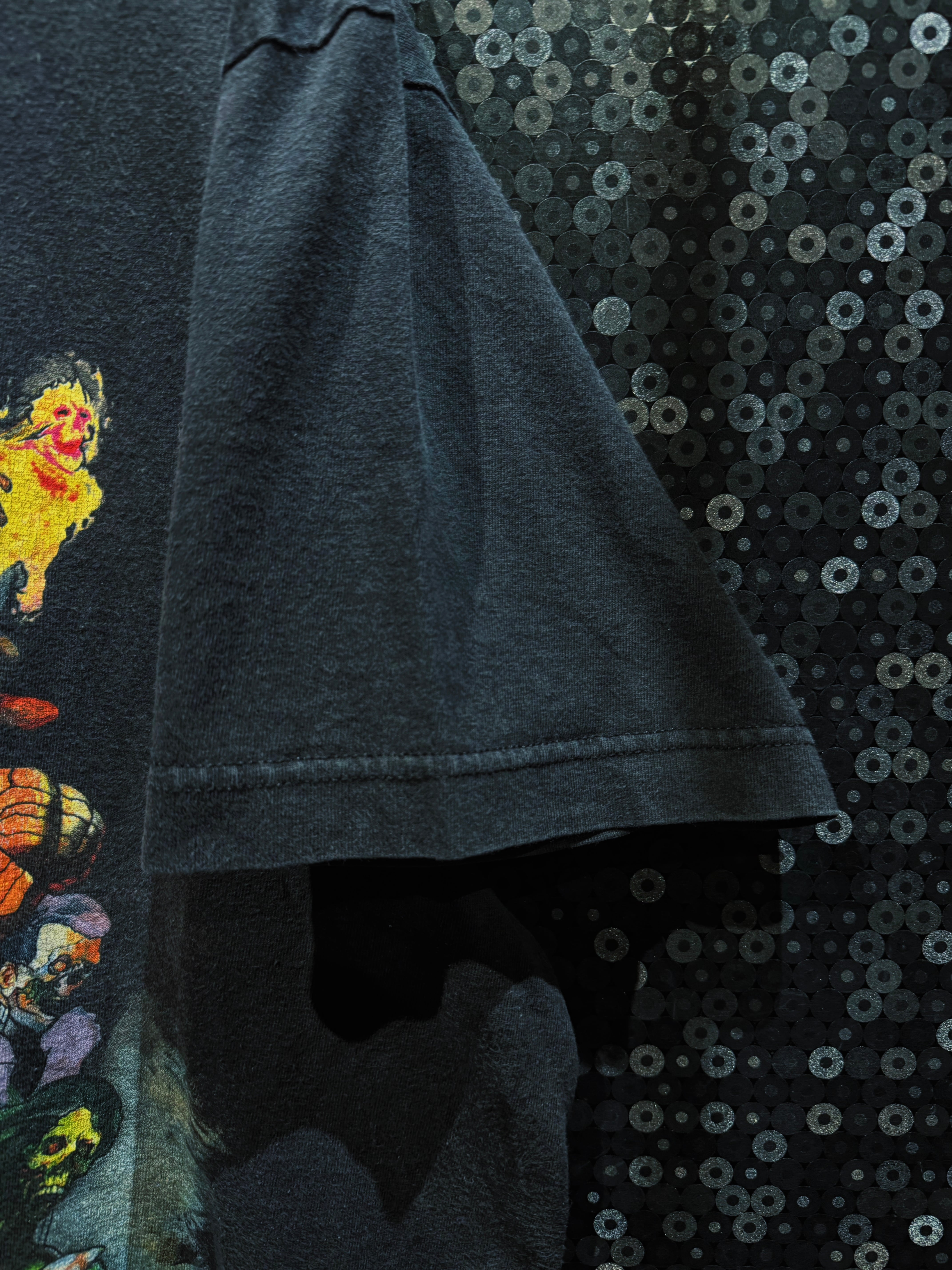 ブラックボディに対して、グラフィックの発色はあえて少し沈ませたトーン。これによって派手すぎず、全体にヴィンテージライクな馴染みが出ている。月の白だけが浮き上がり、自然と視線を中央に集める構成も秀逸。