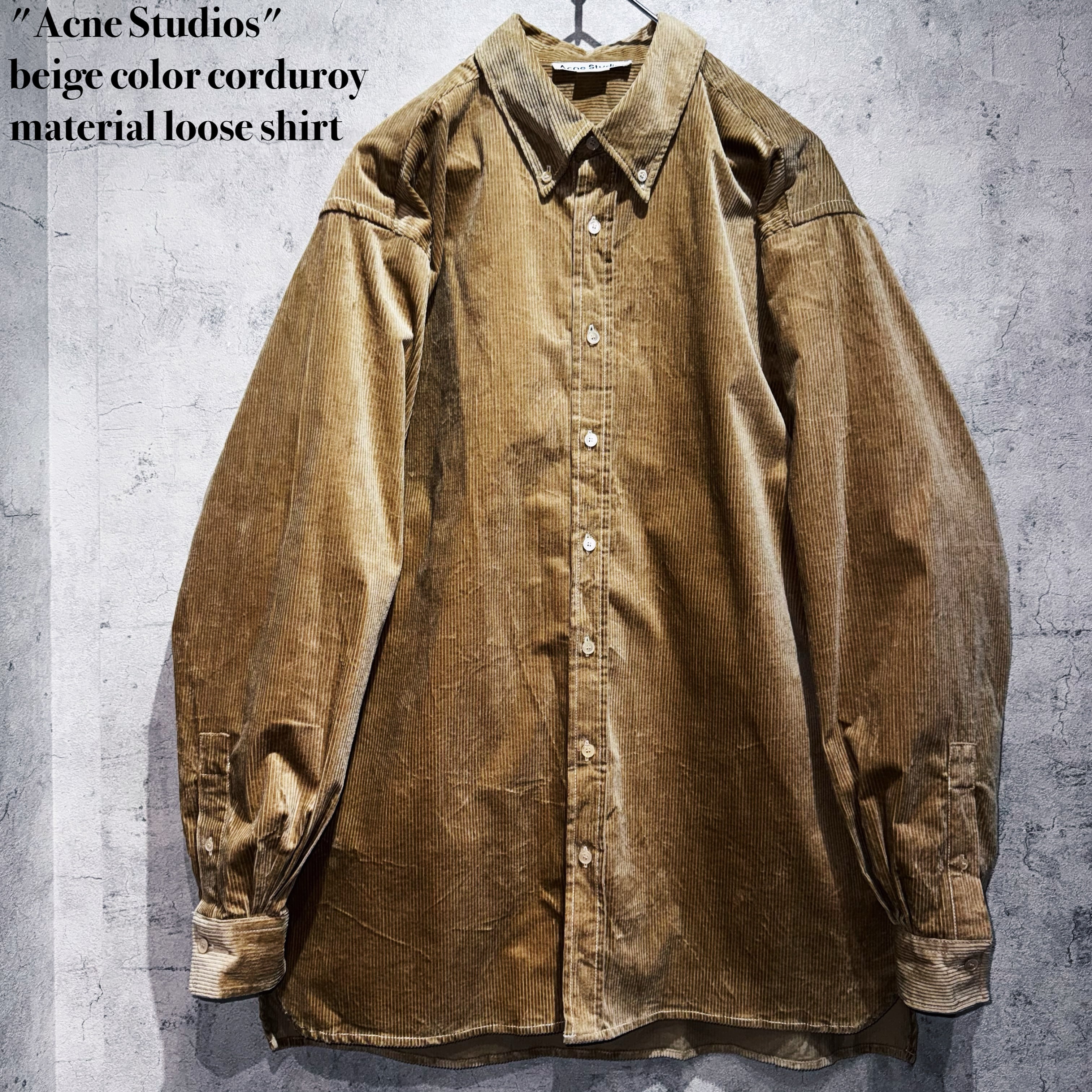 "アクネストゥディオス"ベージュカラーコーデュロイマテリアルルーズシャツ