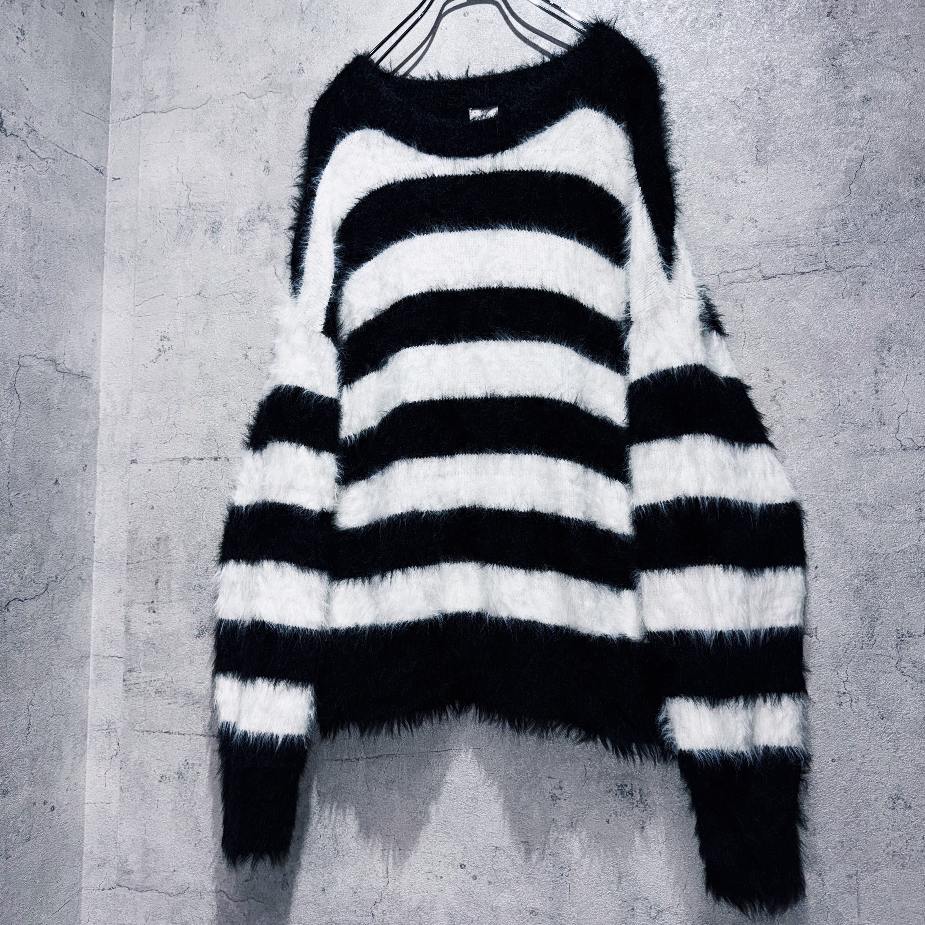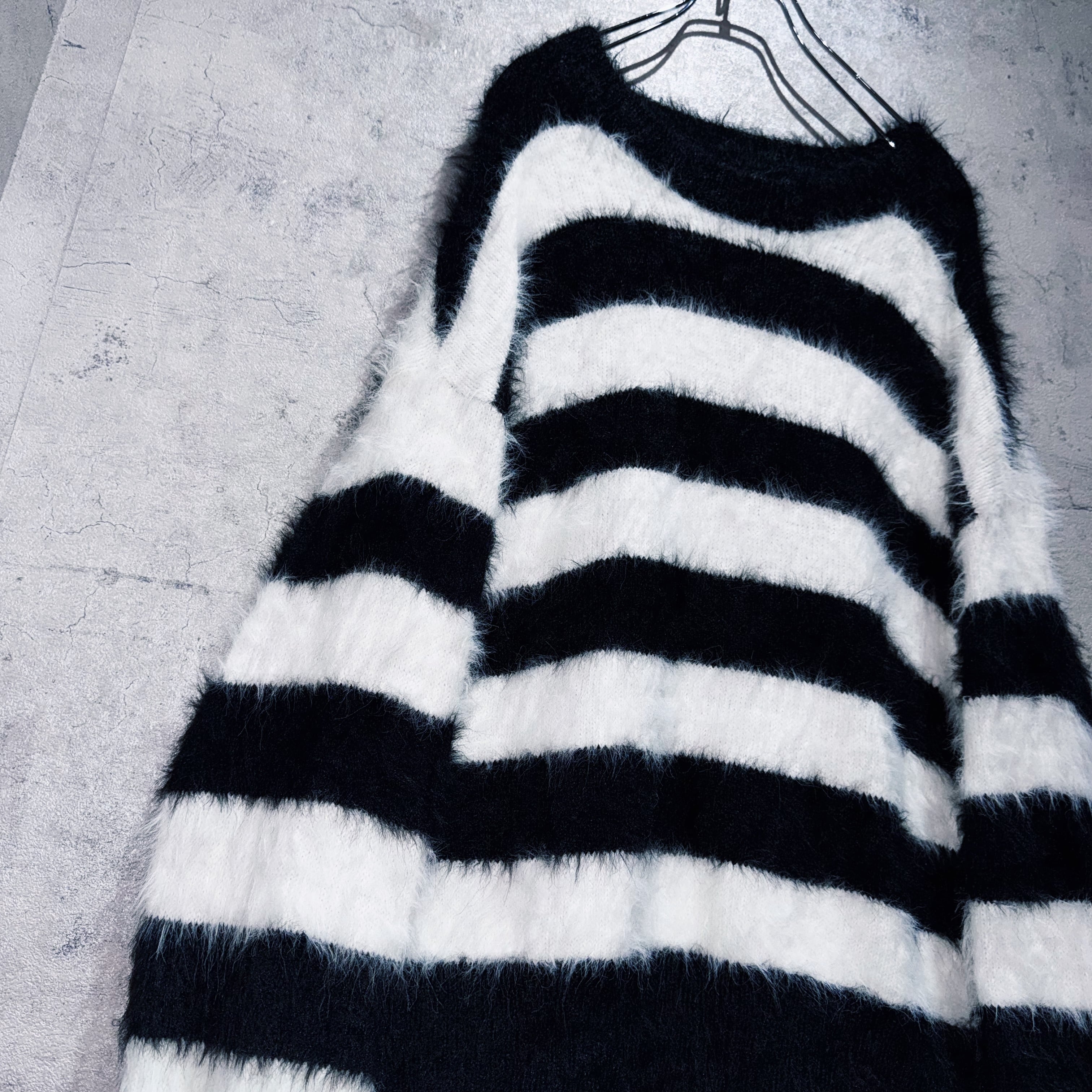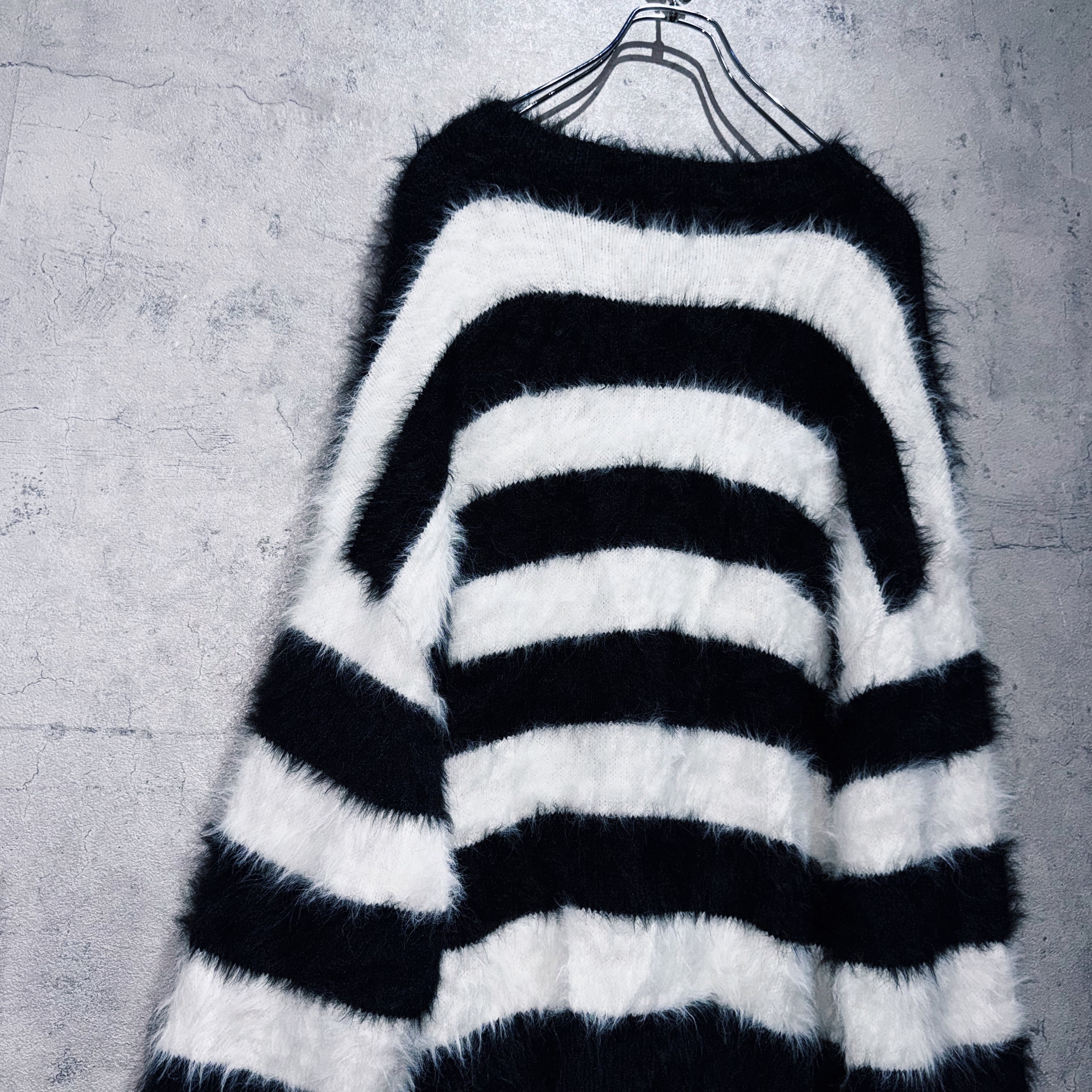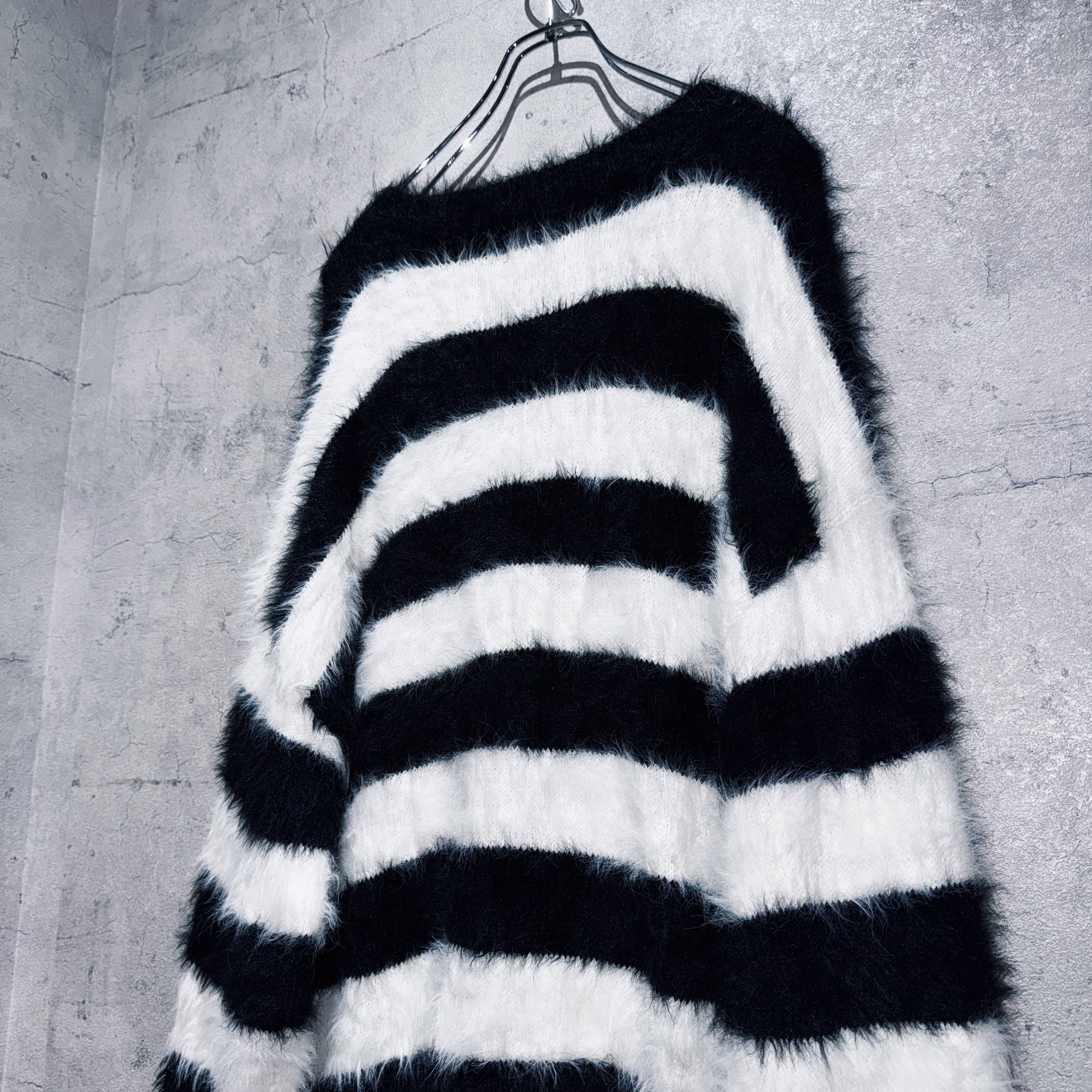 近年トレンドのY2K、パンクスタイル、ゴシックなどに必要不可欠なボーダーアイテム。シャギーという素材感で差別化も図れる逸品です。
