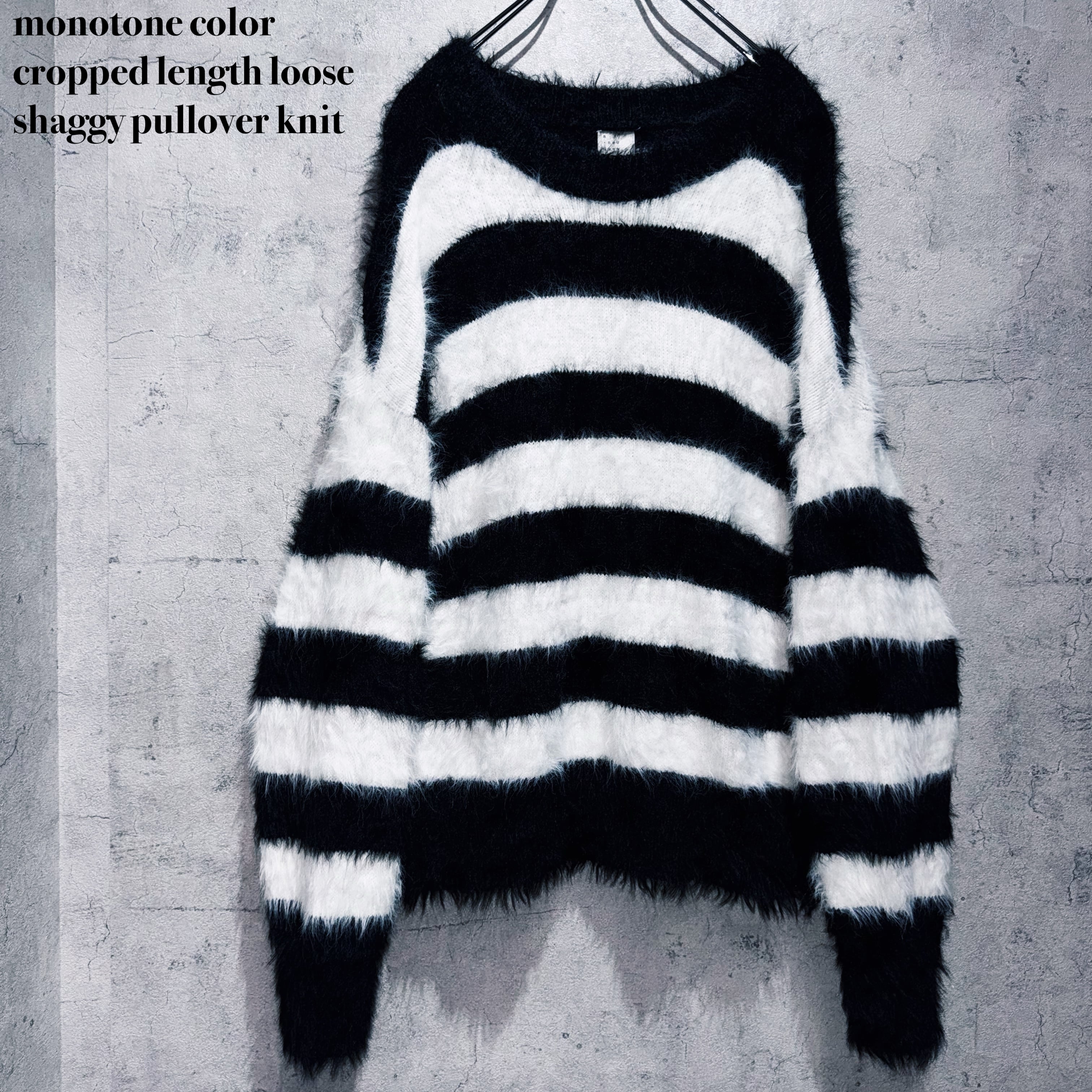 モノトーンカラークロップドレングスルーズシャギープルオーバーニット