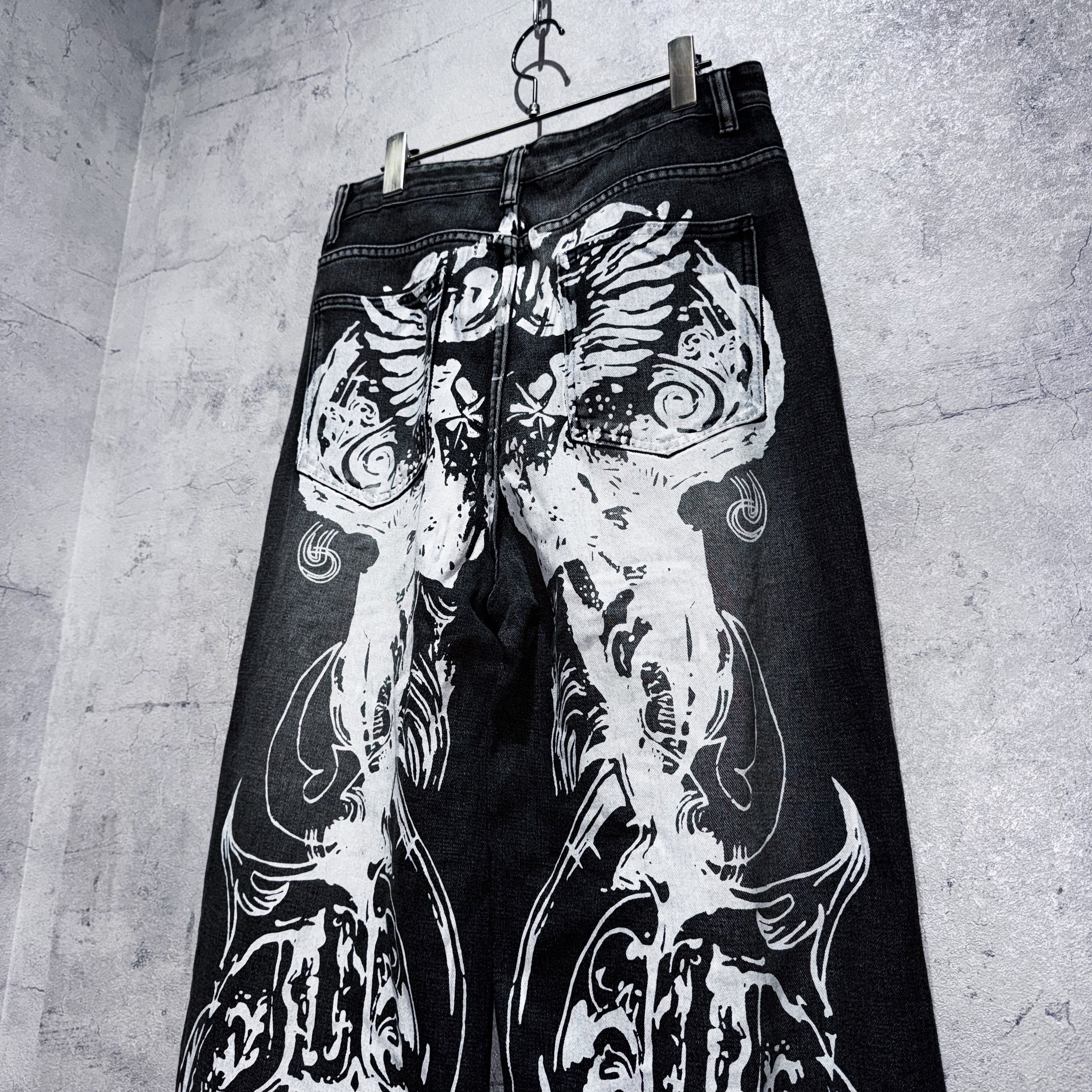 シルエットはしっかりとワイドに設計されており、グラフィックの迫力を受け止めつつもバランスは崩さない。穿くだけでスタイリングが成立する、完成された逸品。