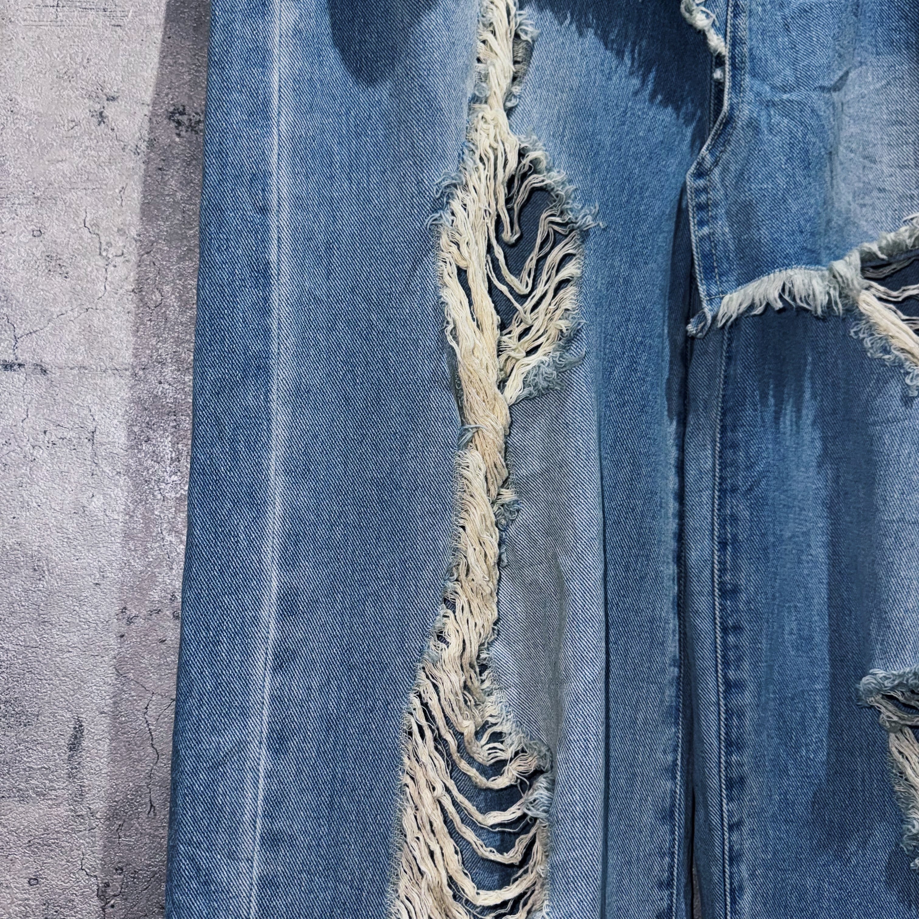 破壊美をここまで昇華した一本。ライトブルーのデニムをベースに、大胆に施されたクラッシュ加工。