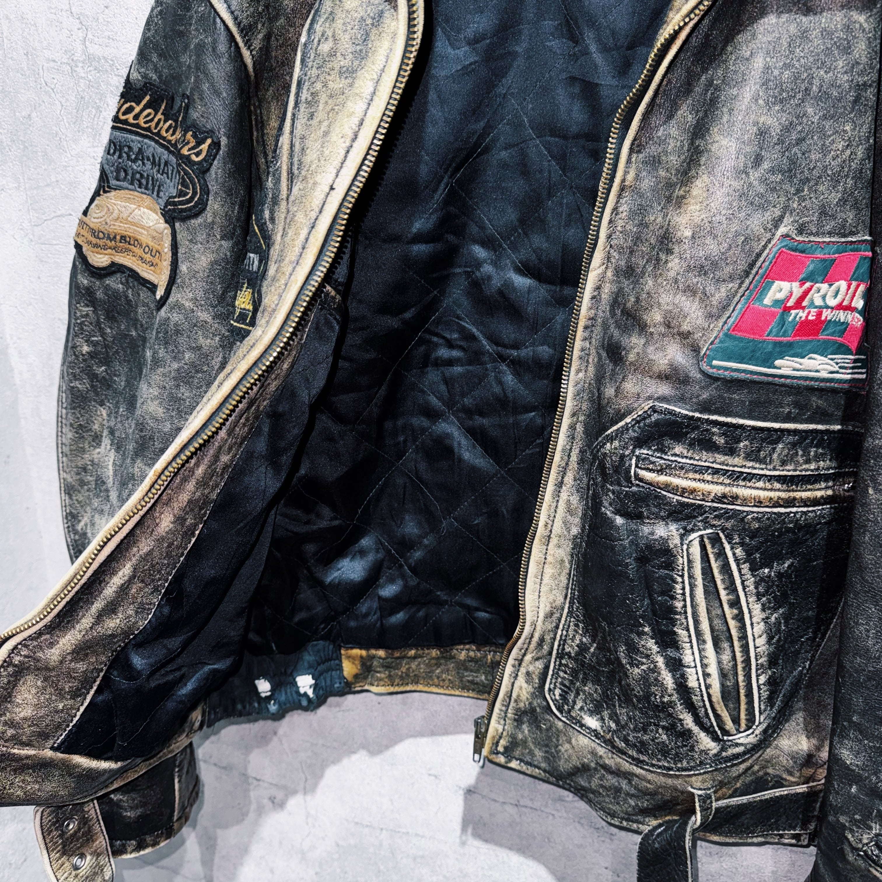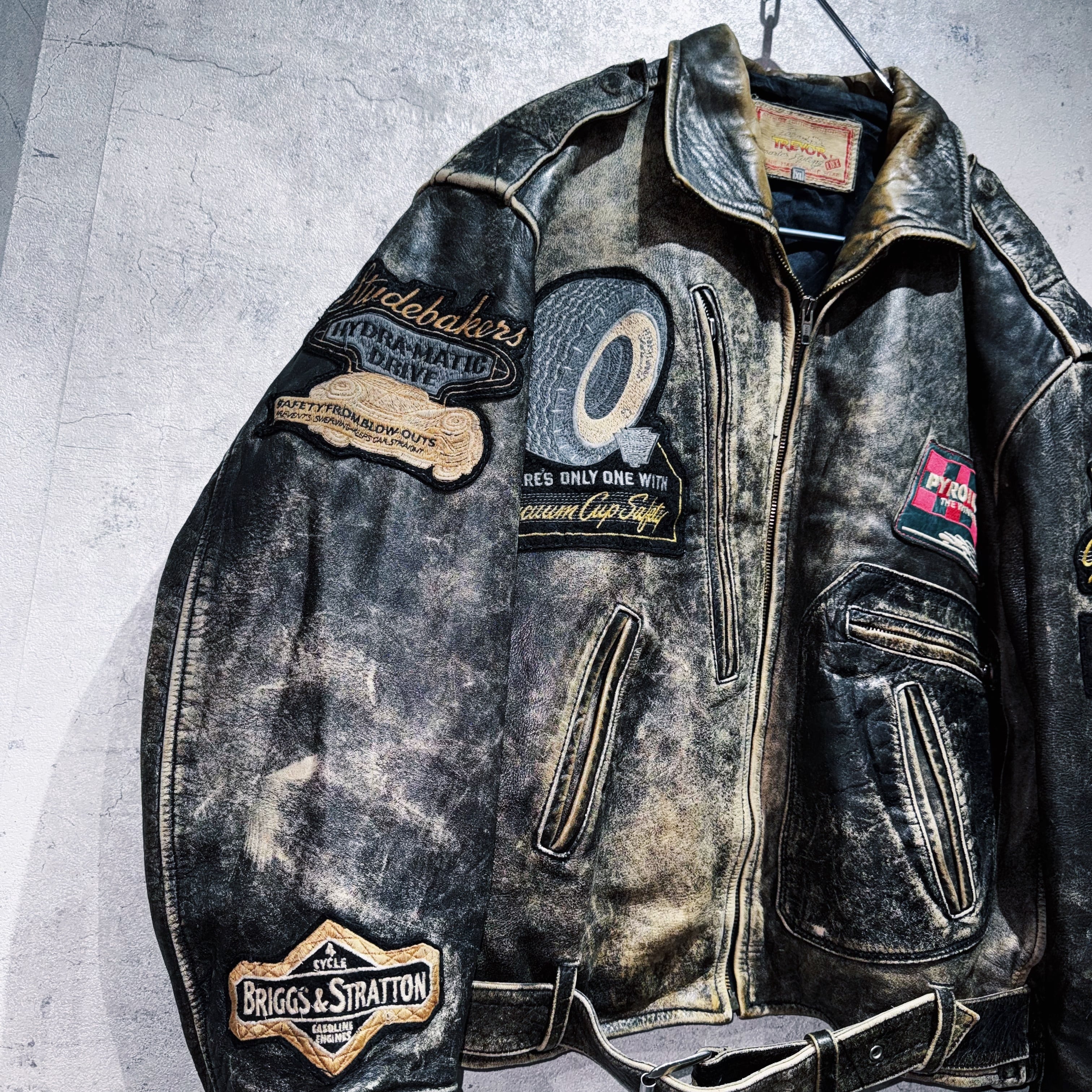 90年代"リートレヴォー"カスタムワッペンデザインレザーレーシングジャケット