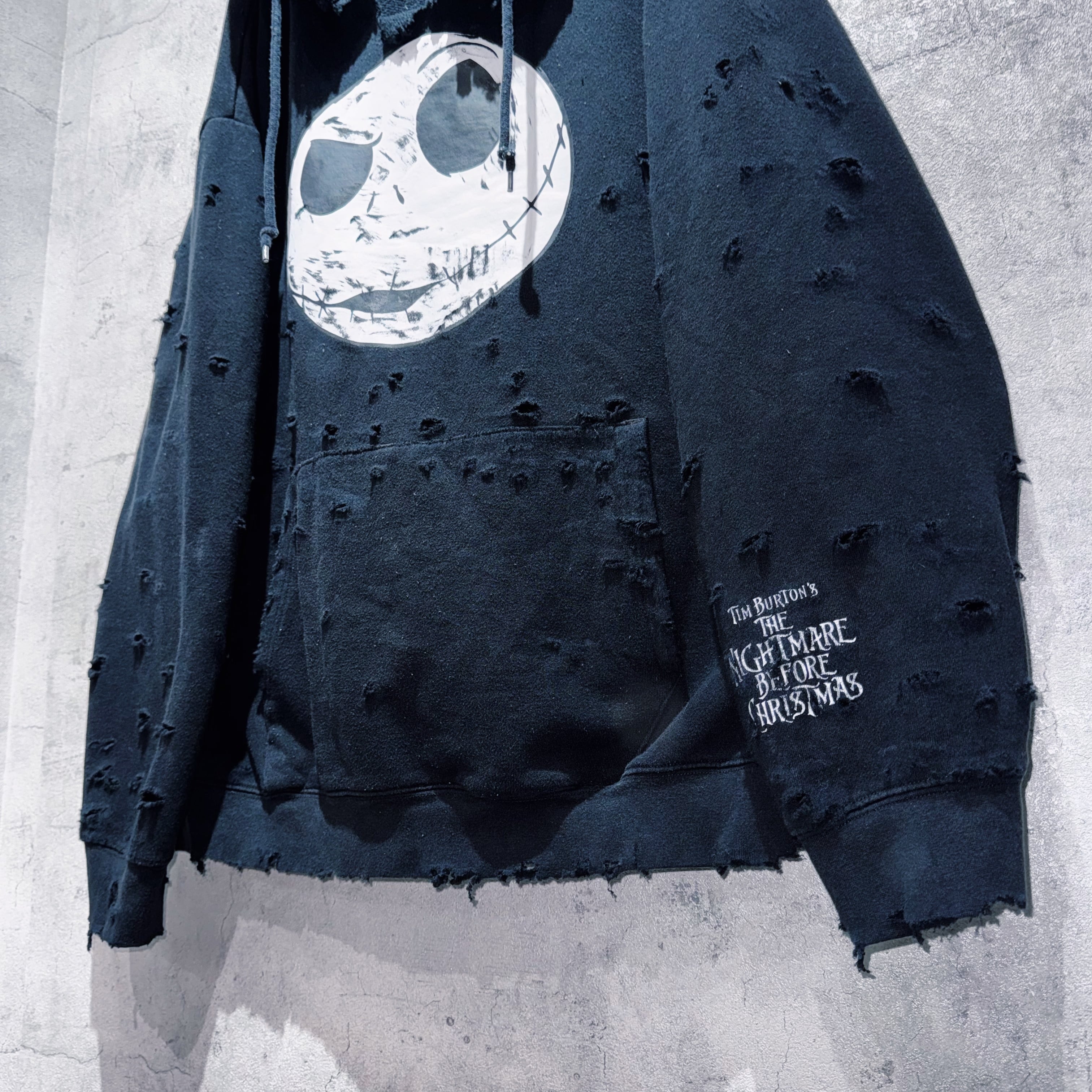 "ディズニー”ナイトメアー・ビフォア・クリスマス”ジャックスケリントンヘッドプリントデザインボロカスタムフーディー