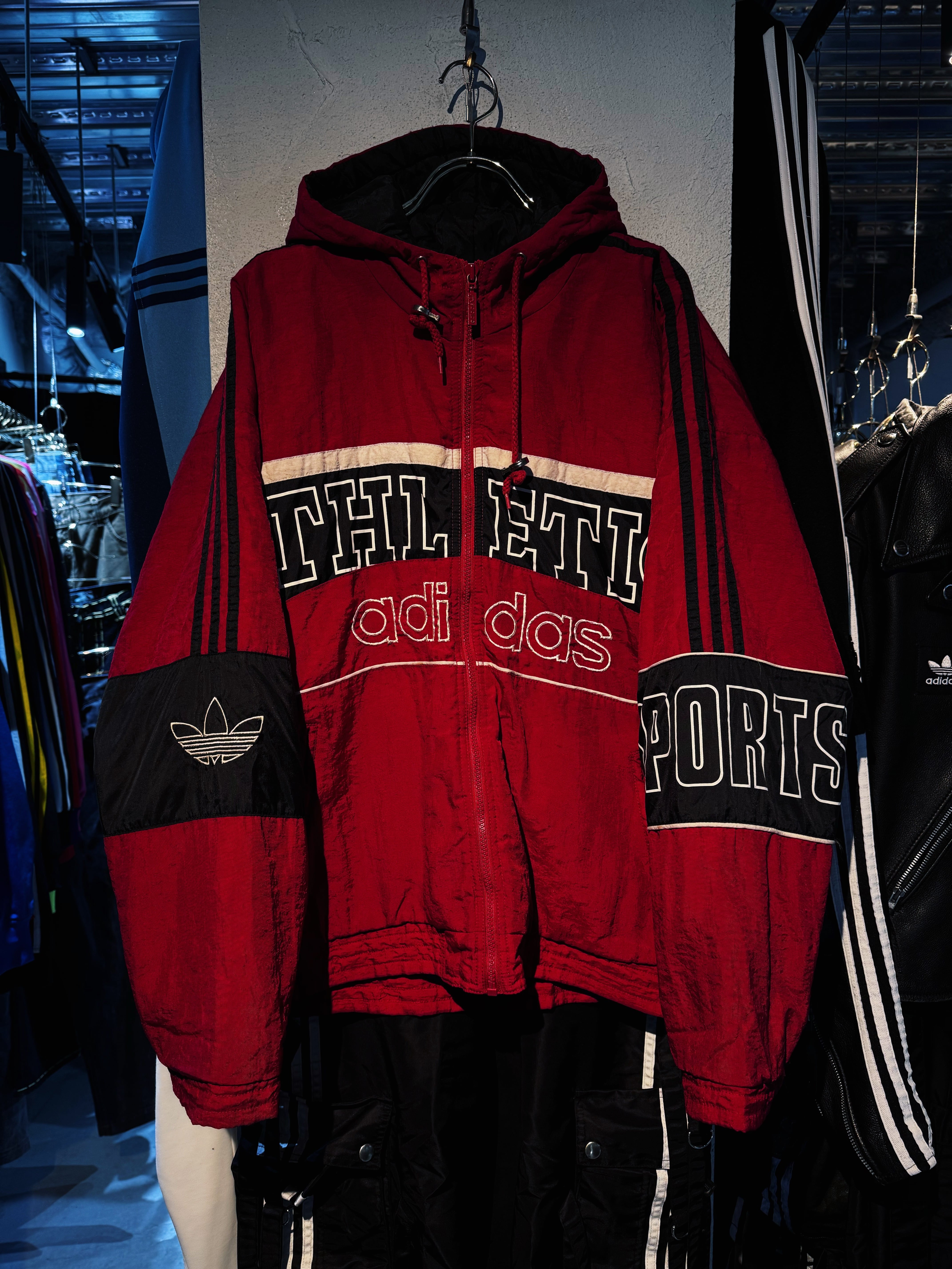 アディダスのアスレチックラインからの1着。真っ赤なボディに3ストライプス、右腕にはトレフォイルの刺繍を刻みアイコニックな仕上がりに。