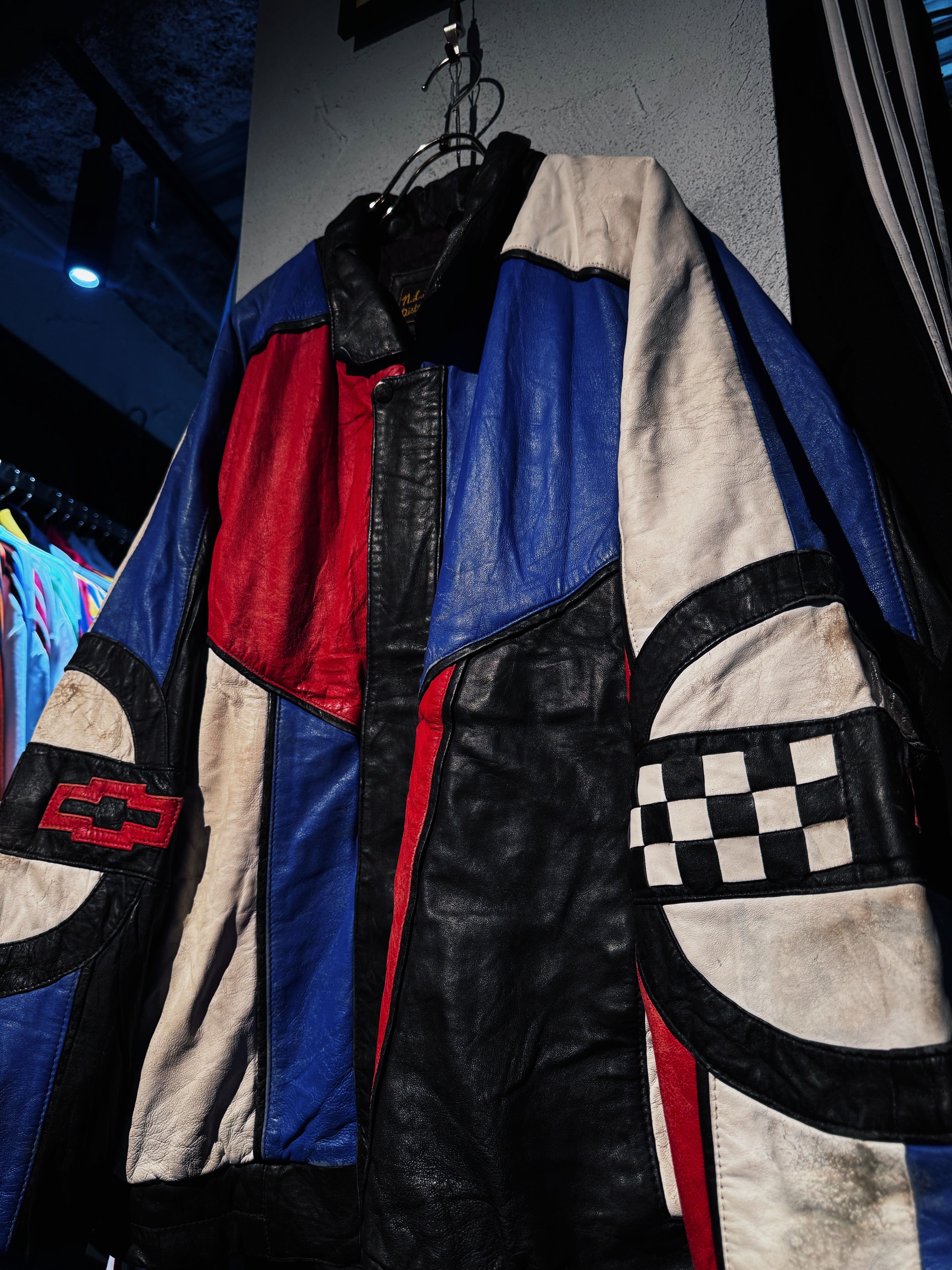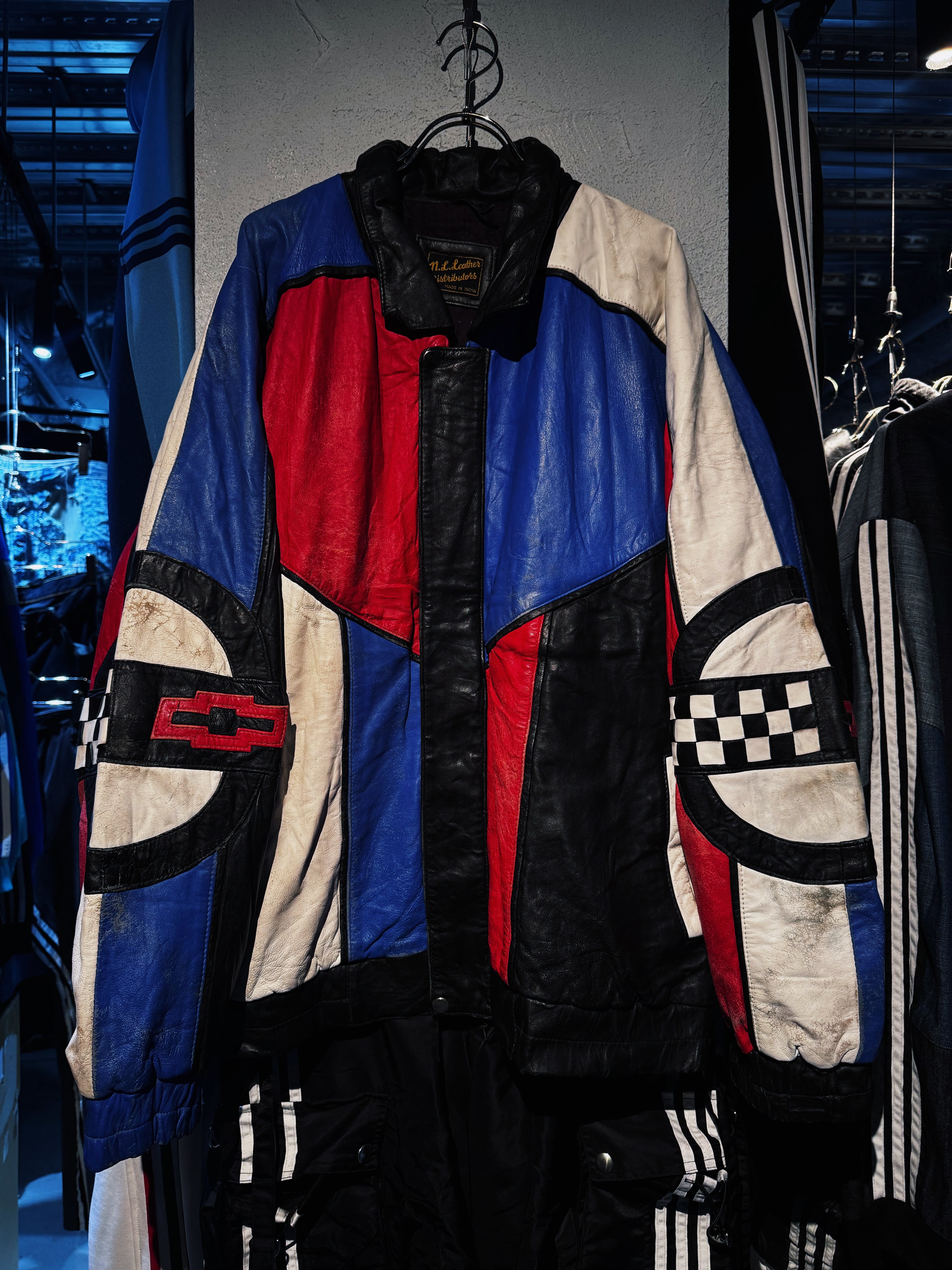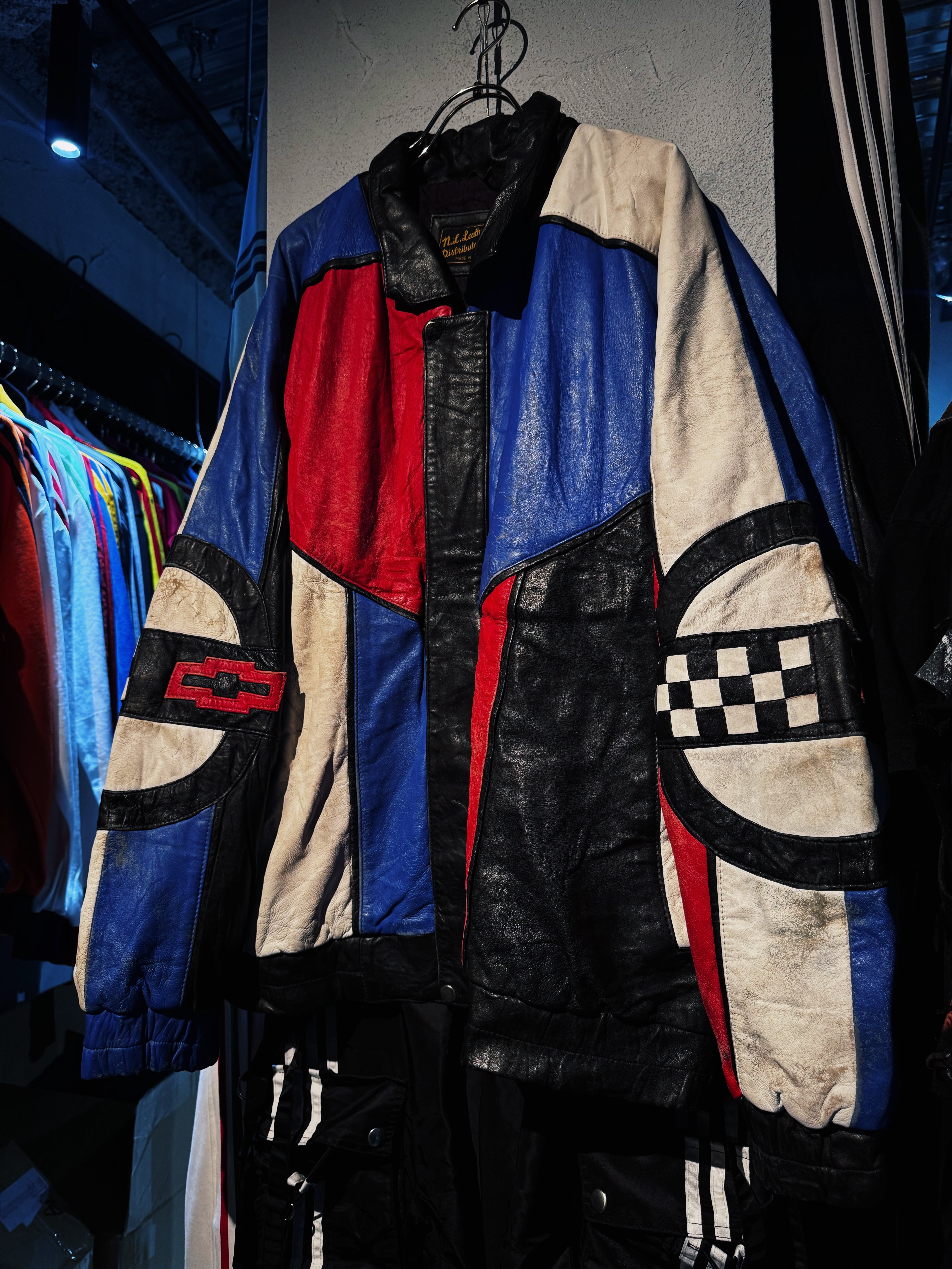 90's"CORVETTE"crazy pattern switching color leather jacket
