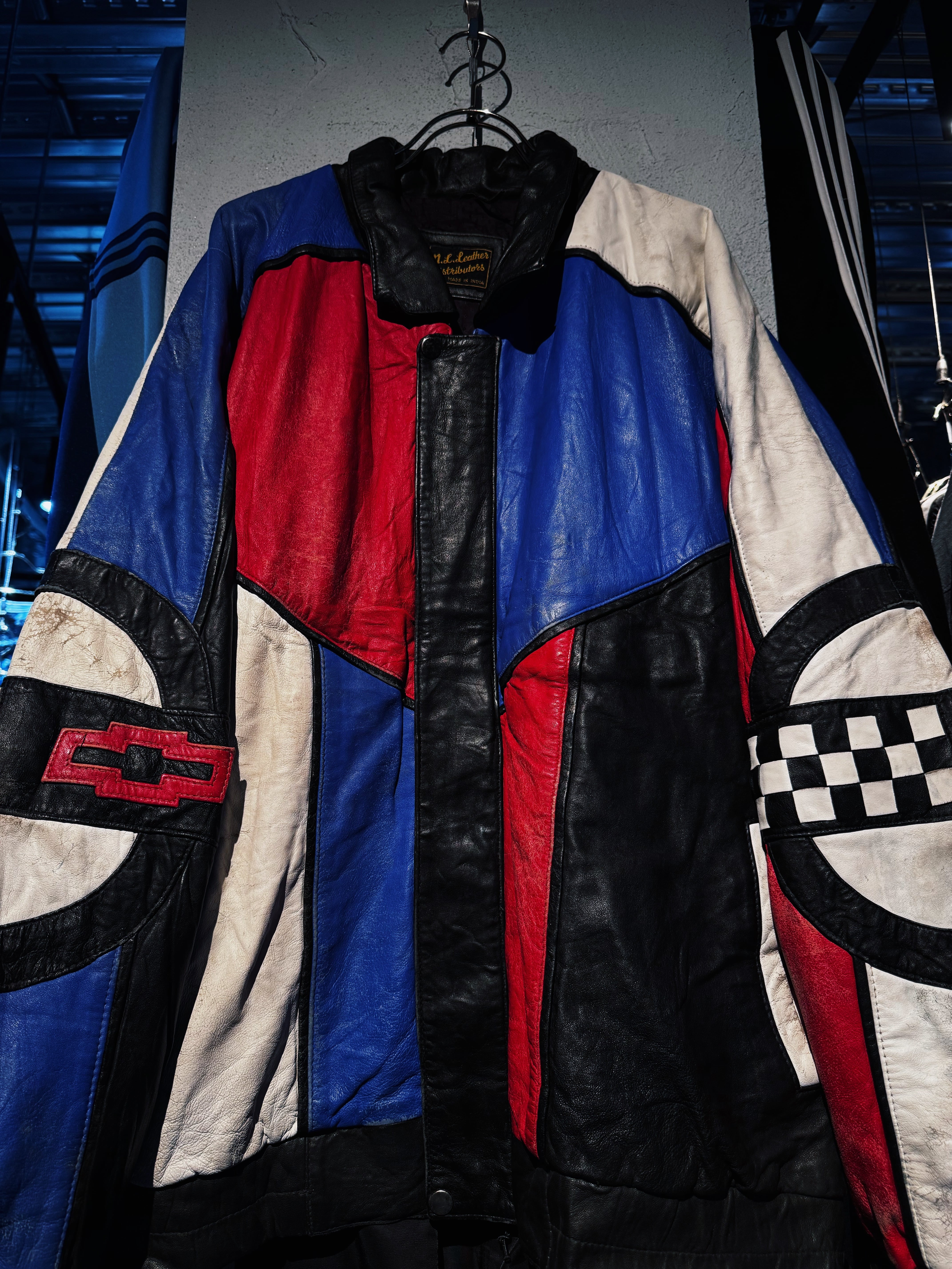 90年代"コルベット"クレイジーパターンスイッチングカラーレザージャケット