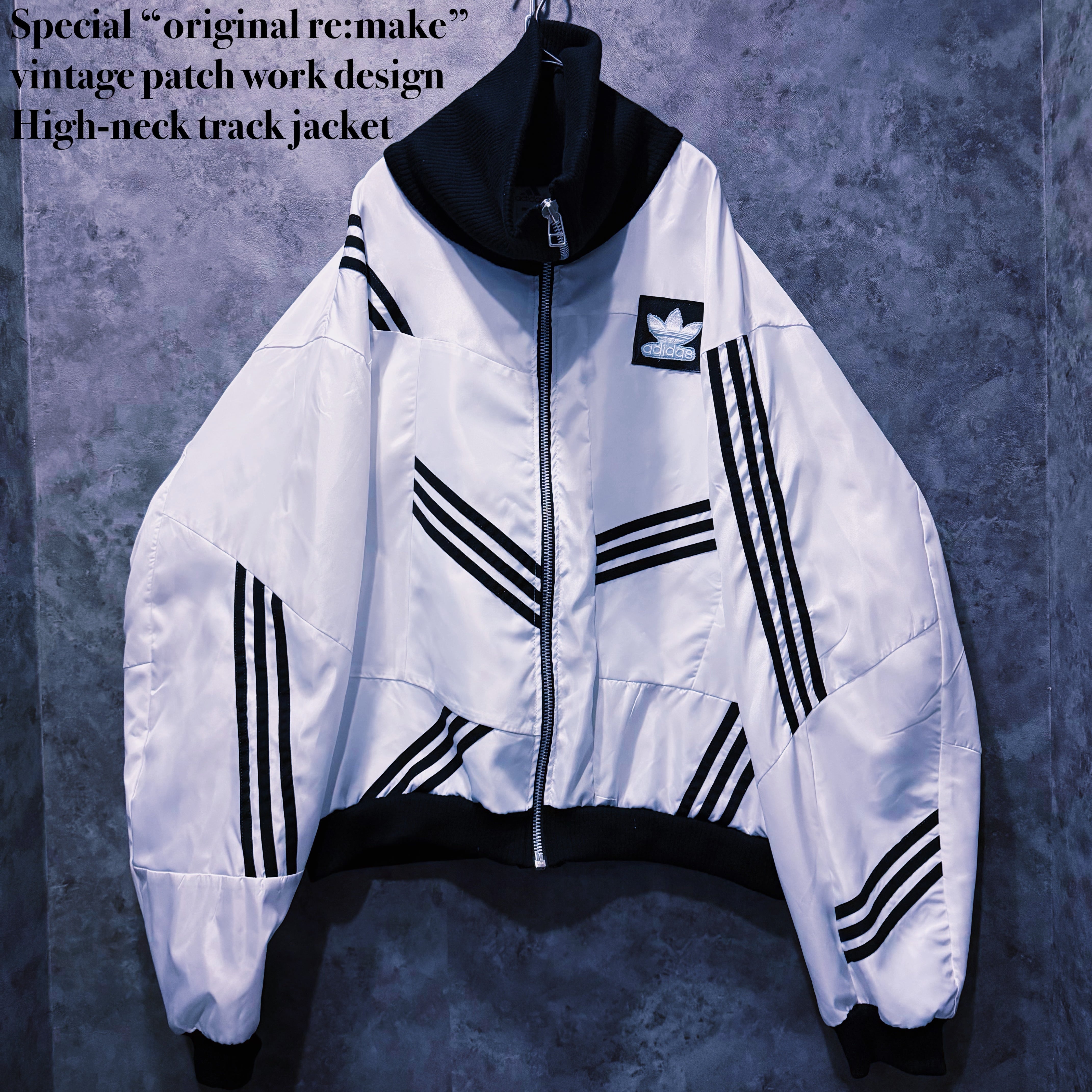 Special “original re:make” vintage patch work design High-neck track jacket