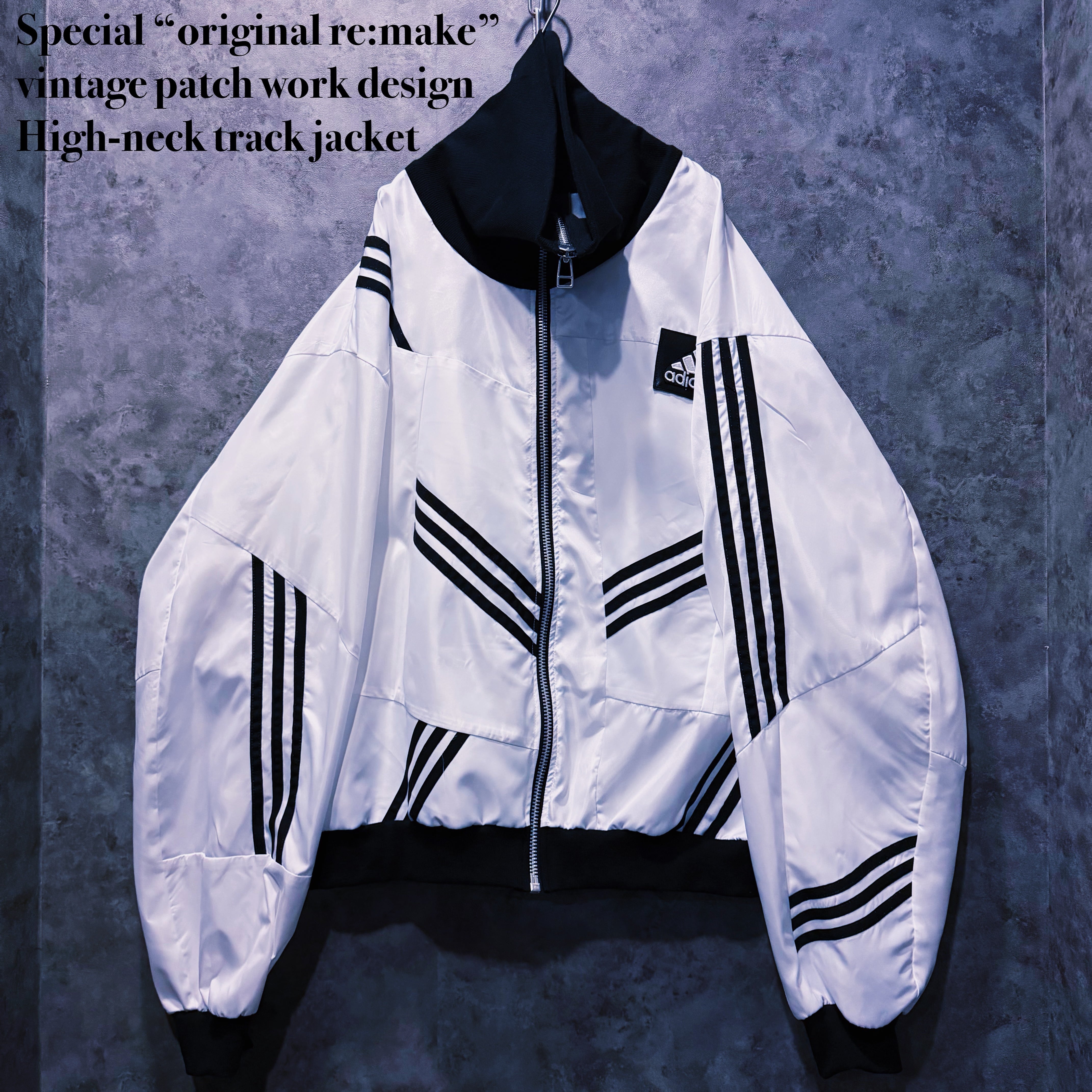 Special “original re:make” vintage patch work design High-neck track jacket