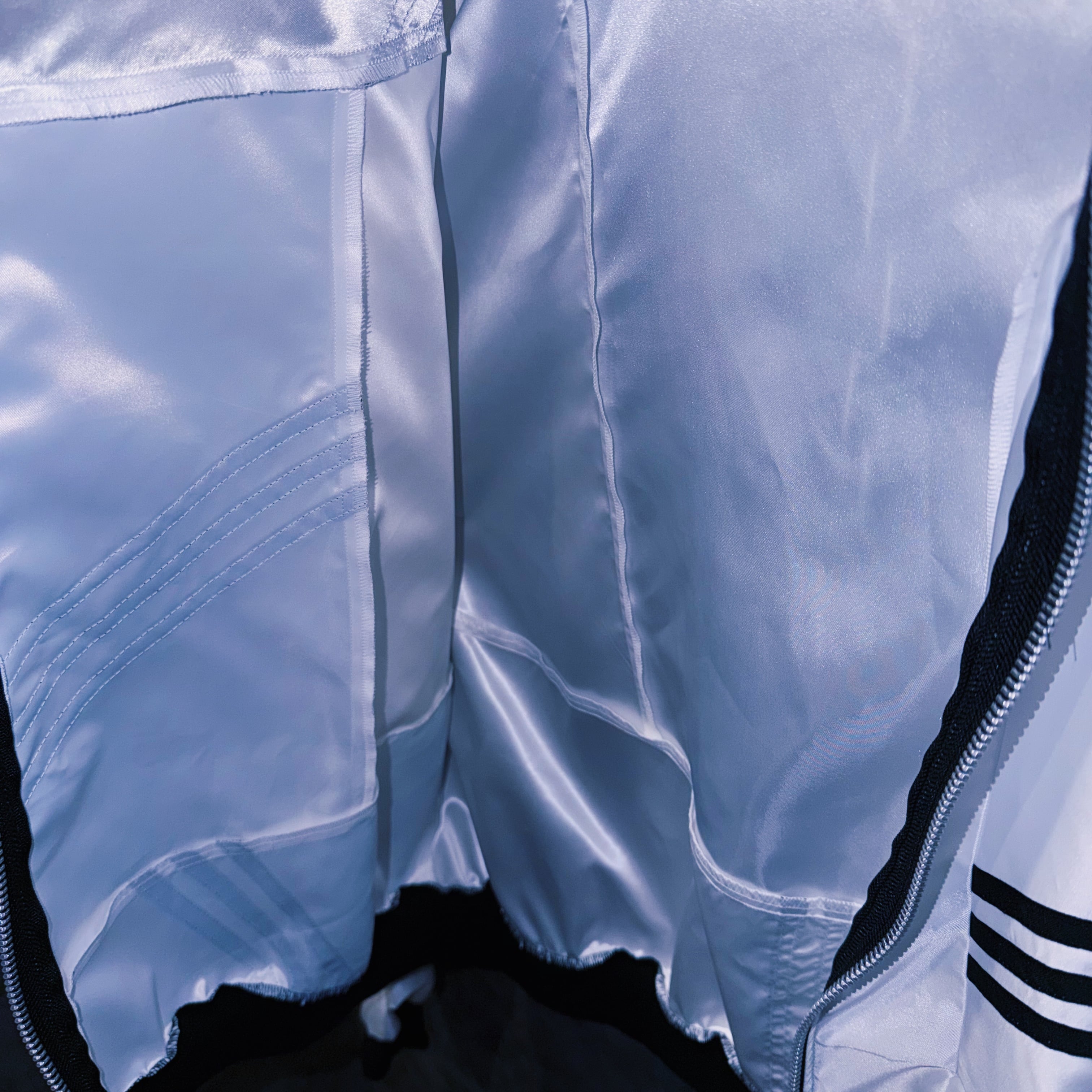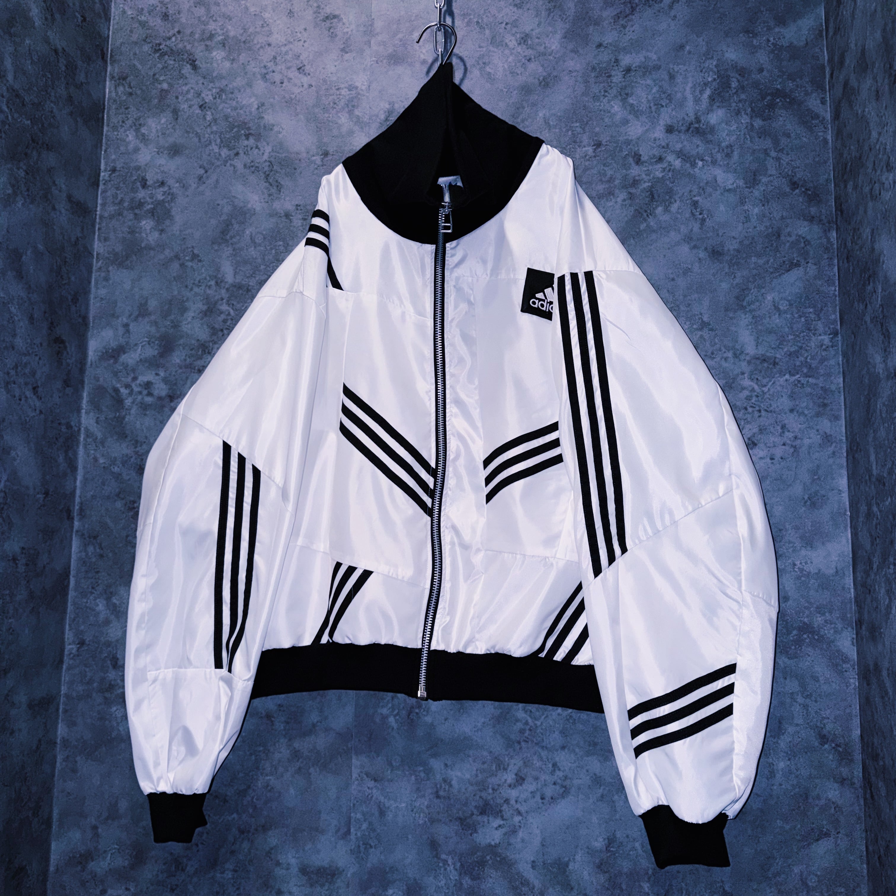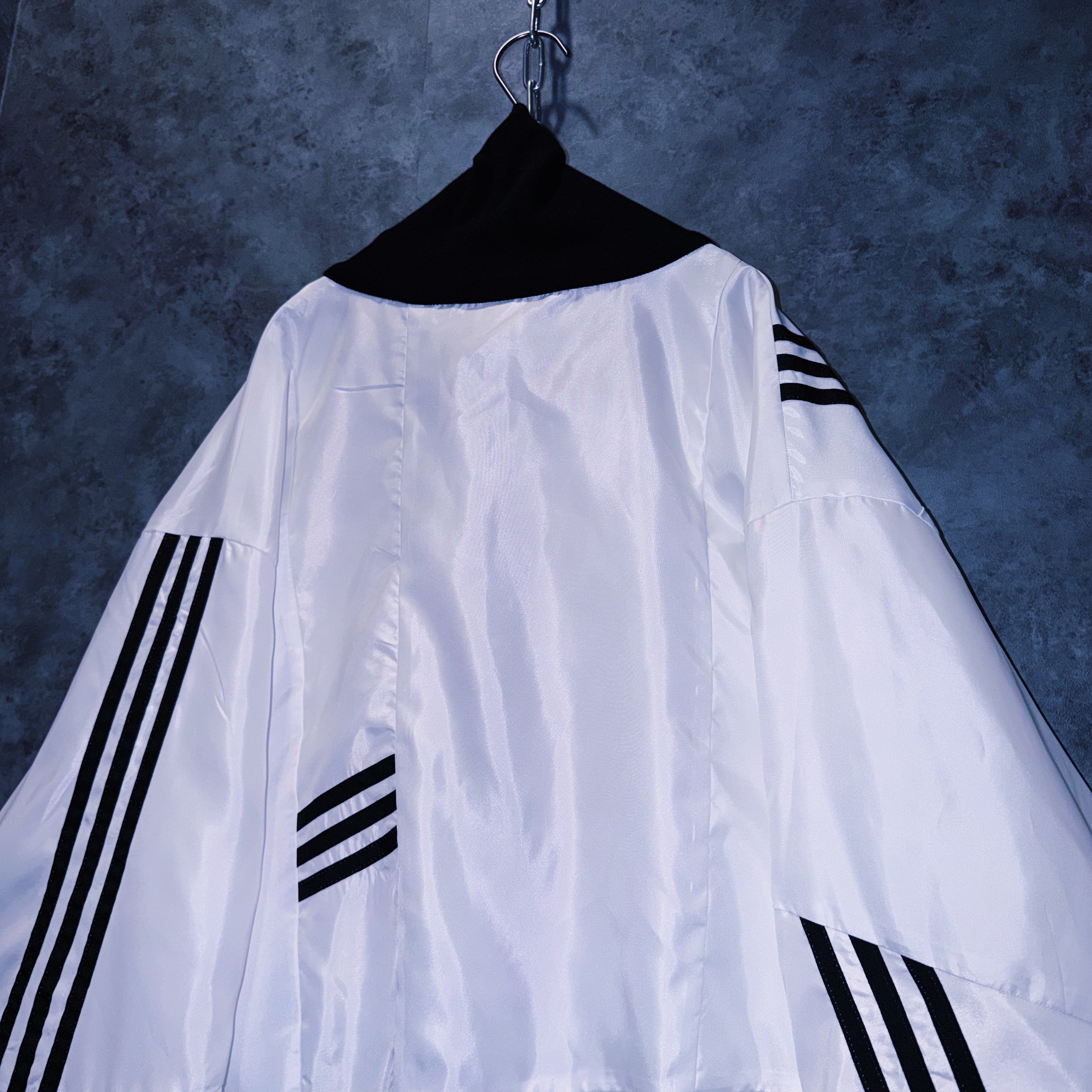 他数のトラックジャケットをパッチワークでデザインを施しており、全てバラバラで圧巻の存在感。無数のトラックジャケットで中には名チームや企業などのチームウェアも存在している個体もあります。