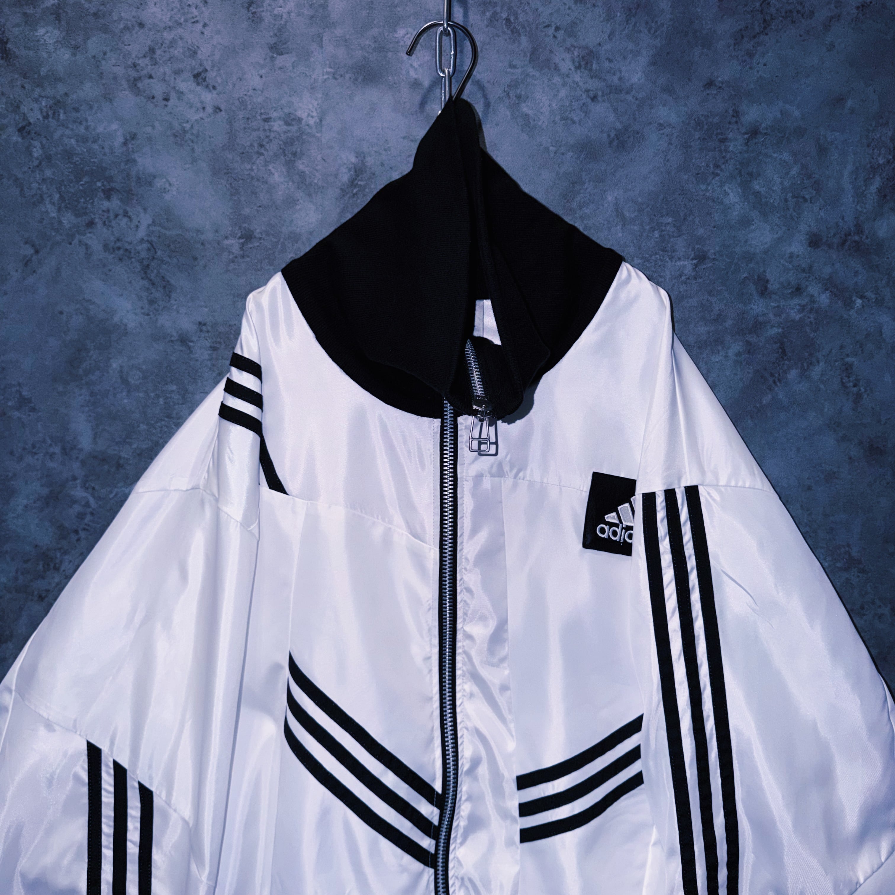スラックスはもちろん、デニムやカーゴ、リメイクパンツなど合わせるアイテムで様々な表情を見せてくれる当店のトラックジャケットの中でも一際存在感のある逸品。