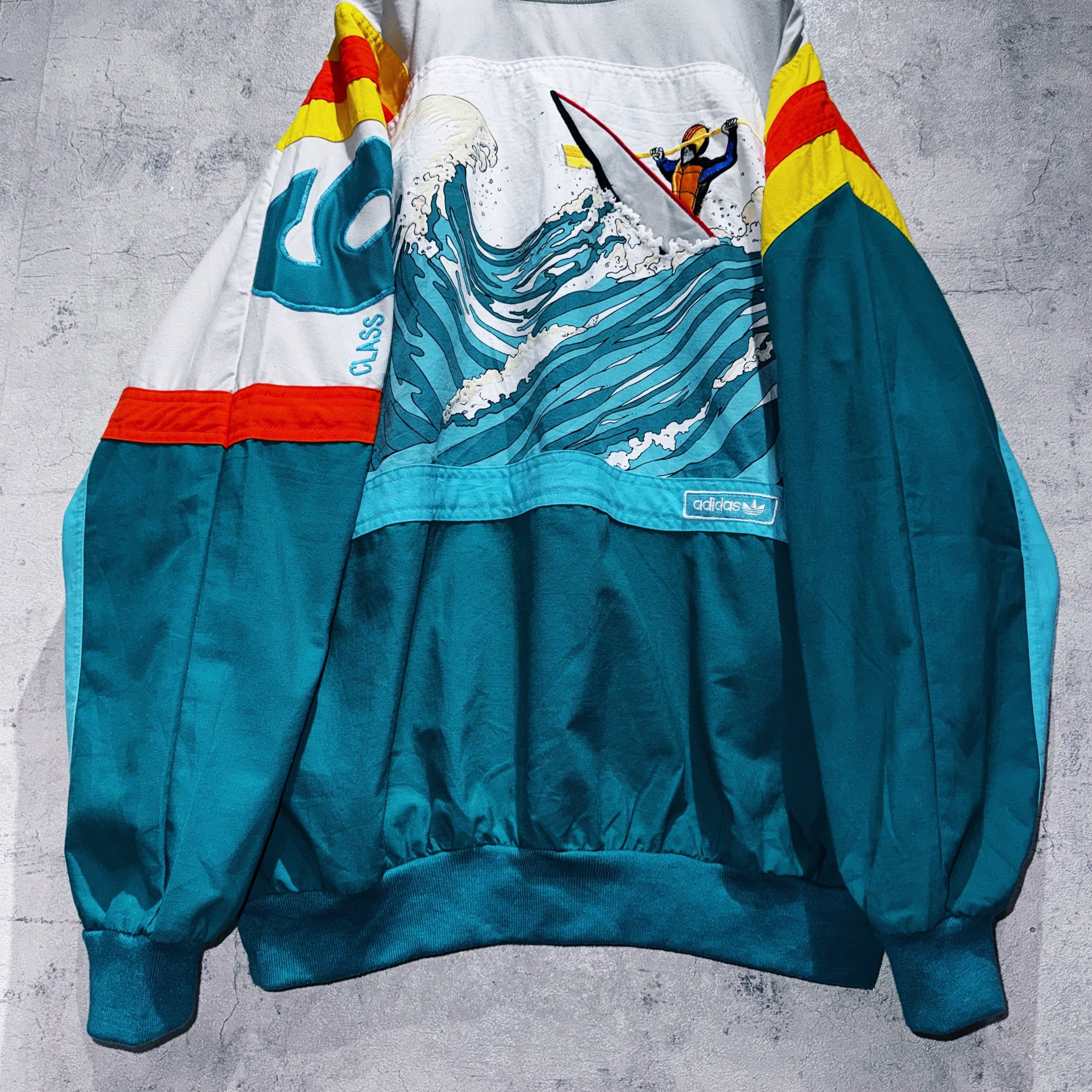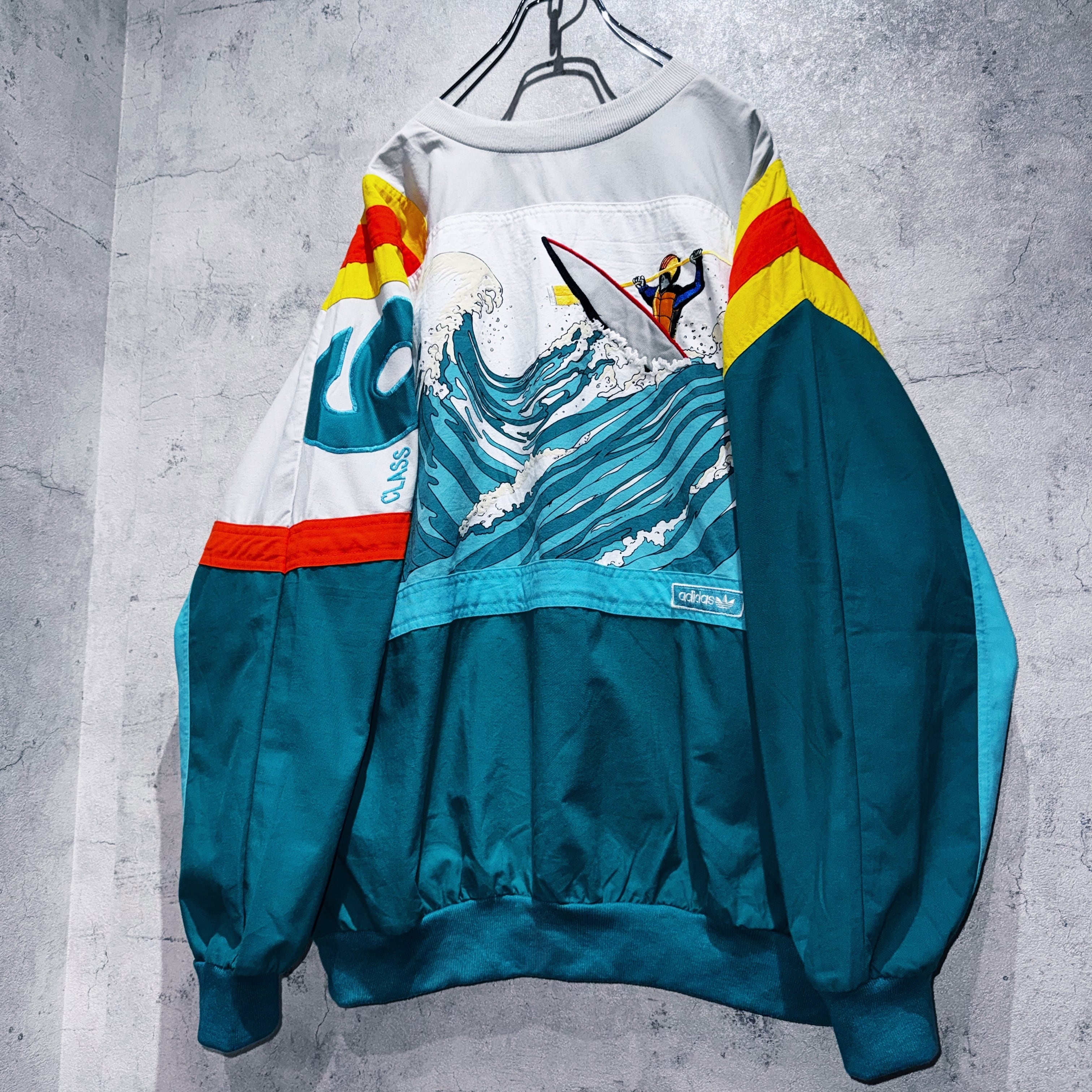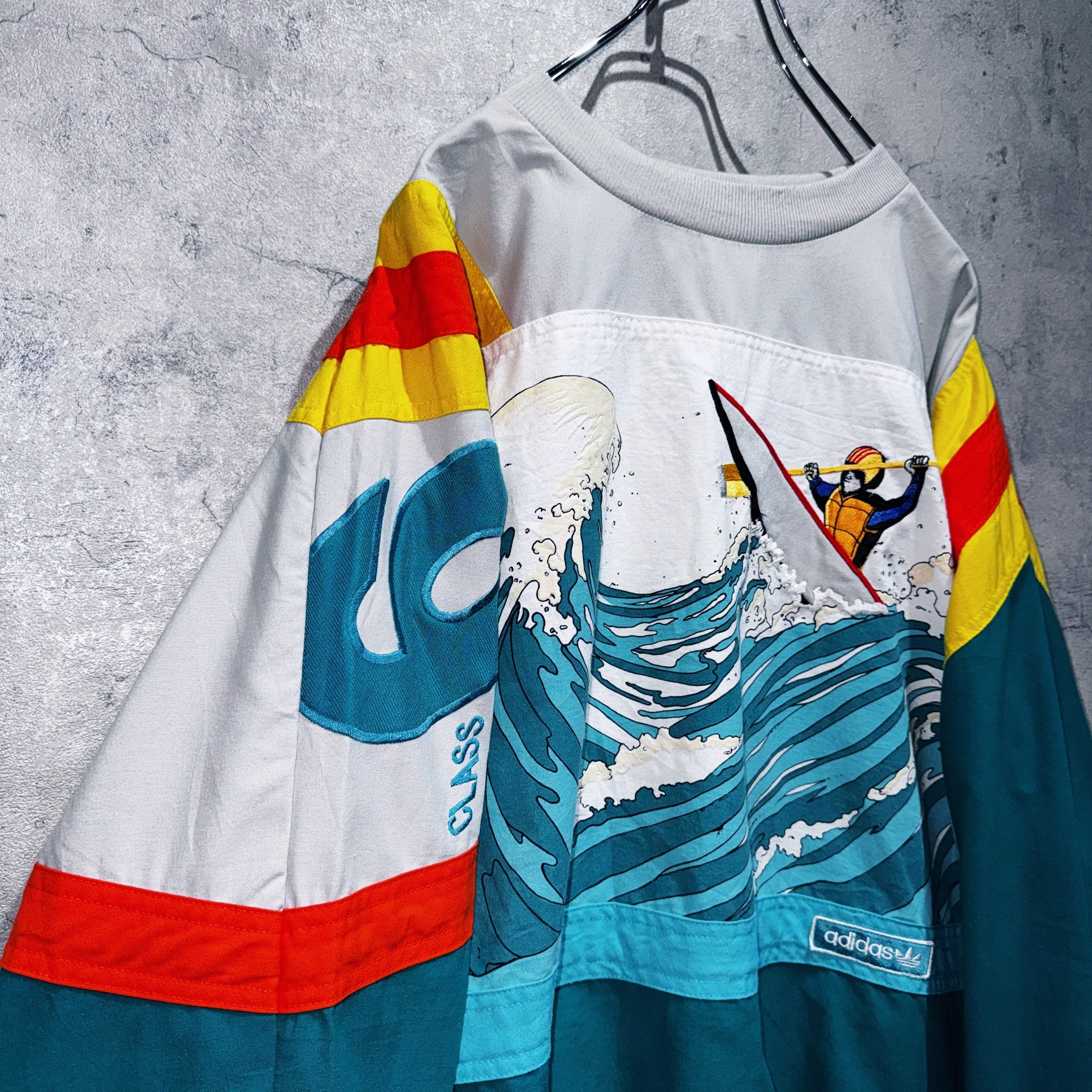 80's"ADIDAS"DEVIL‘S TOENAIL AMUZA RIVER kayak design pullover sweat shirt
