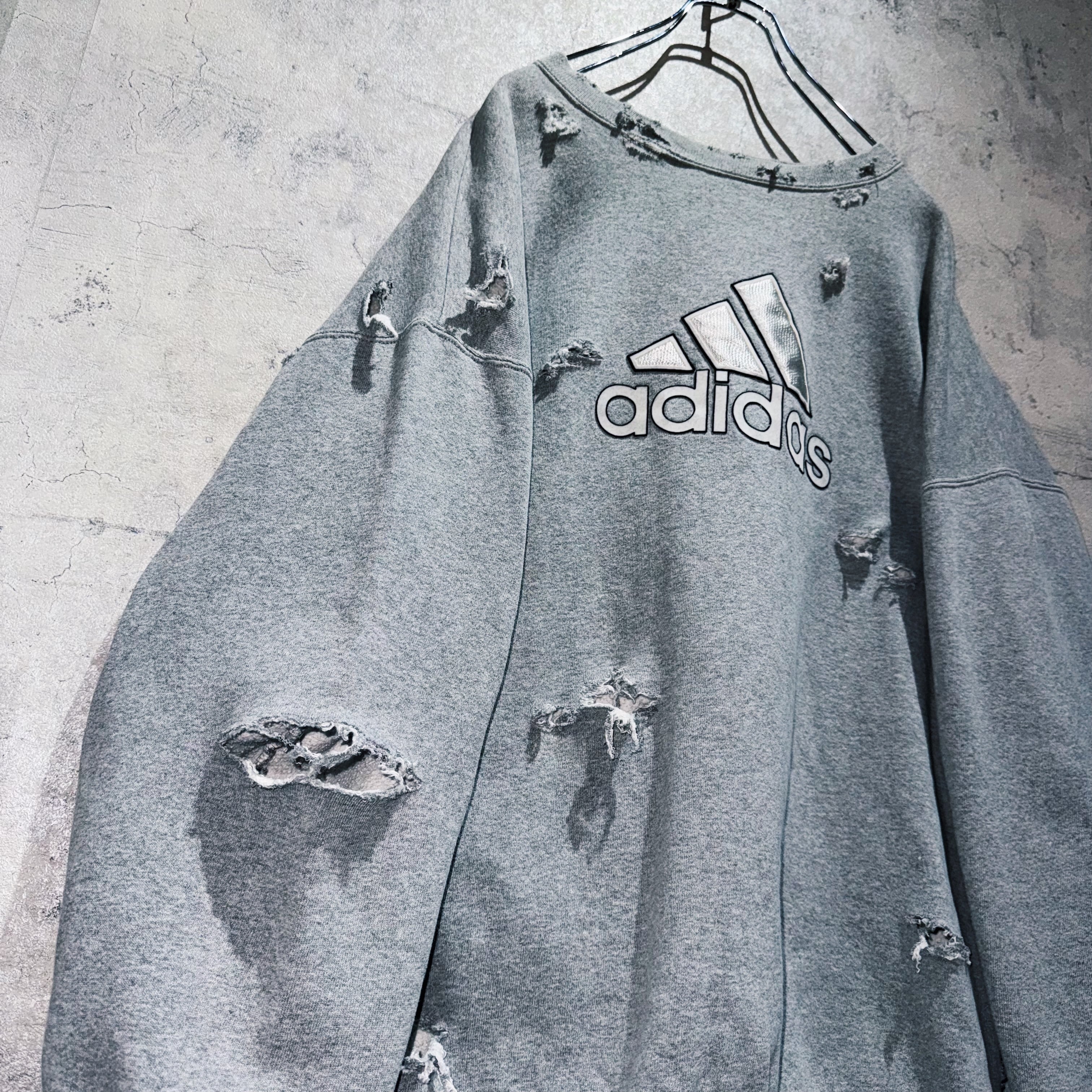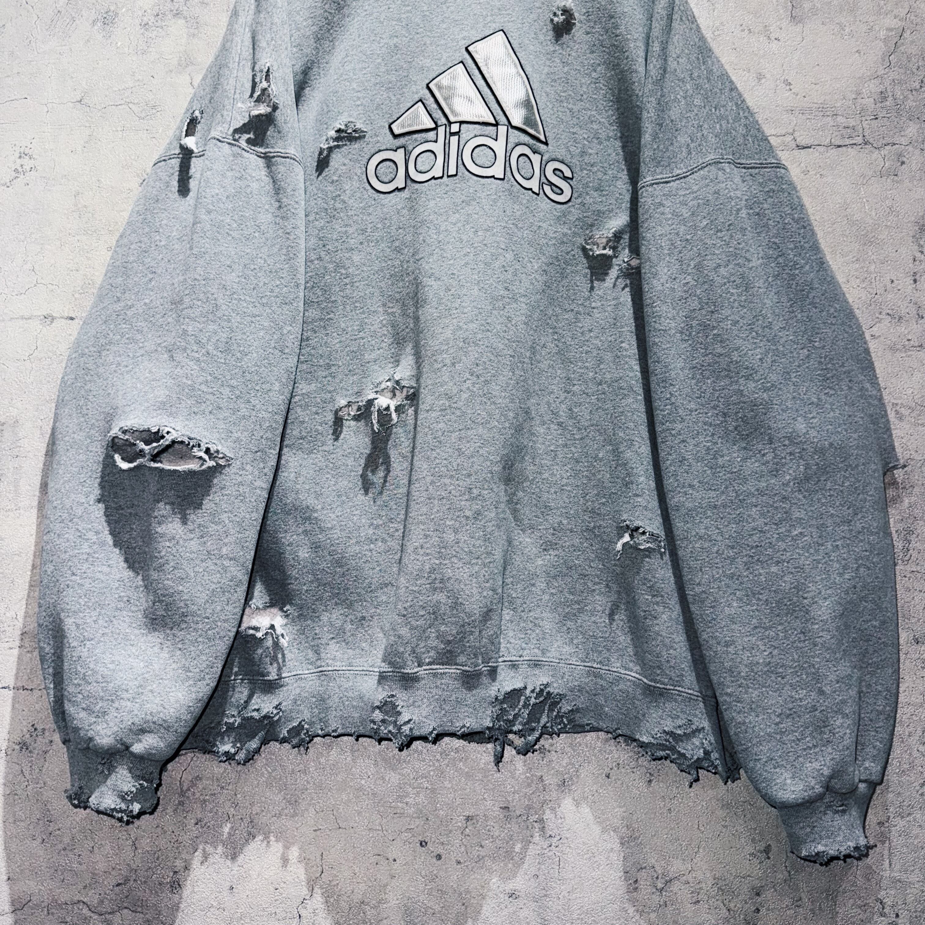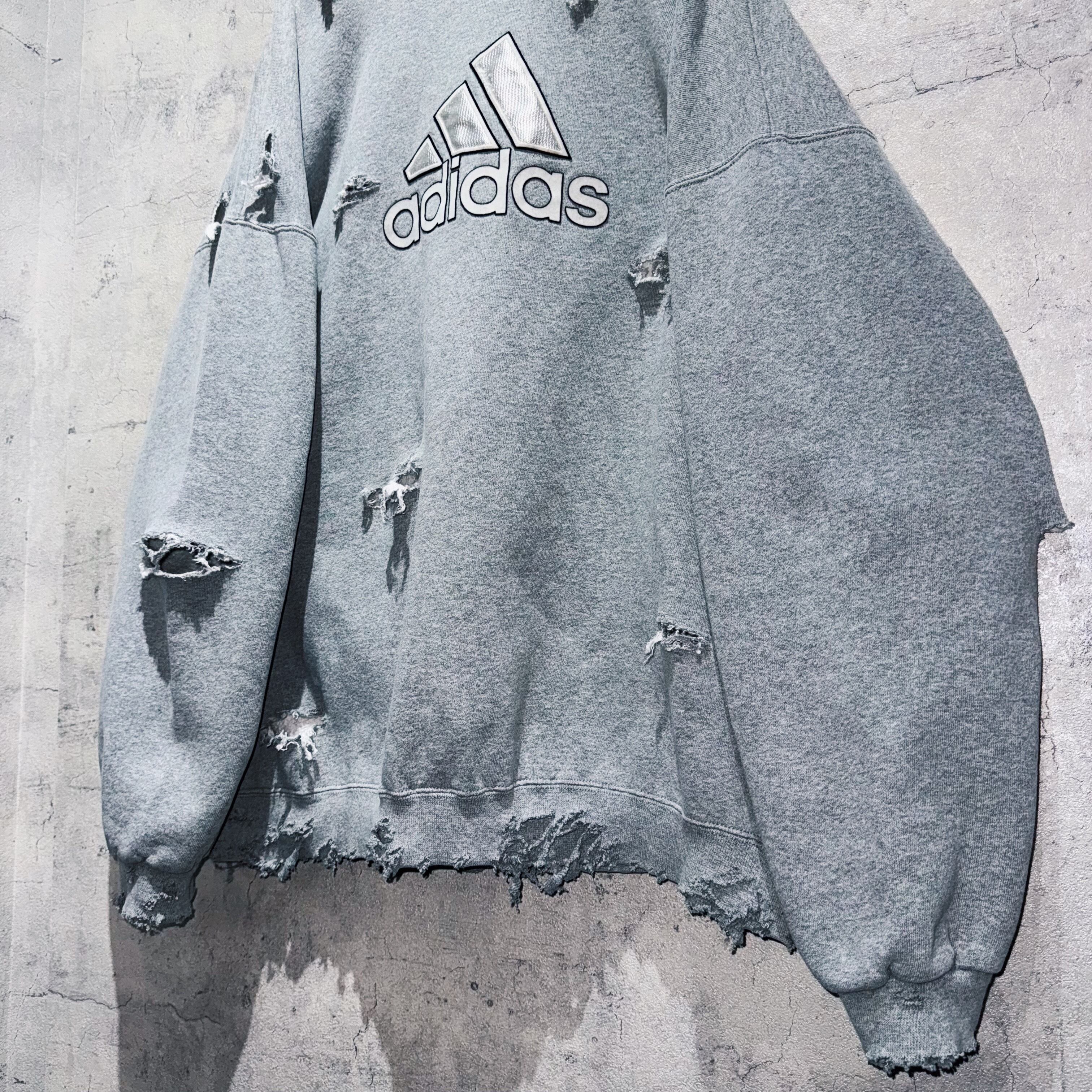 90's"ADIDAS"performance logo embroidery design boro custom pullover sweat