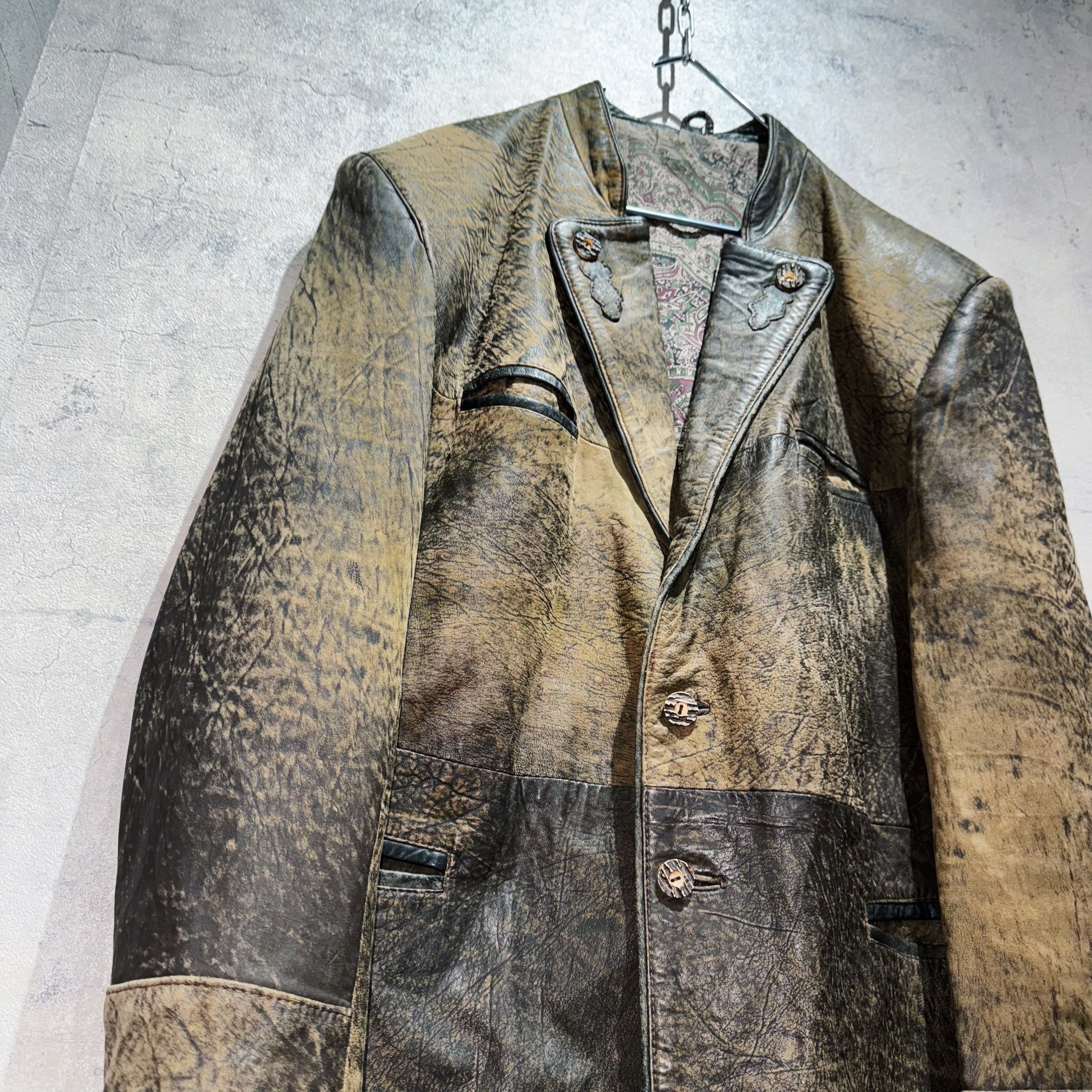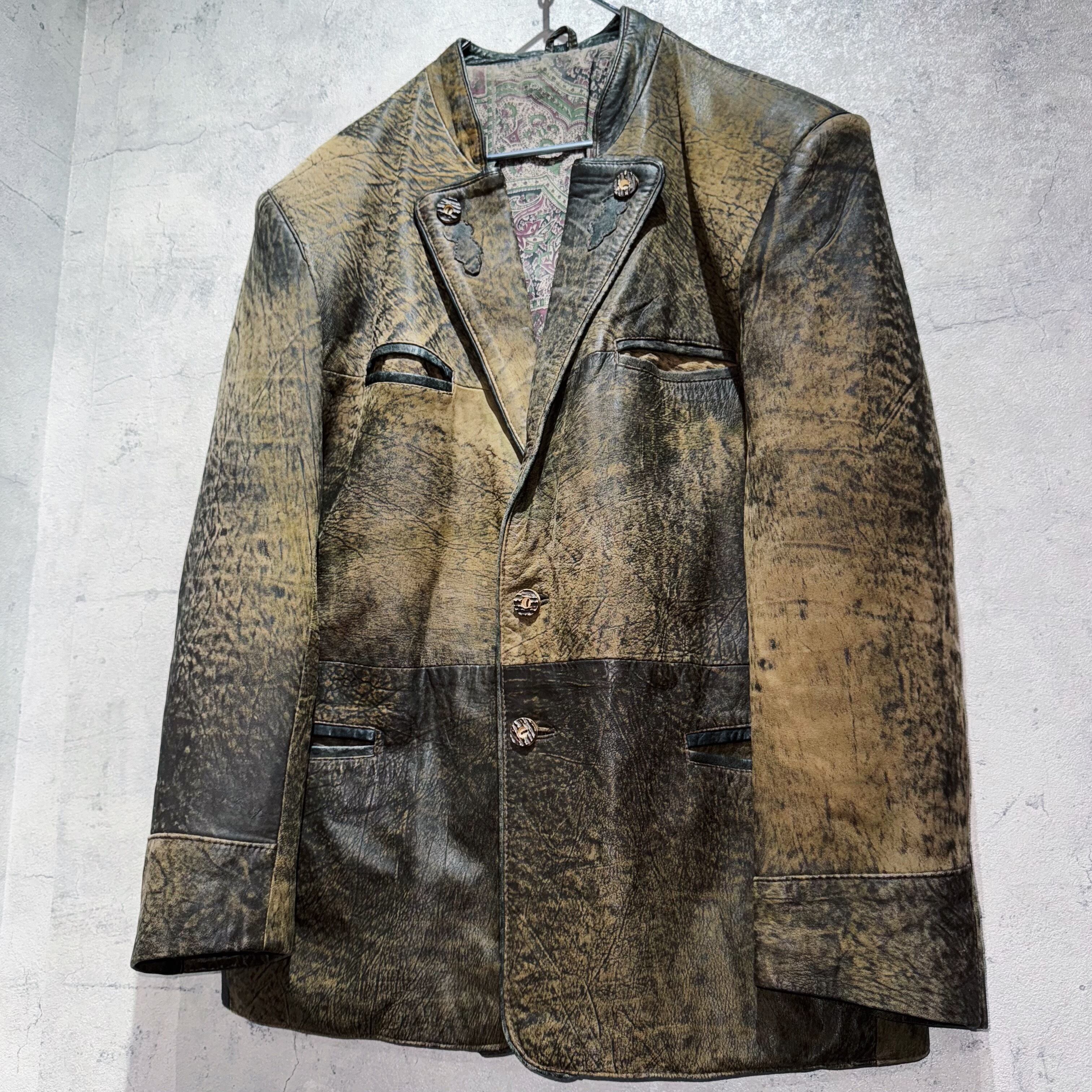 ユーロヴィンテージ”チロリアン”レザーアントラーズボタンテーラードジャケット