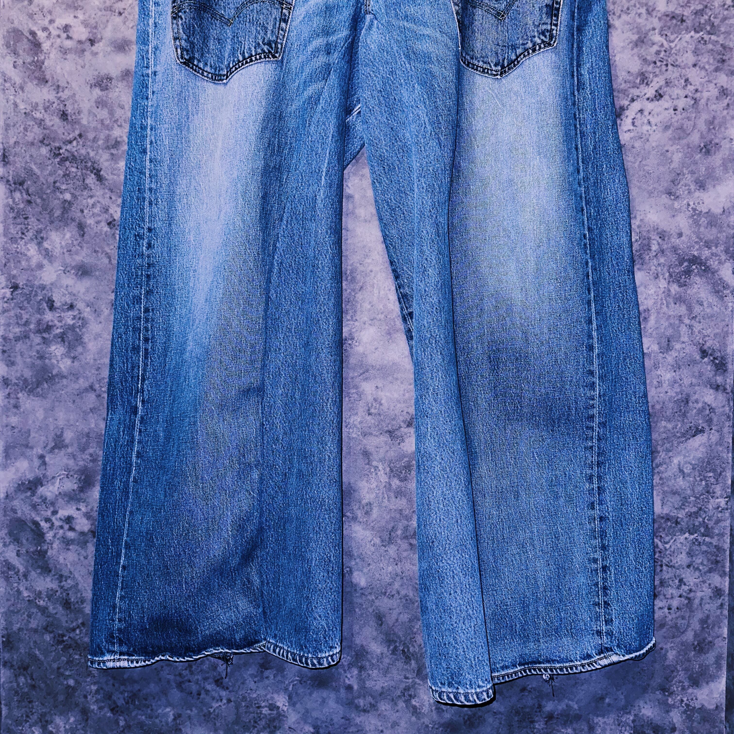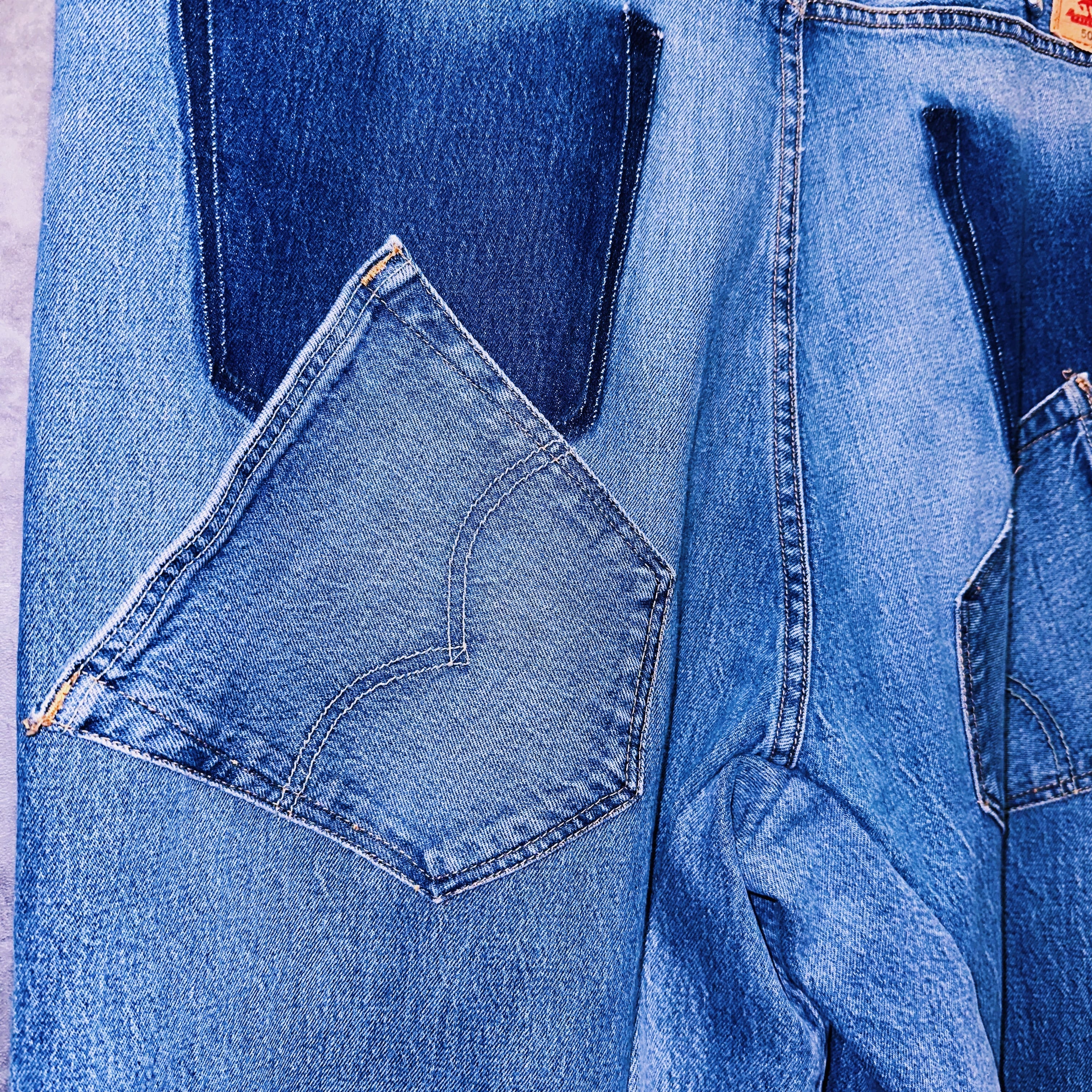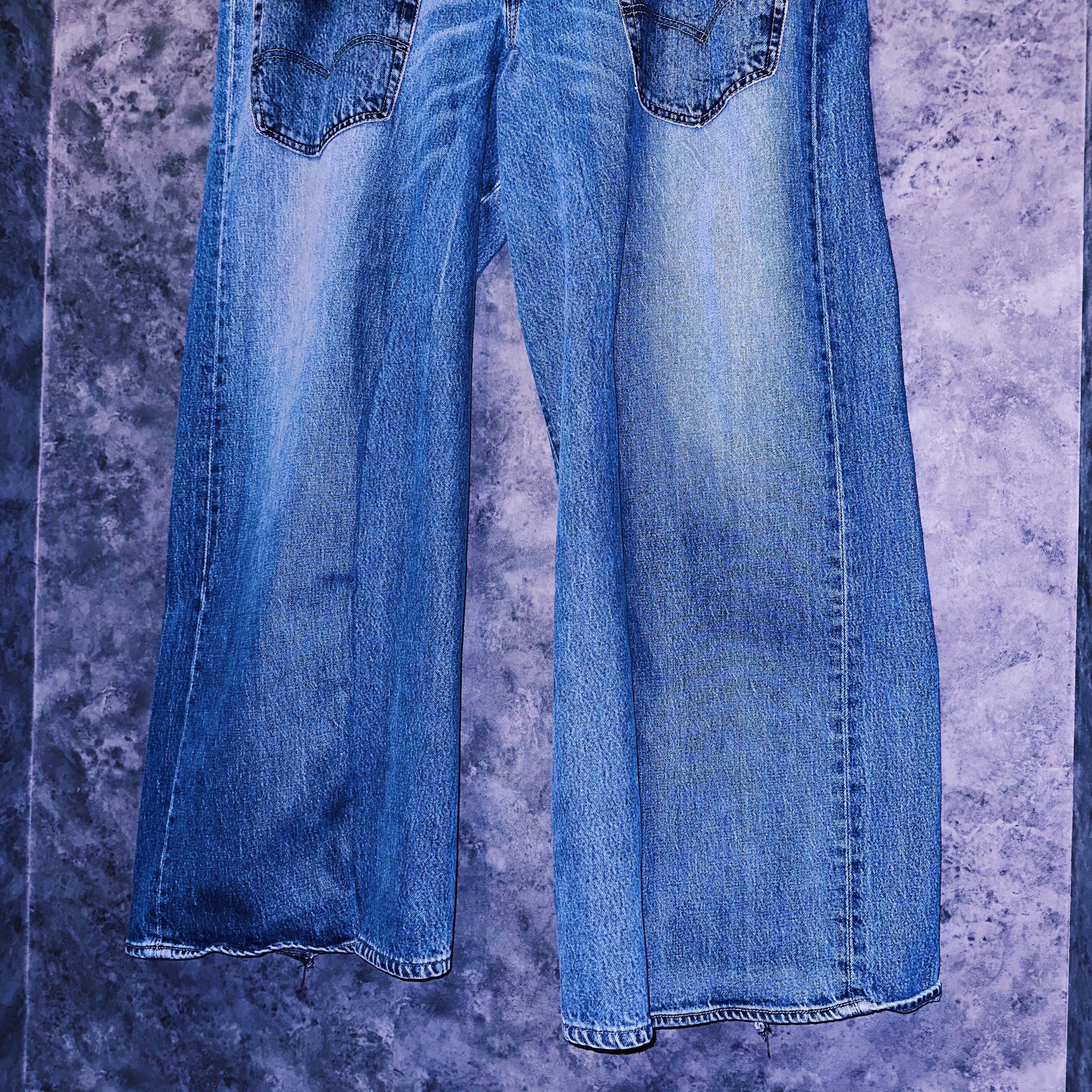 圧倒的な太さを誇るバギーデニムパンツ。デニムを2着以上のドッキングが施されており通常のデニムと違い腿幅周りからガッツリバギーシルエットに仕上げられた極太ワイドバギーデニム。