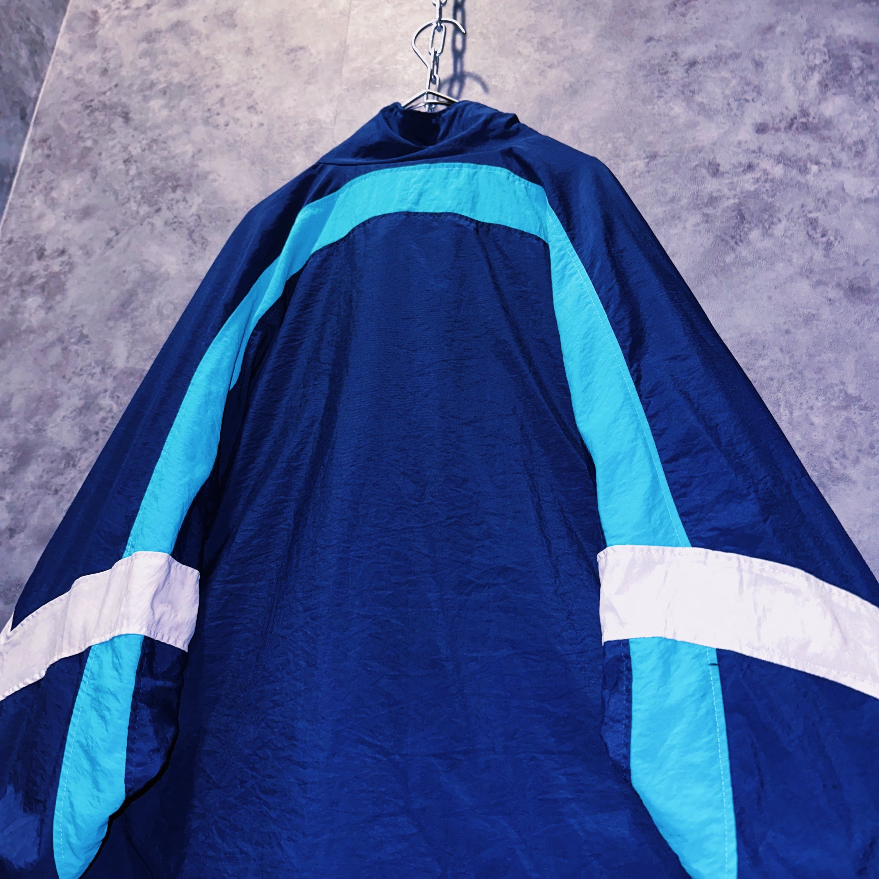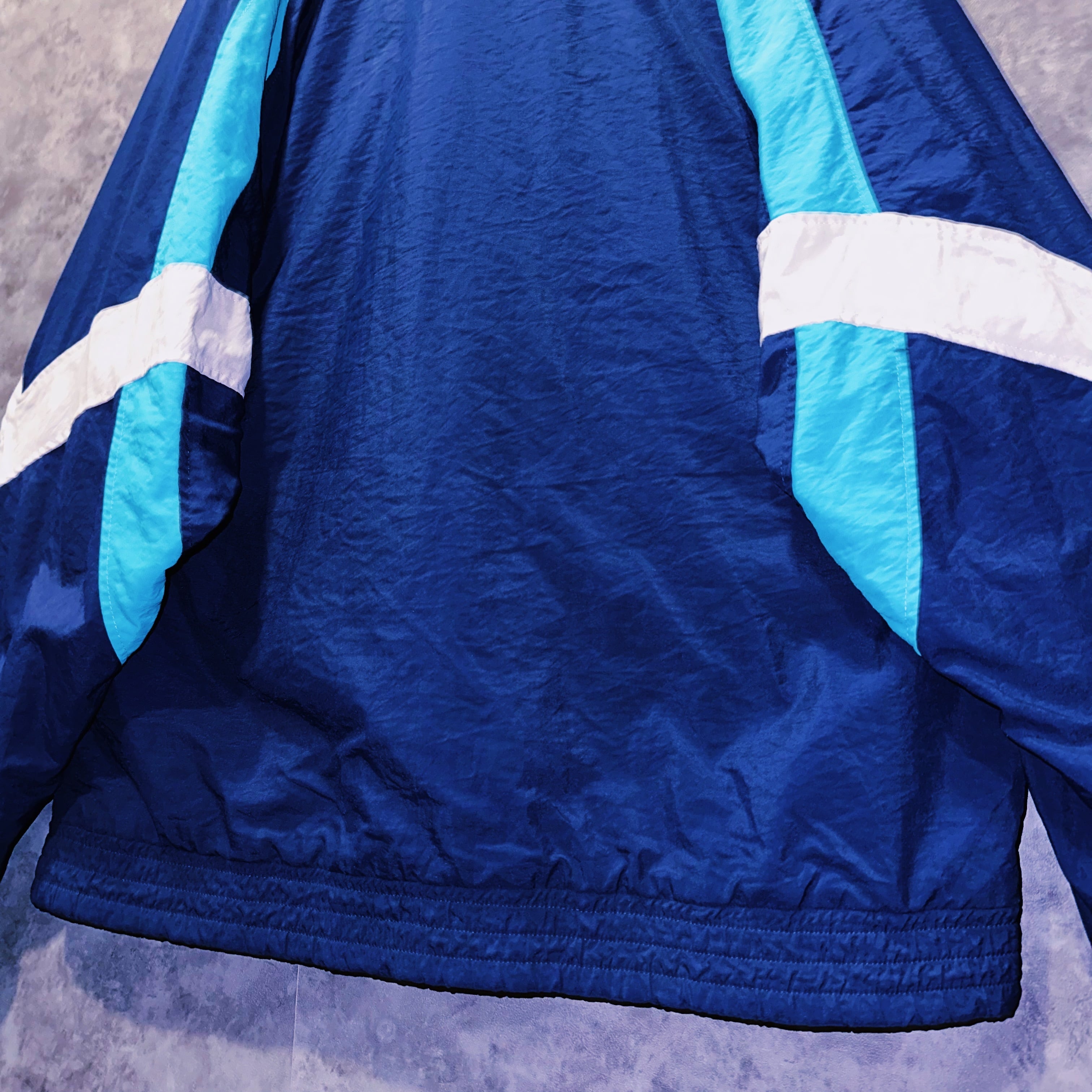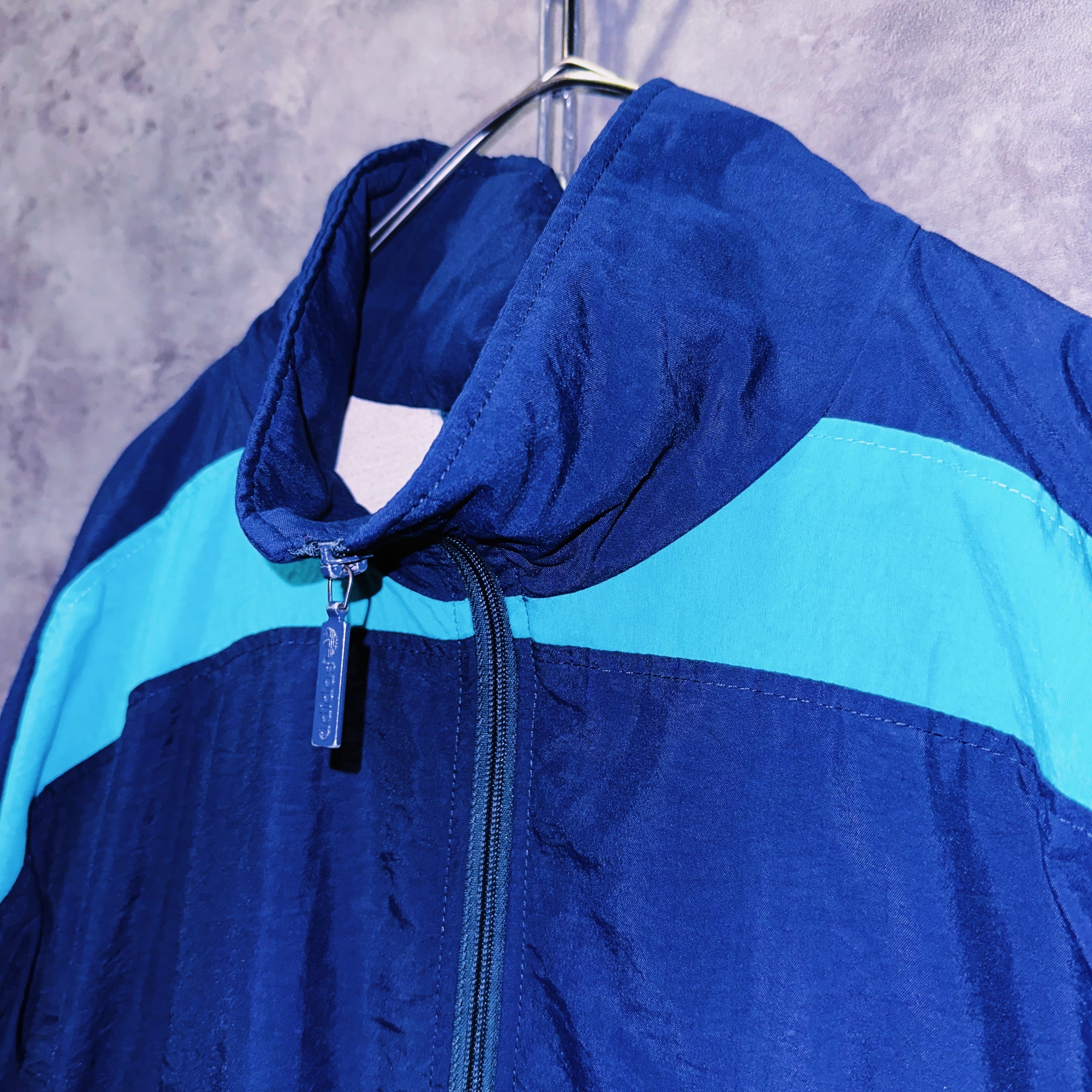 ターコイズブルーベースで品格のあるネイビーの切り替えがアクセントになったカラーリングが素晴らしいトラックジャケット。