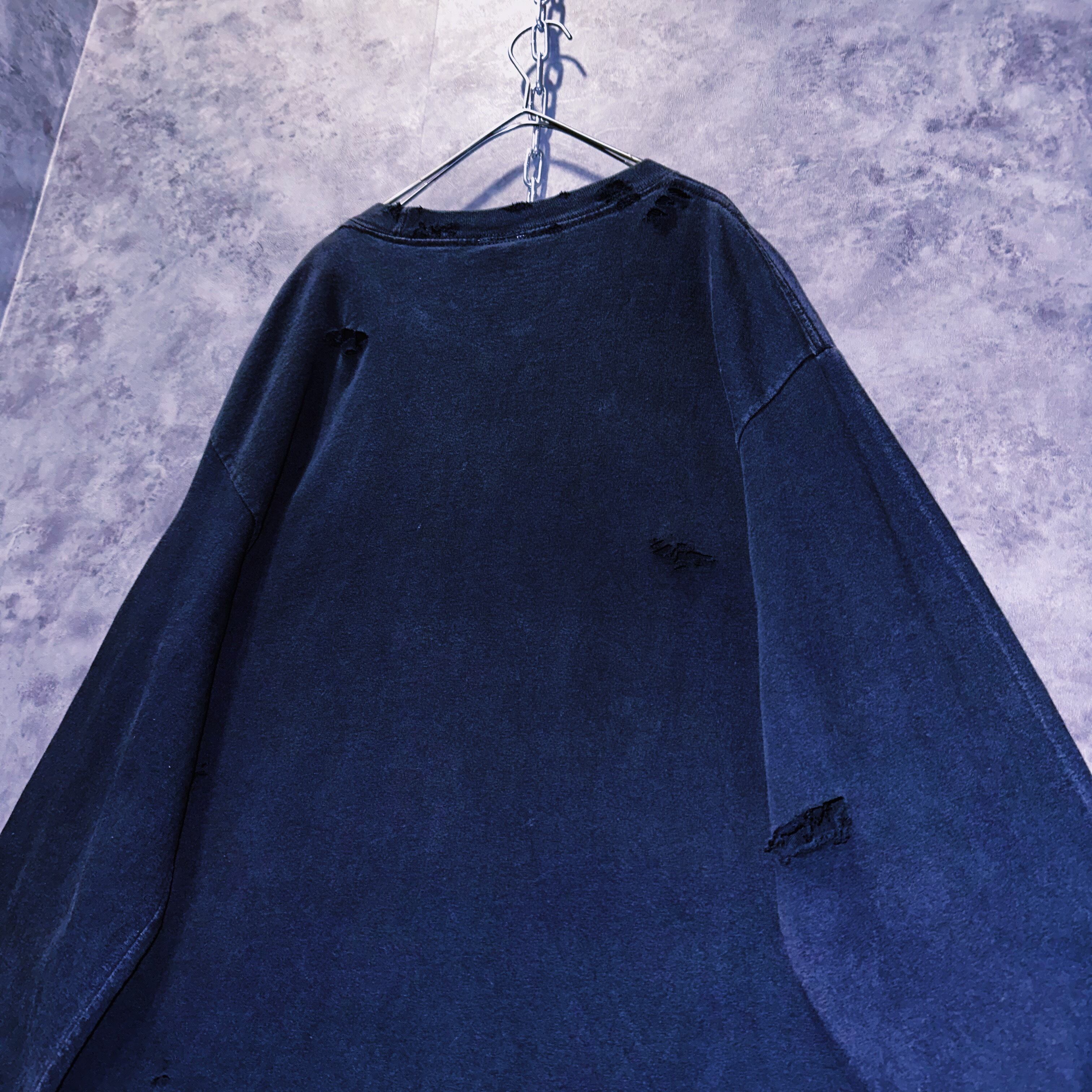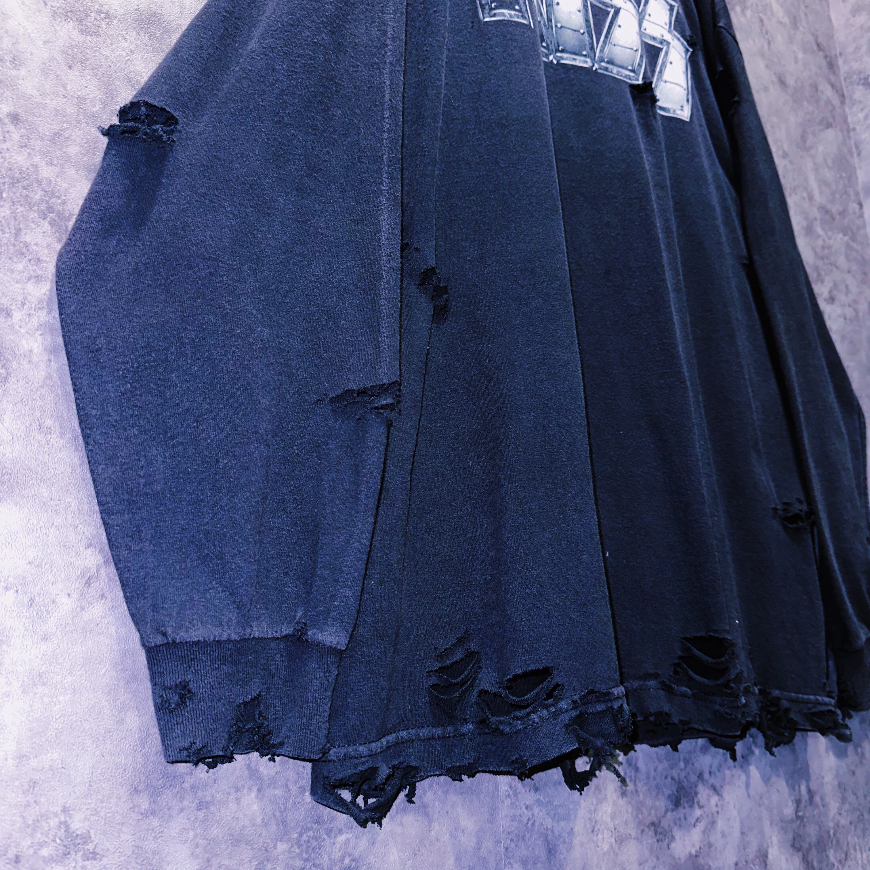 【doppio】vintage "KISS" logo print design boro custom long T shirt