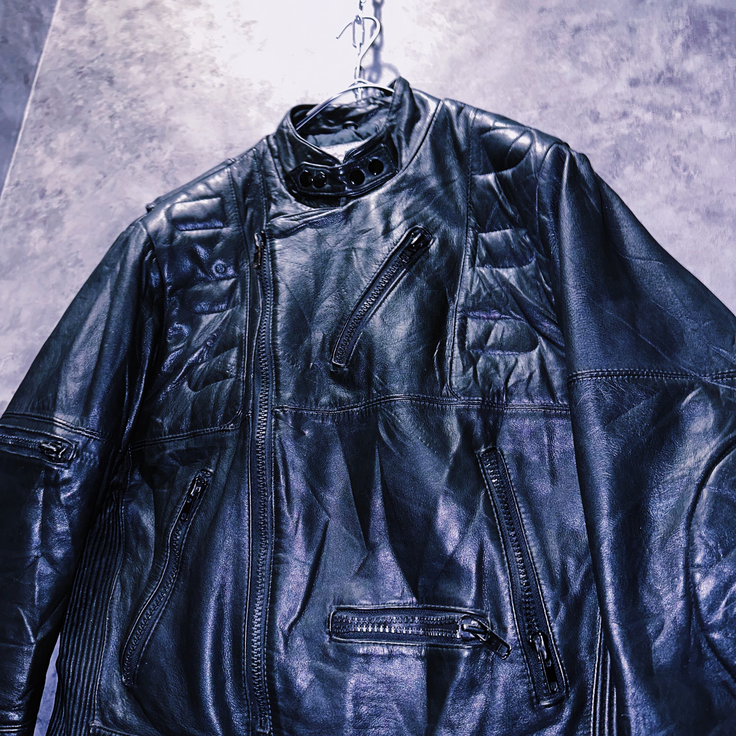近年トレンドのレーシングジャケット。その中でもオールブラックのレザータイプは珍しく更には襟を折るとダブルライダースにもなる2way仕様のレザージャケット。