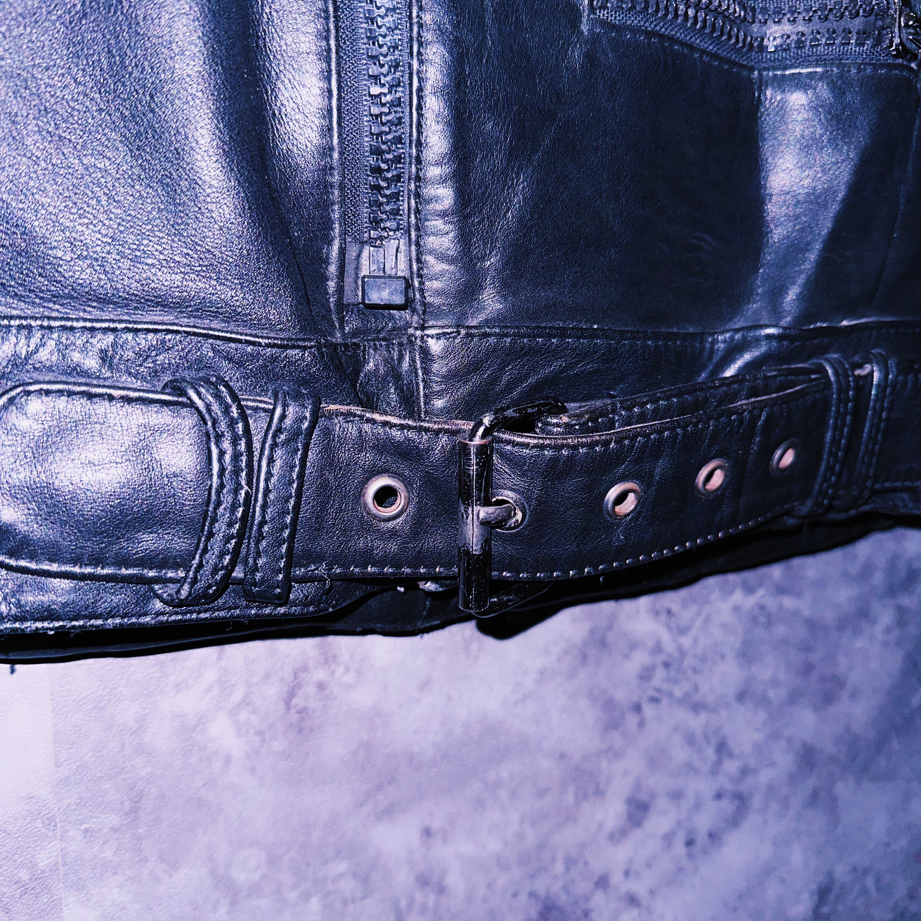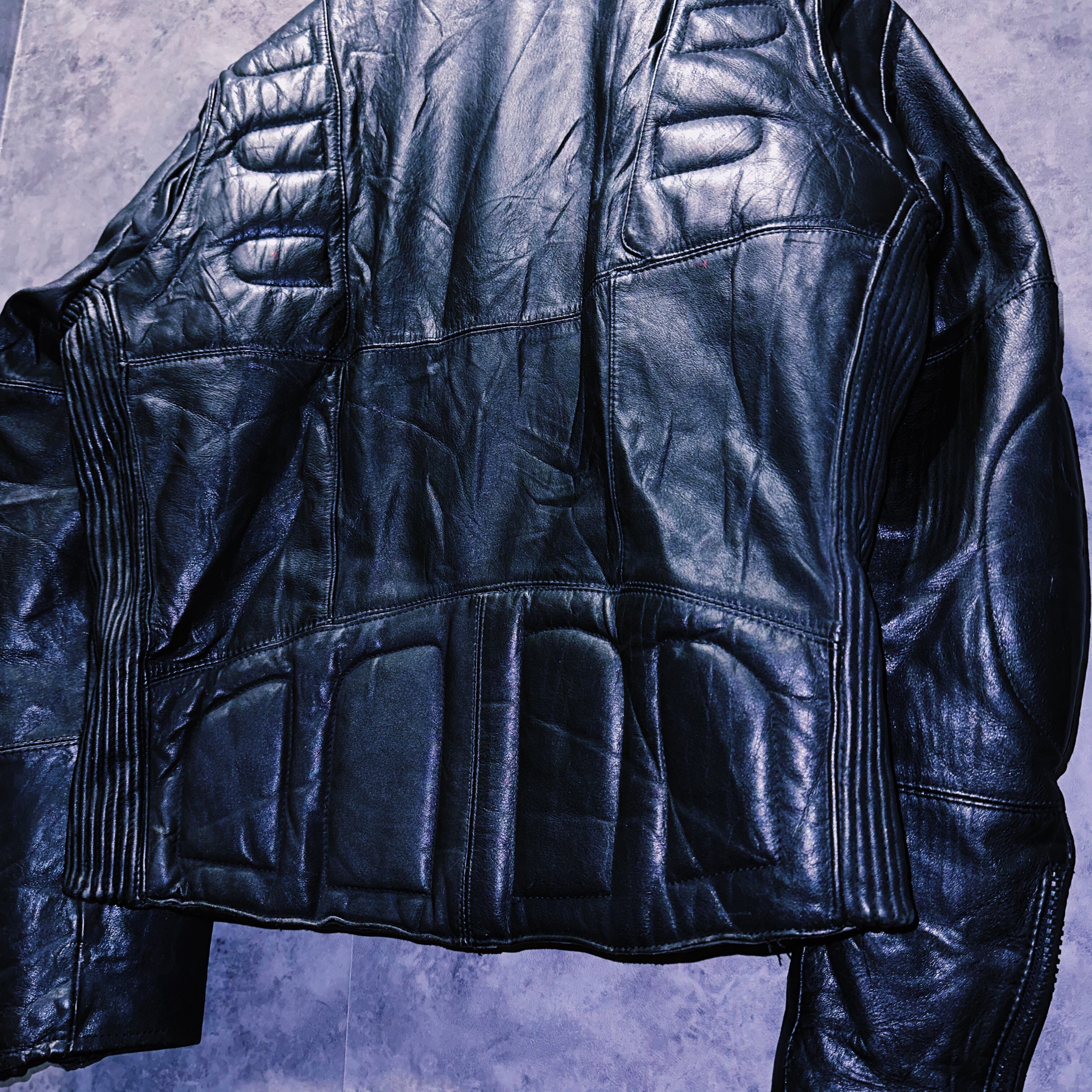 シルエットもエルボープロテクターなどの厚みのあるディティールで鎧のような圧倒的存在感のあるレザージャケット。