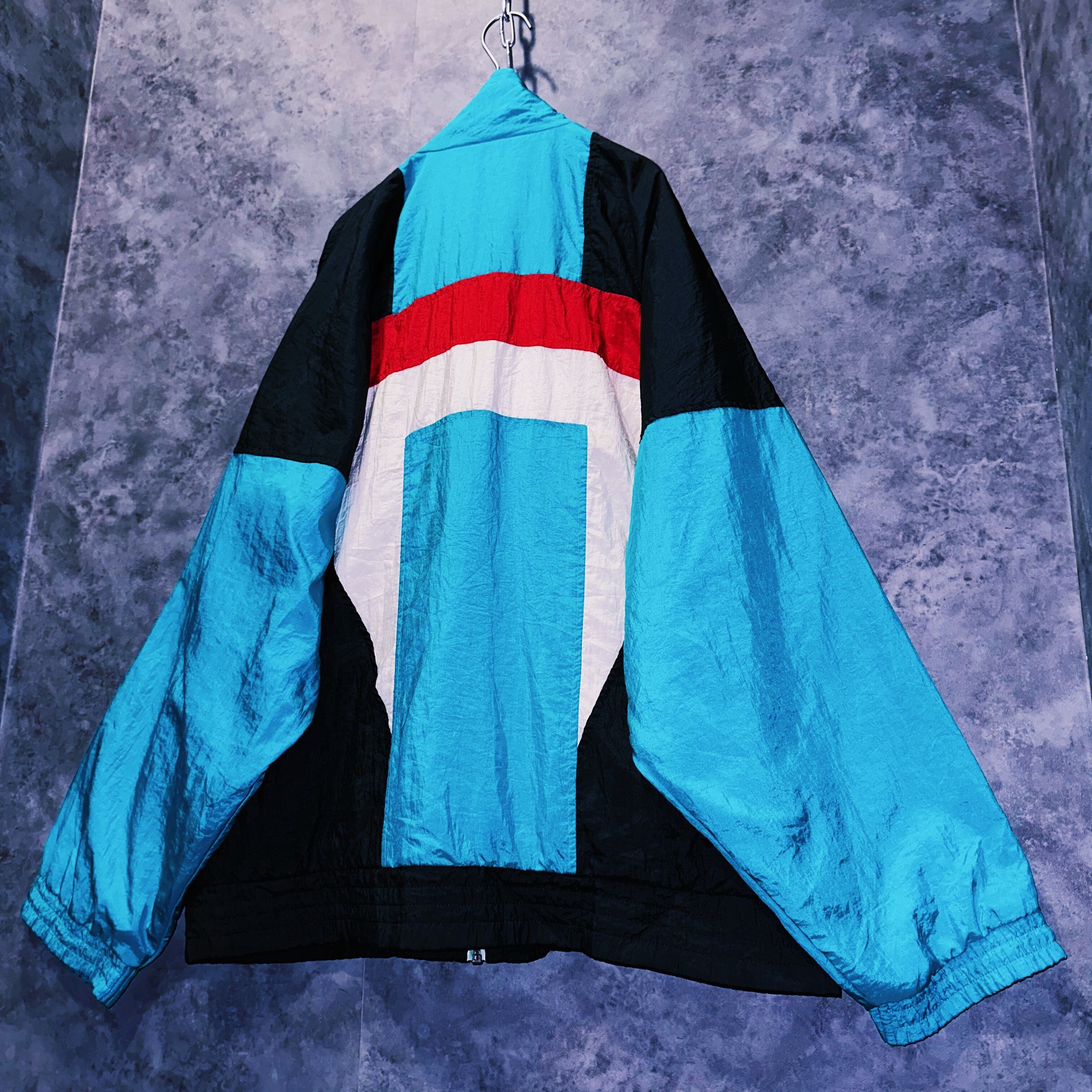 マルチな配色で全く見かけない、ターコイズブルーにレッドとホワイトのクールなカラーリングが特徴的でどこか近未来感もある1着。