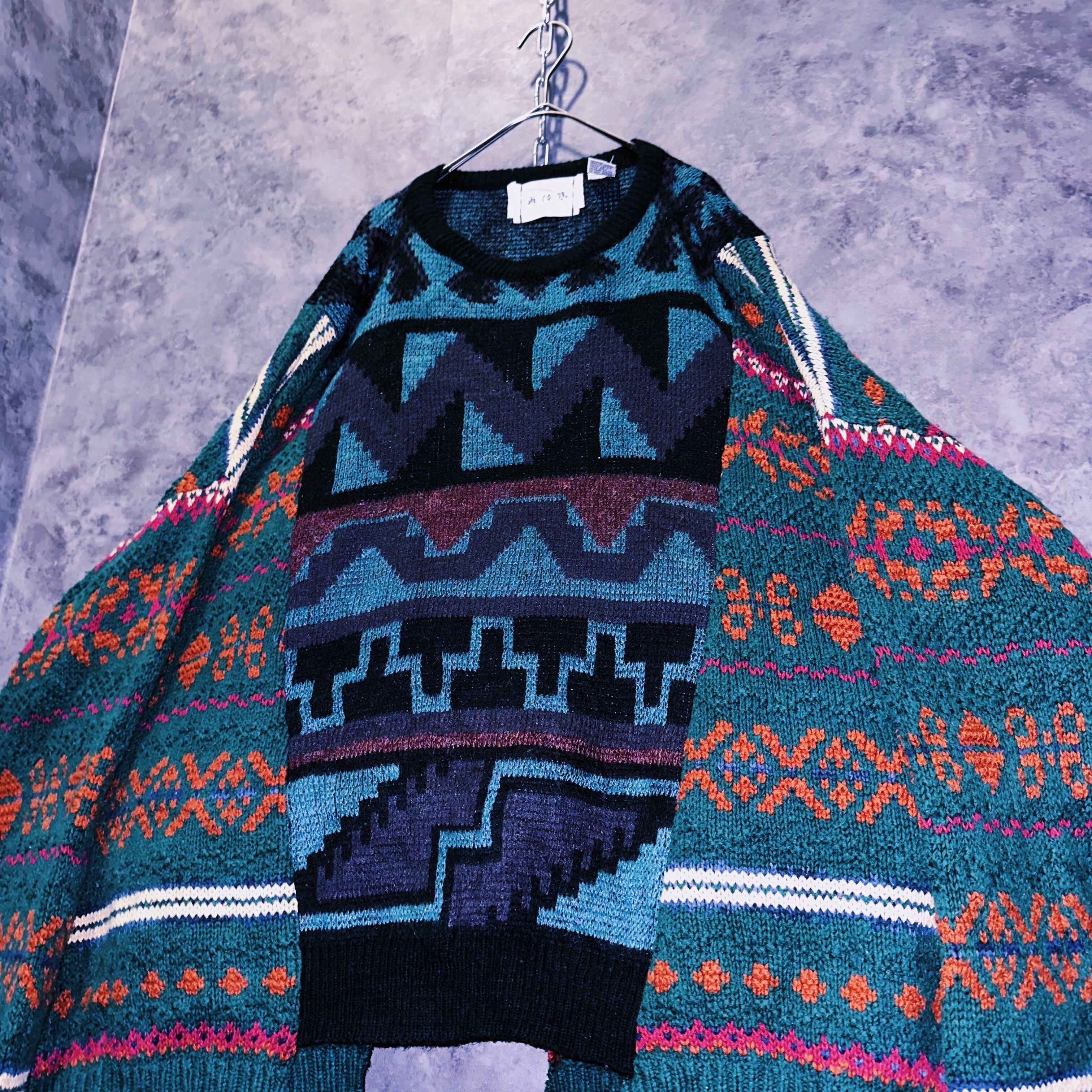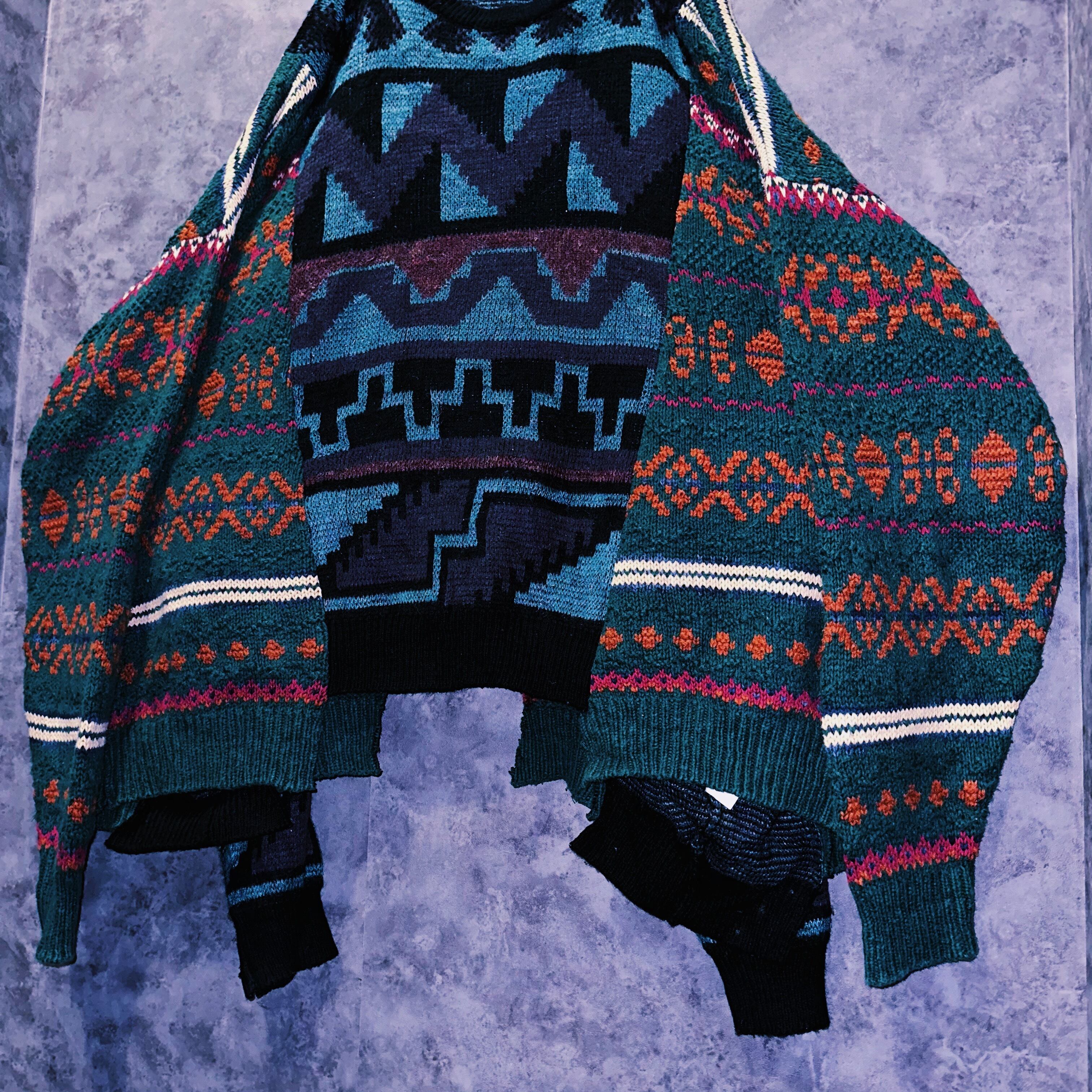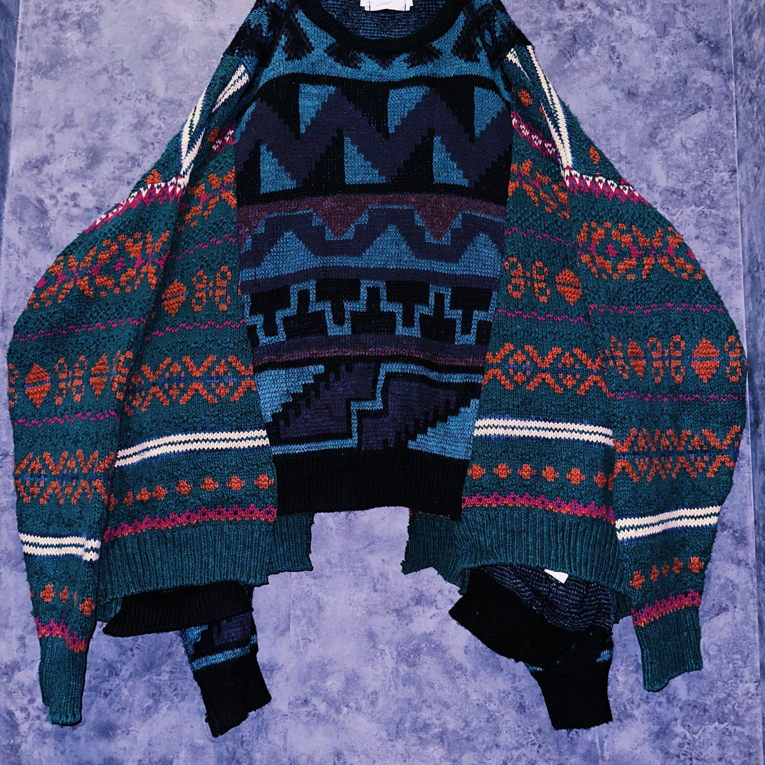 "再倖築"マルチカラードッキングリメイククアトロアームプルオーバーニット