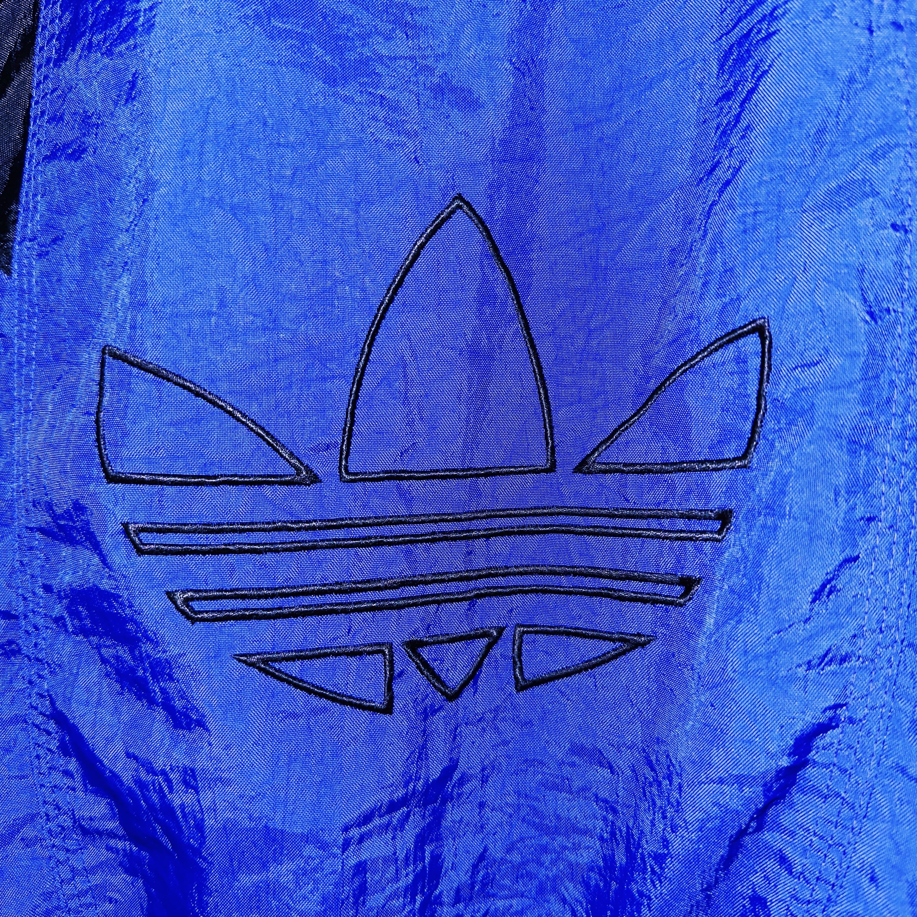 ブルーとブラックカラーで構成された洗練されたトラックジャケット。なんといっても魅力的なのが袖に施されたトレフォイルロゴのプリントはレアなデザイン。