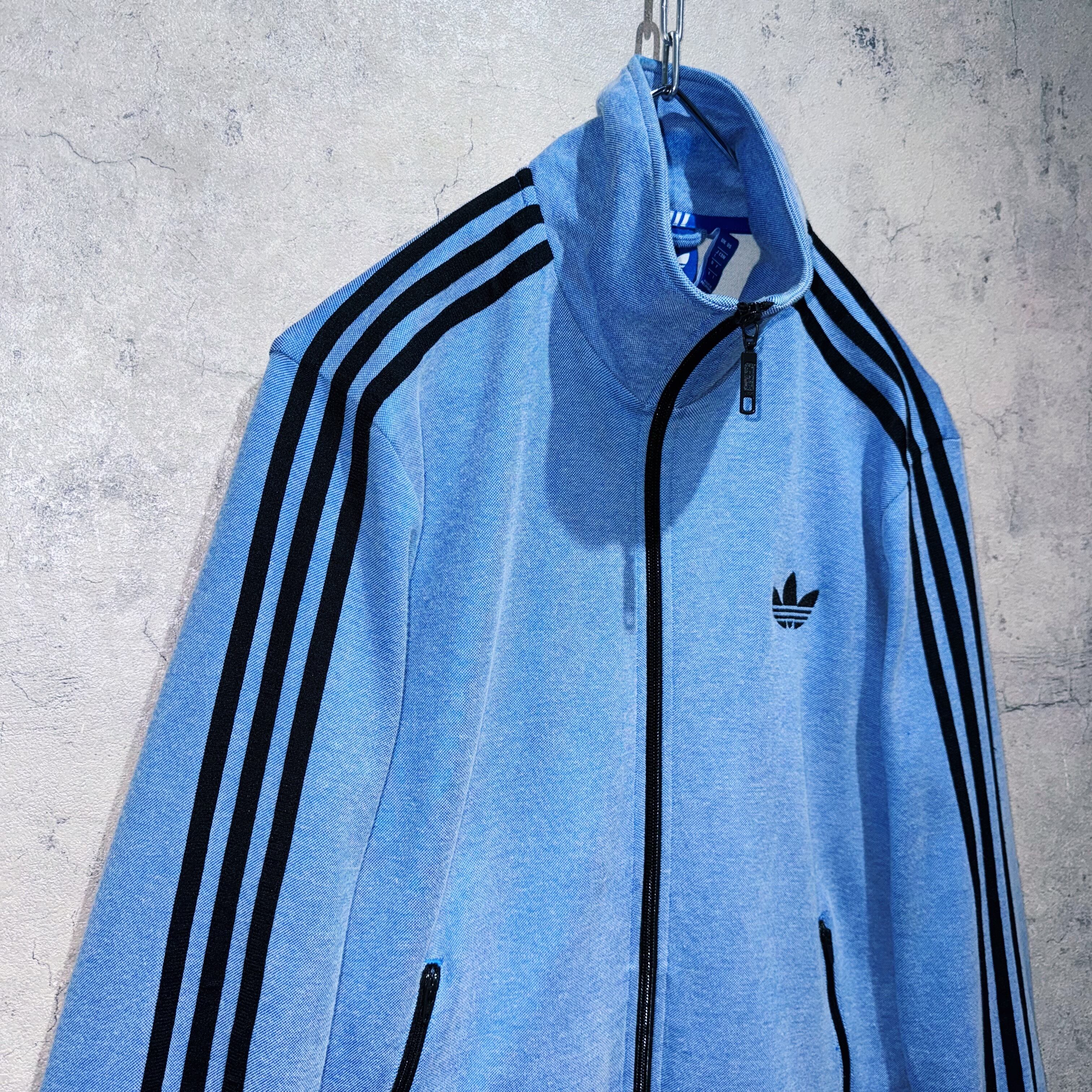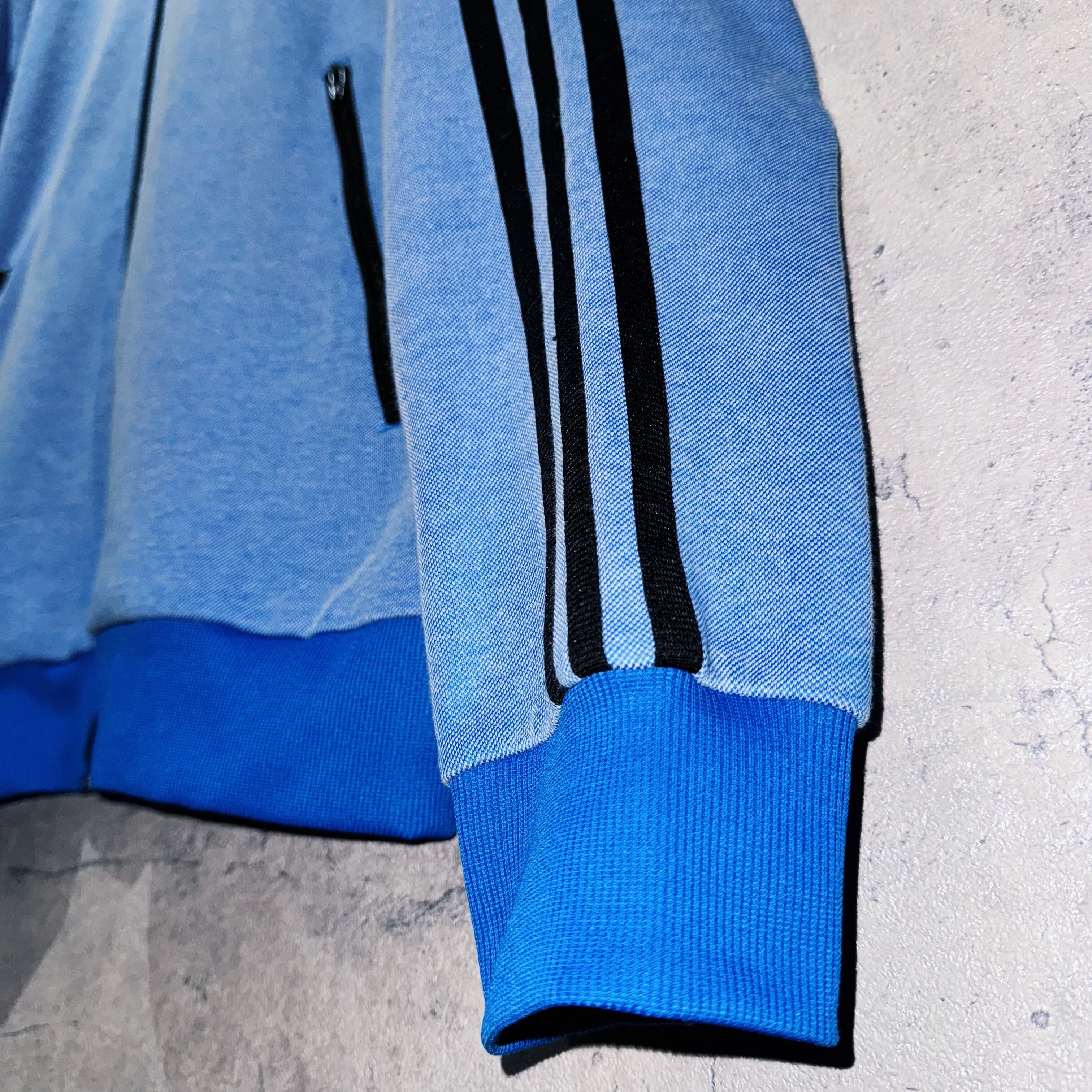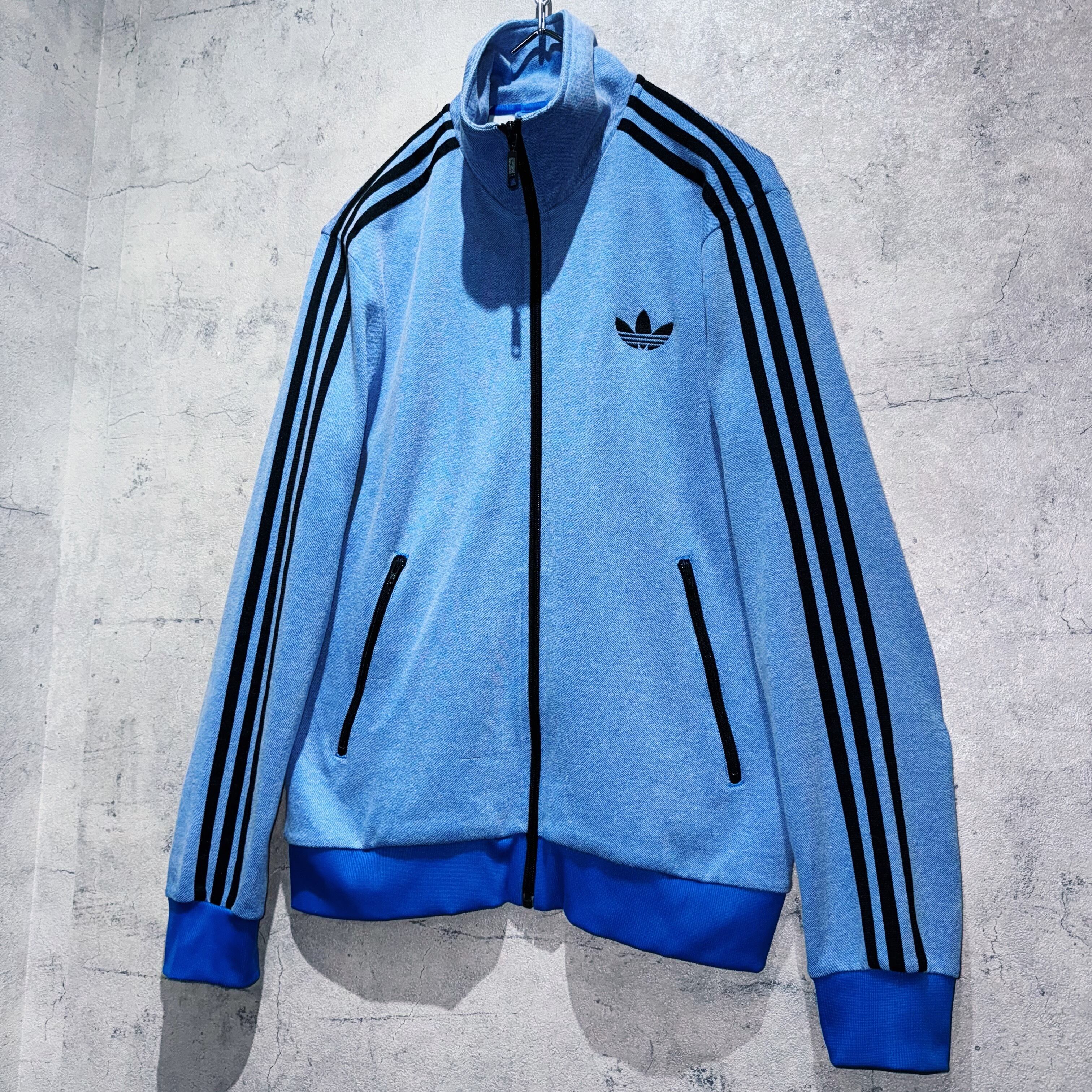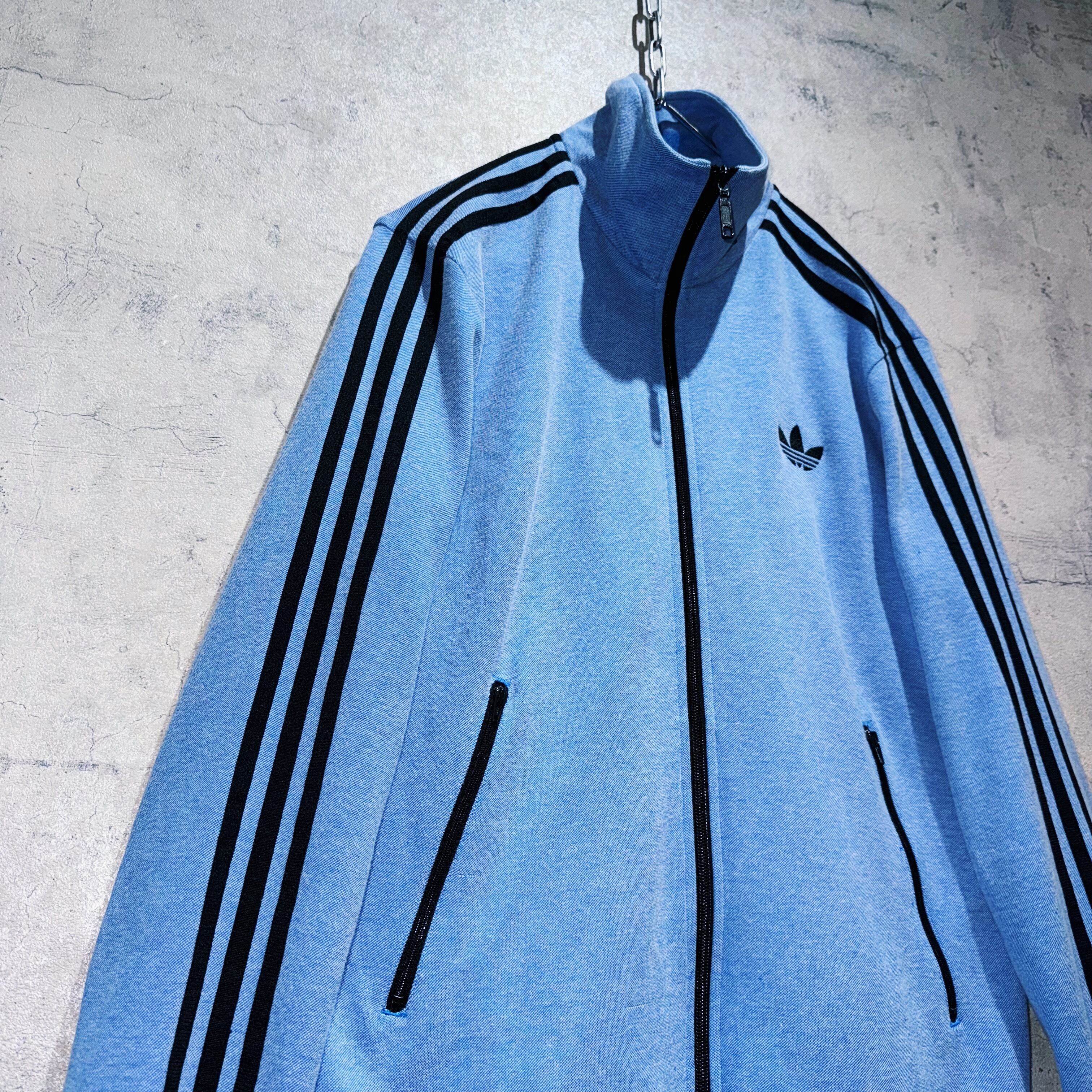 デニムのような風合いを醸し出す洗練されたブルーを身に纏ったトラックジャケット。そんなボディに”ADIDAS”の代名詞でもある3ストライプスとトレフォイルロゴを施した存在感のある一着。