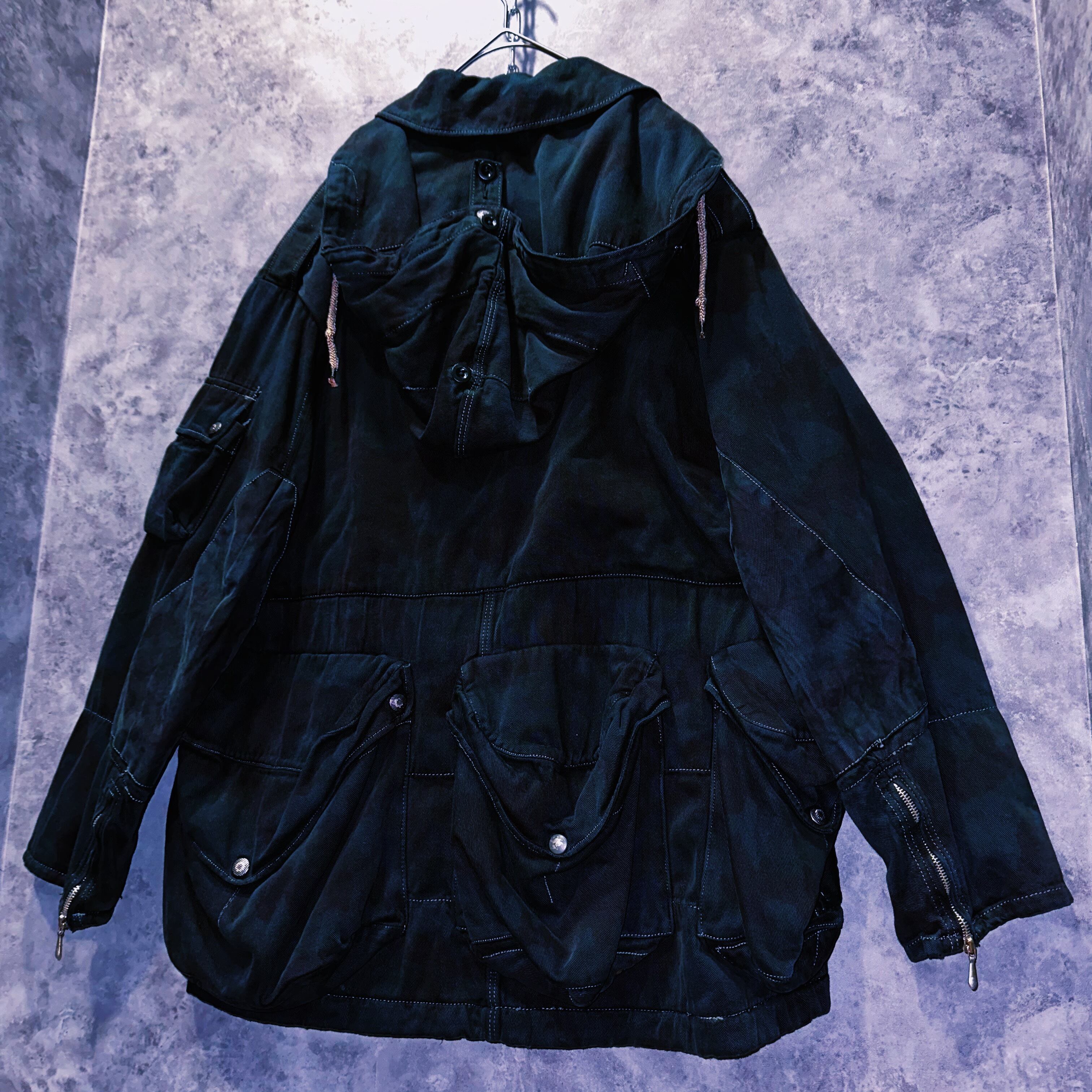 至るところにデザインされた9つもの立体的なポケットに、フードと襟を両方デザインした特徴的な襟元のデザイン。比翼仕立てのフロントデザインに、両肩のエポーレット等、様々なギミックが搭載された最高にスペシャルな一着。