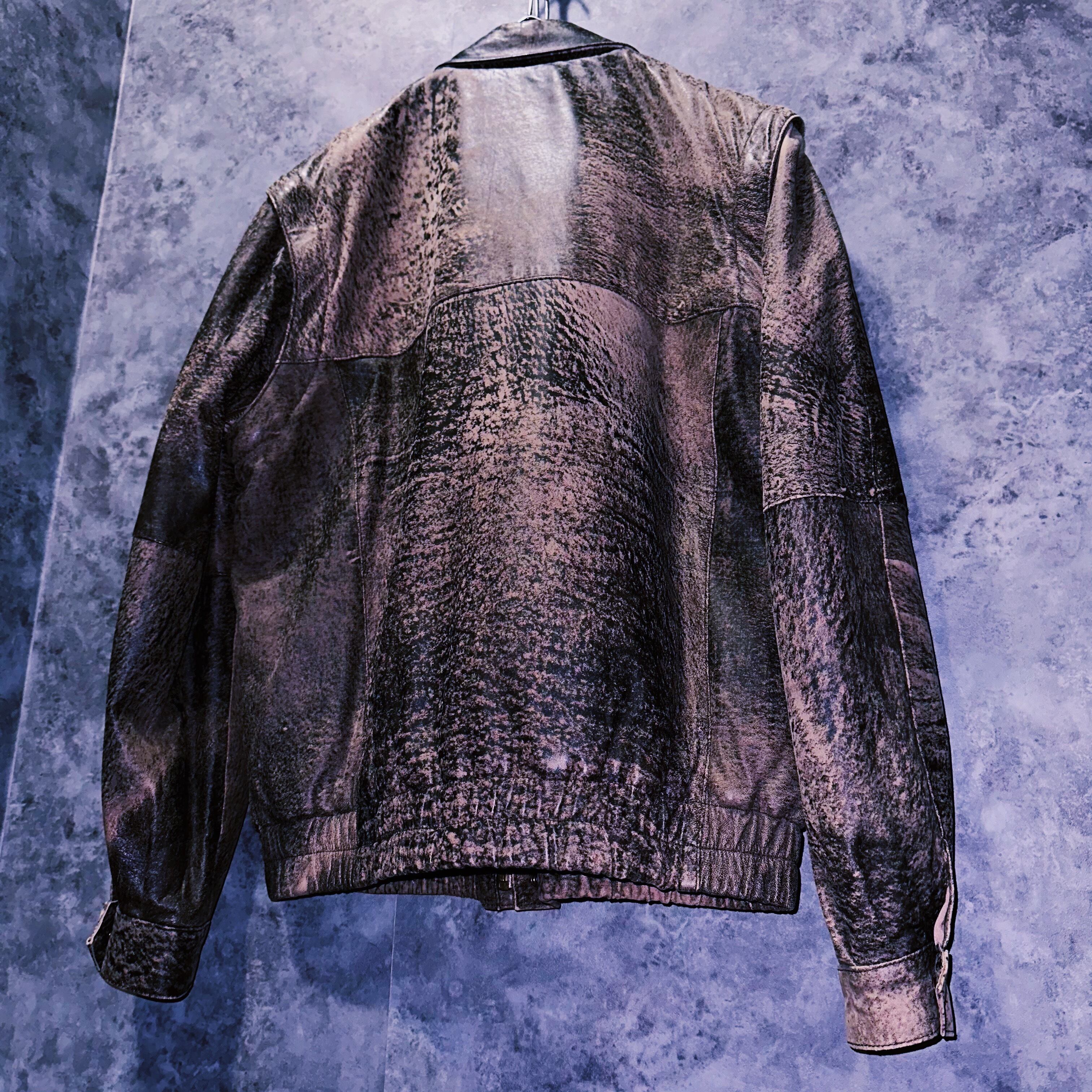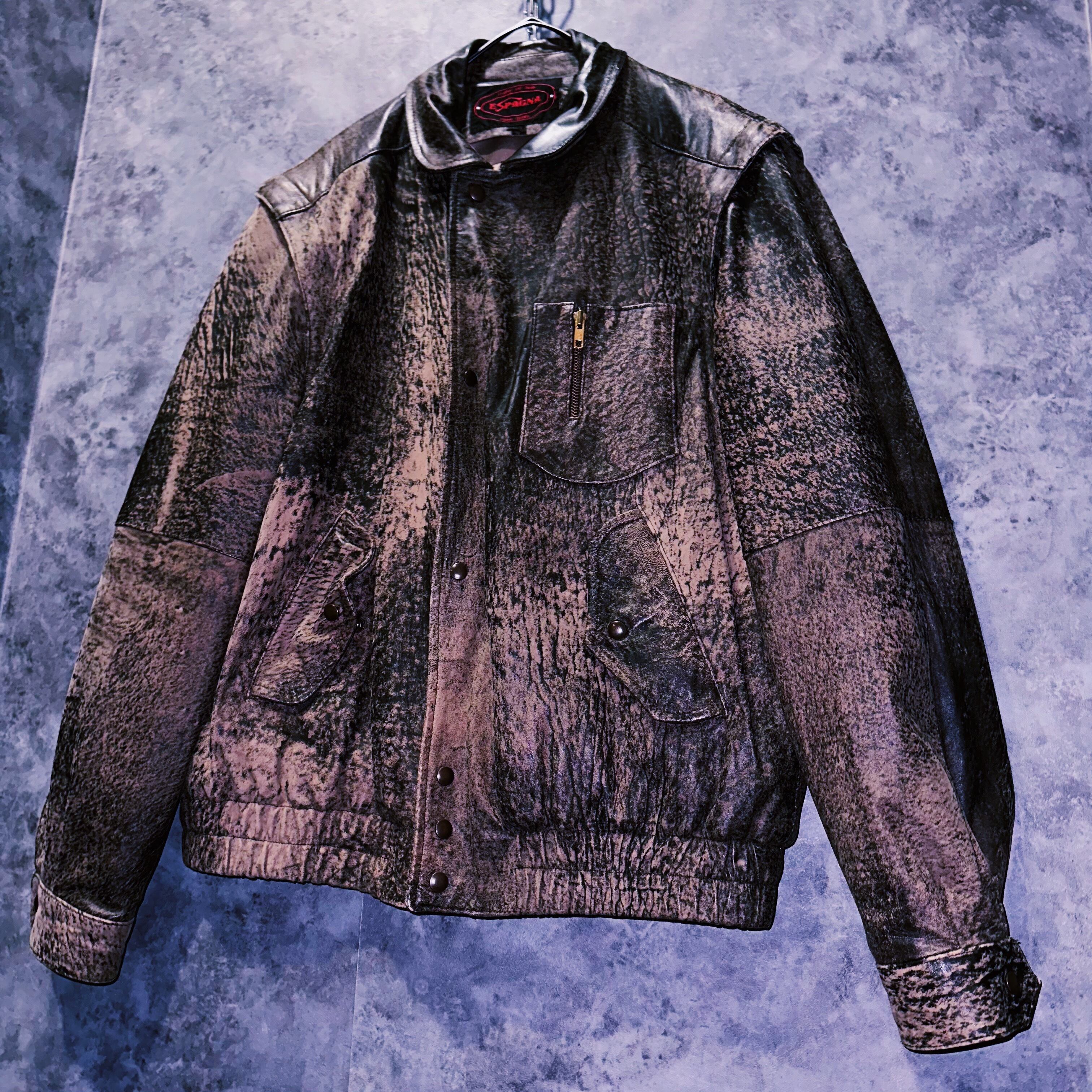 【doppio】90's vintage elephant pattern ZIP UP arm design leather jacket