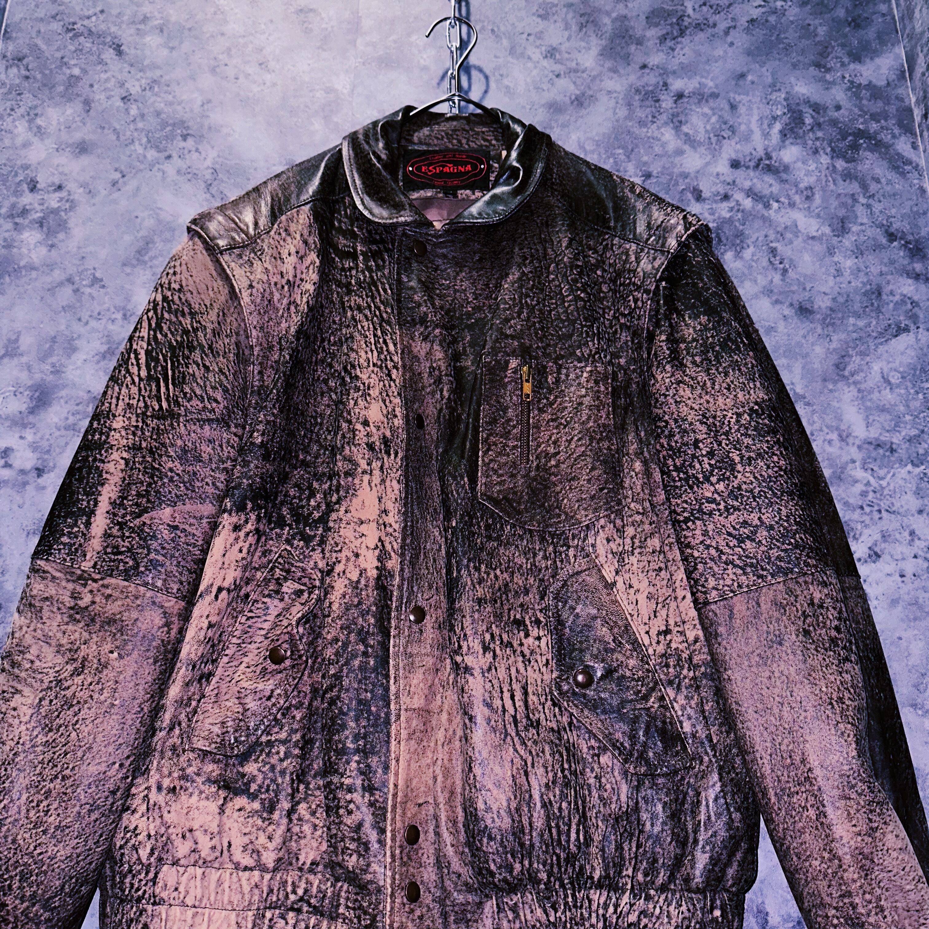 90's vintage elephant pattern ZIP UP arm design leather jacket