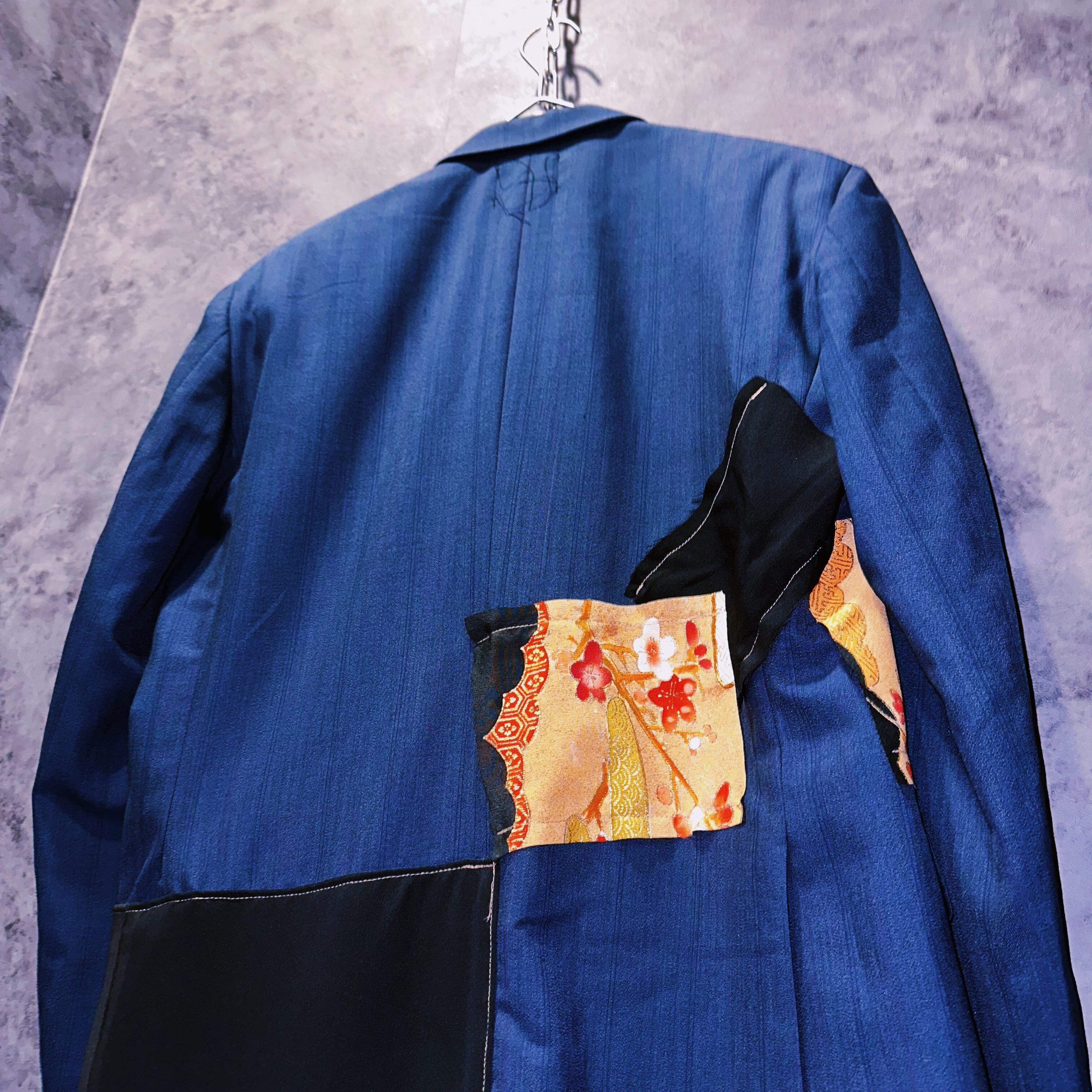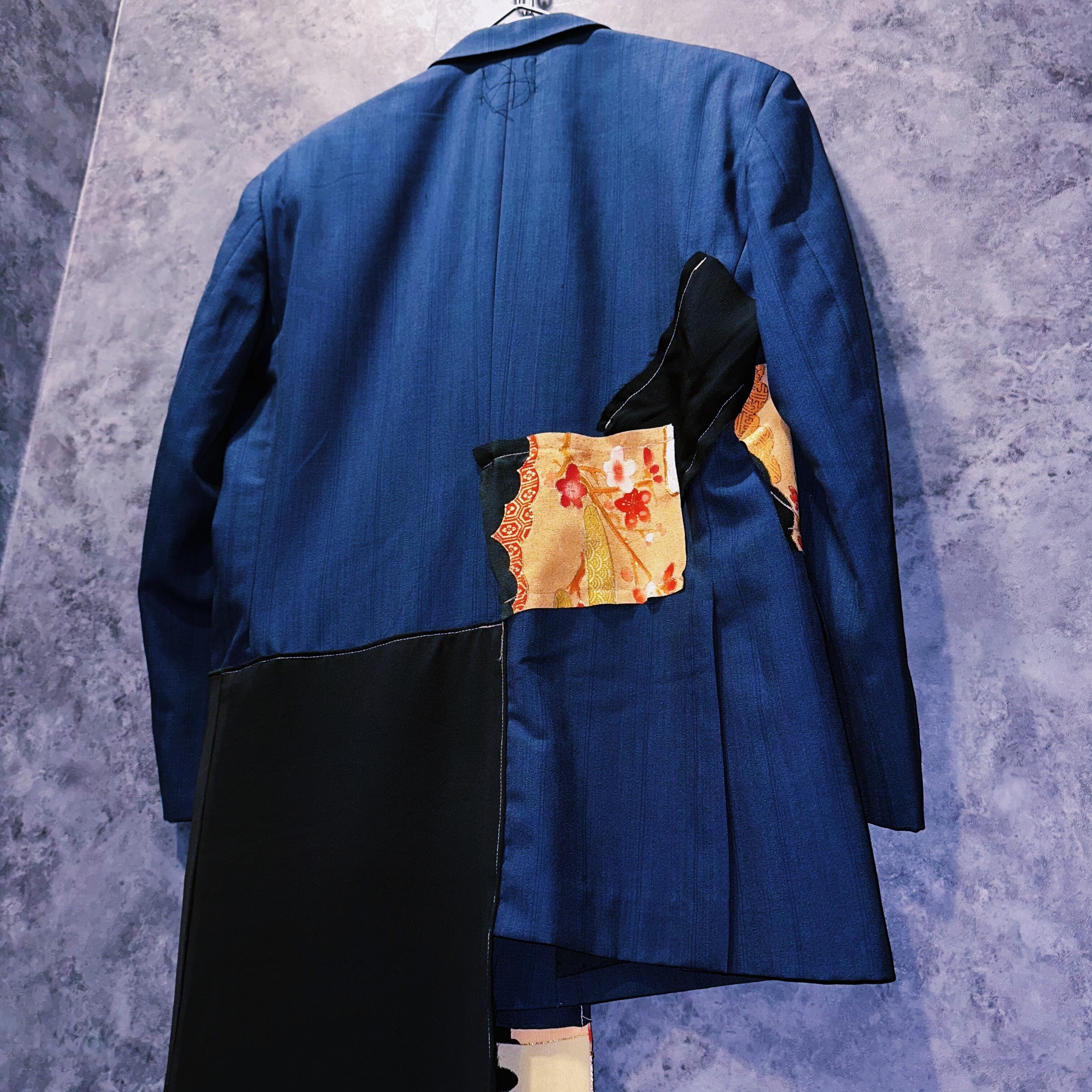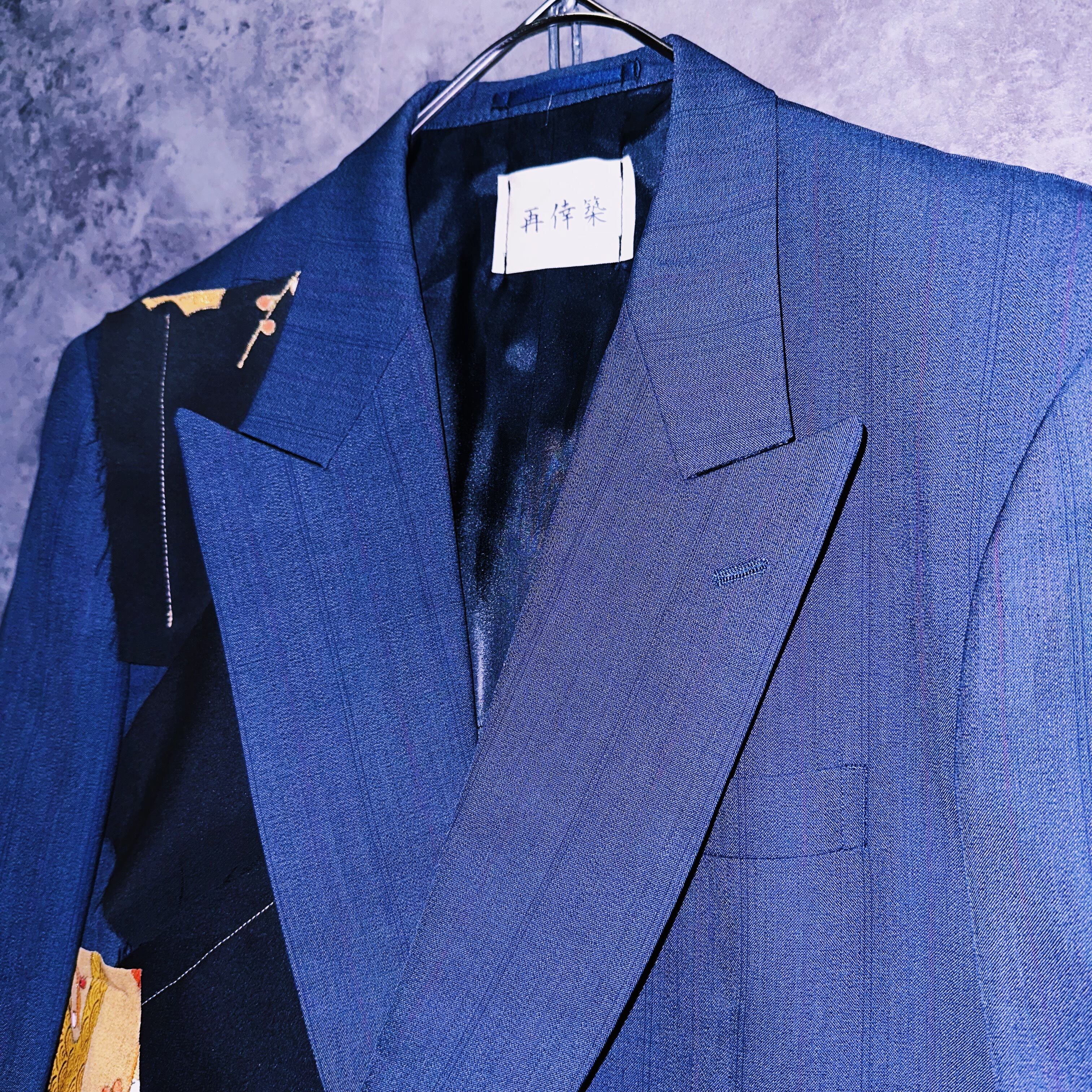 "再倖築"キモノドッキングリメイクデザインテーラードジャケット