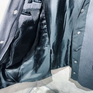 ジャケットのラペルを取り除き、そこに上質かつ品のあるリブ素材でノーカラーにすることによりハイネックや襟付きのアイテムとも相性を抜群に、さらにはボタンをスタップタイプにすることでより都会観のある演出に
