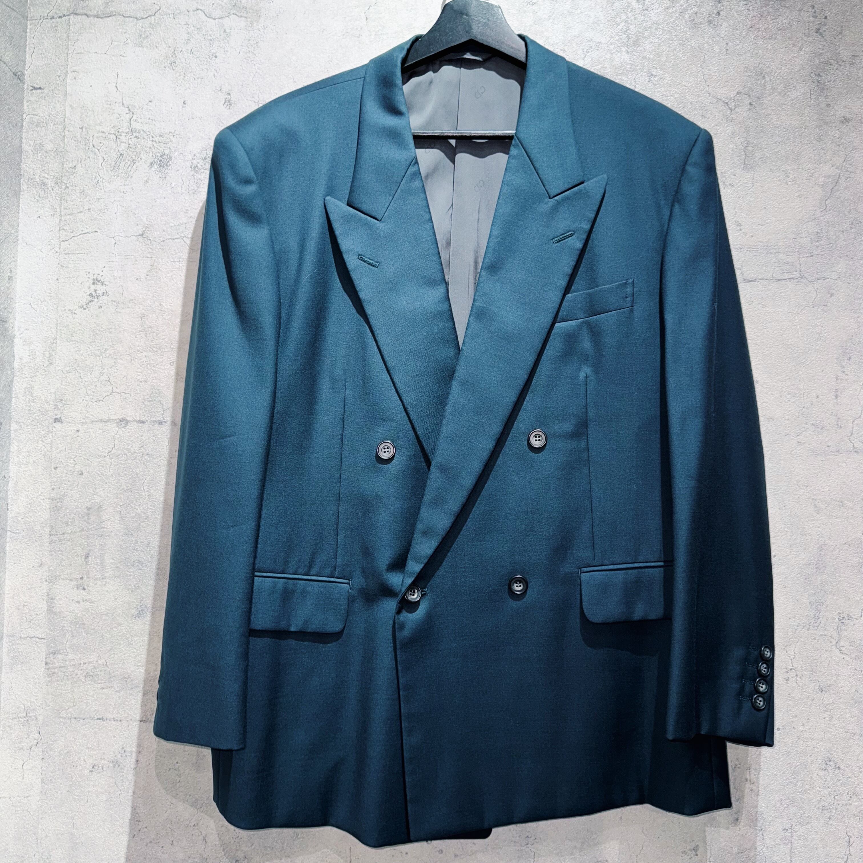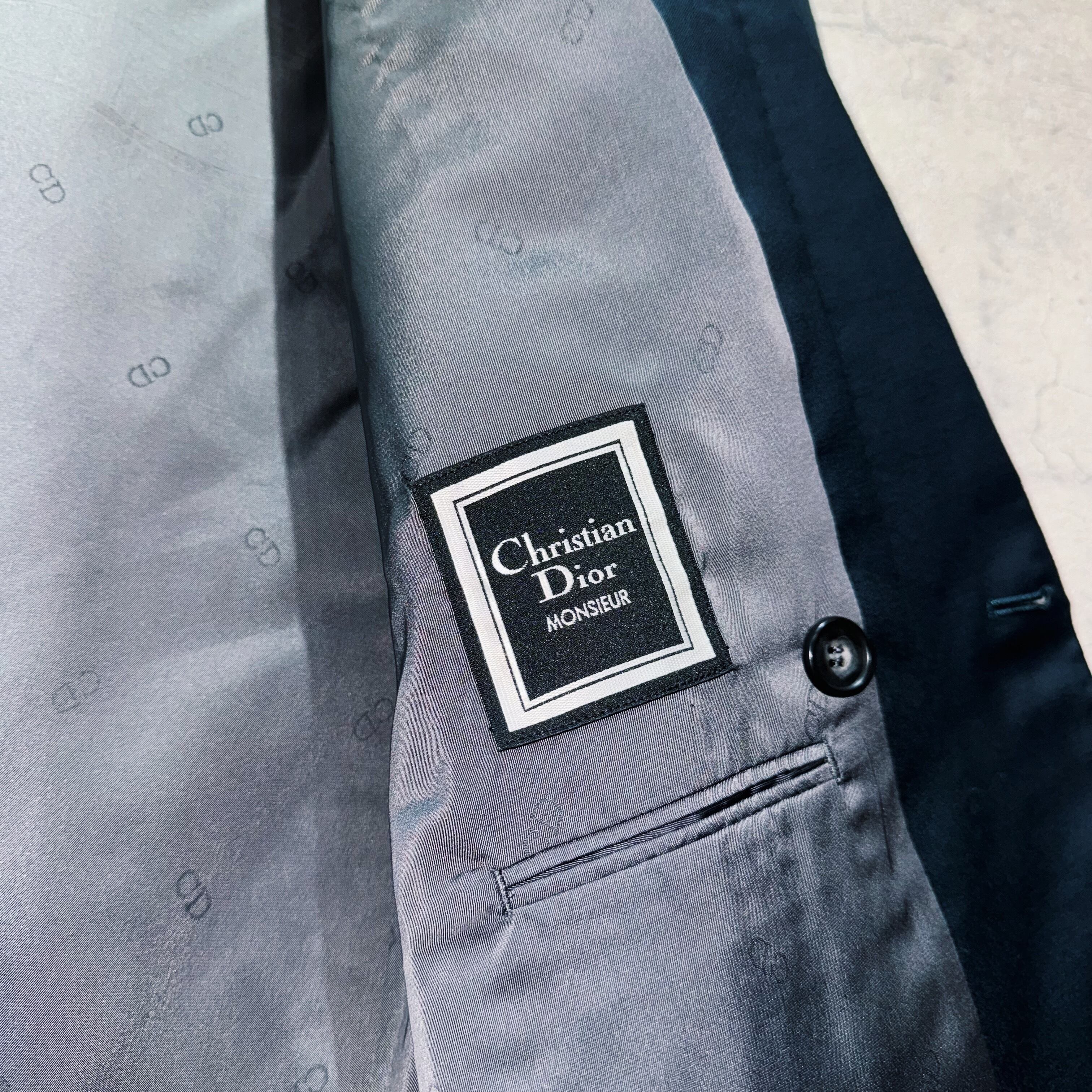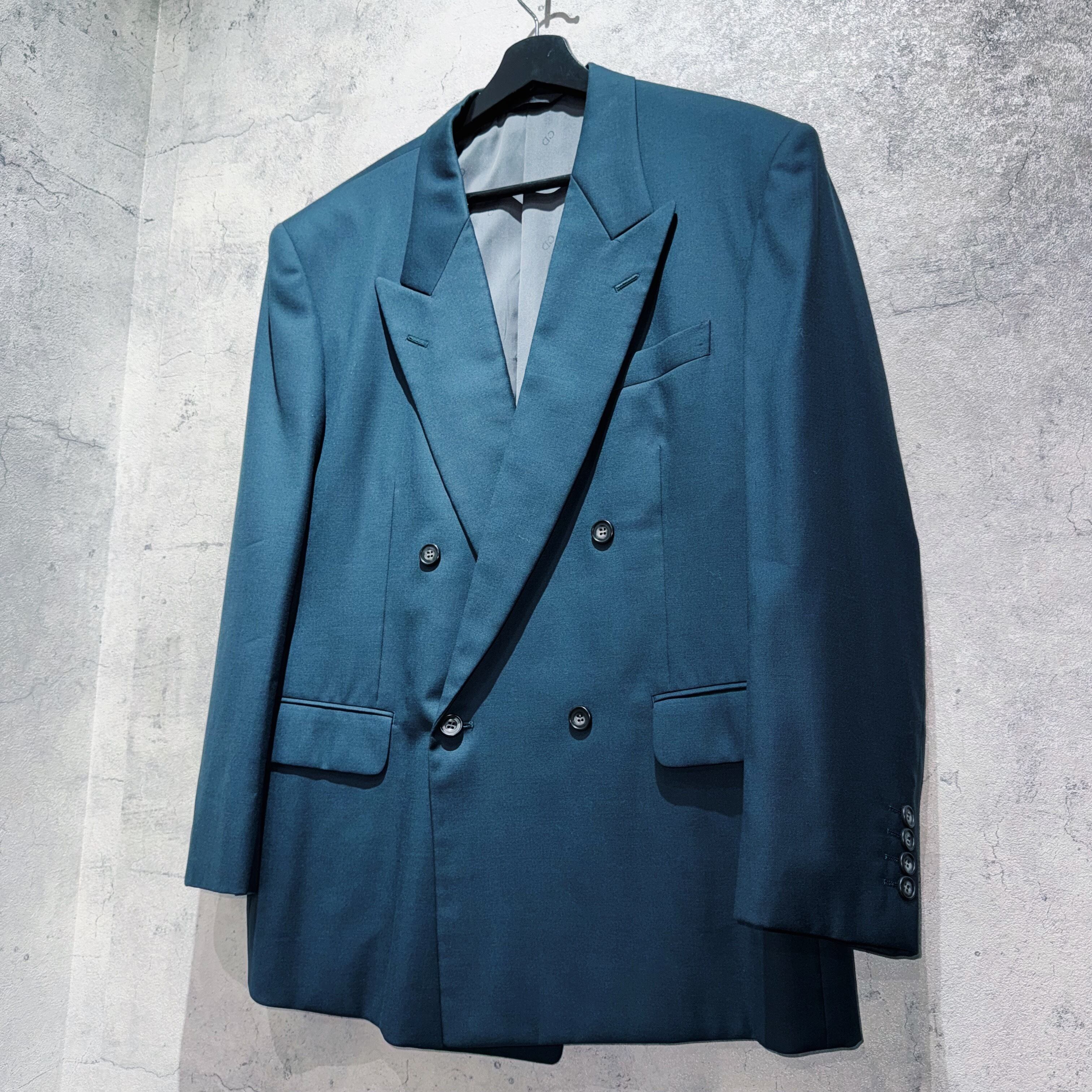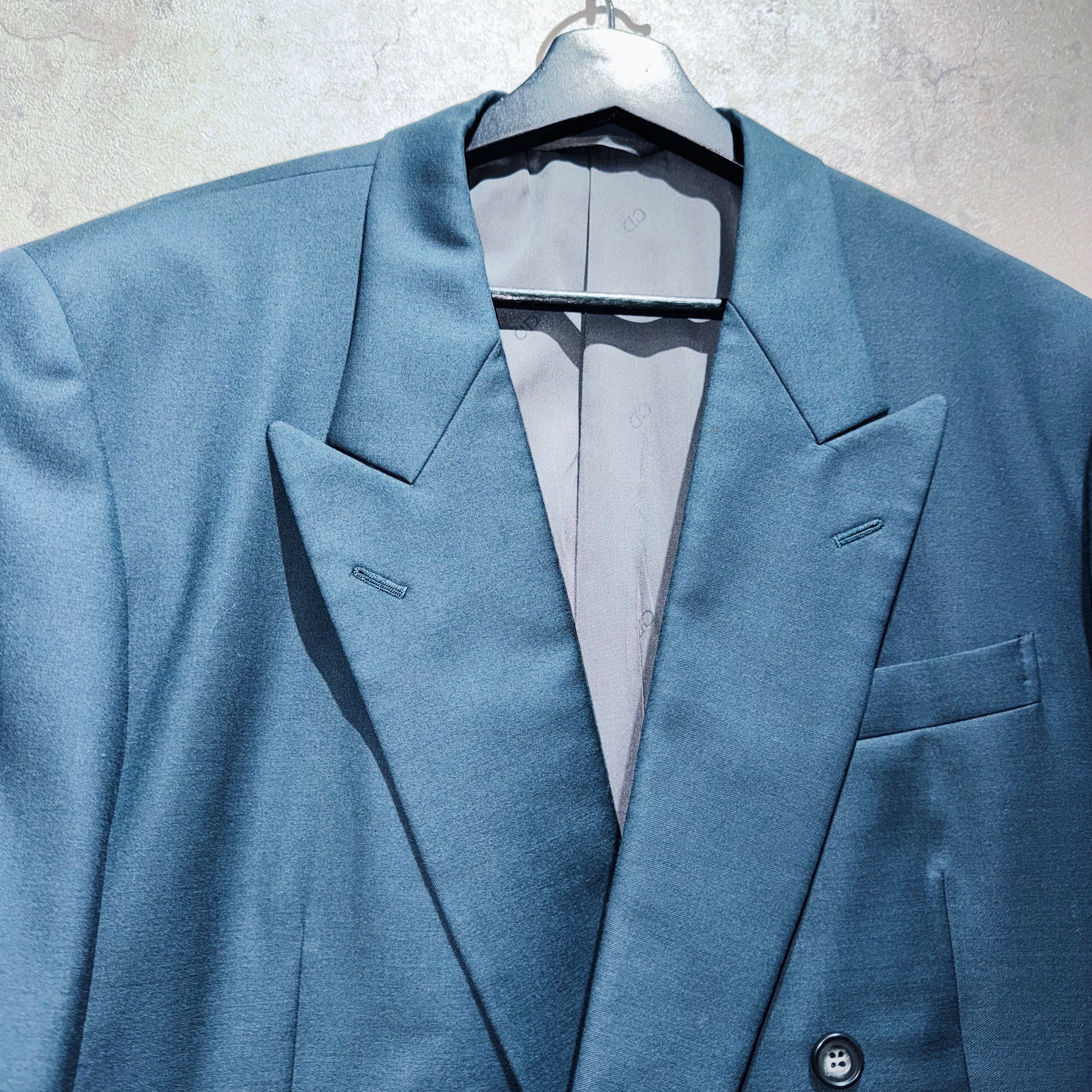 スペシャル”クリスチャンディオール”ウールギャバジンアイアンブルーカラーダブルブレストセットアップ
