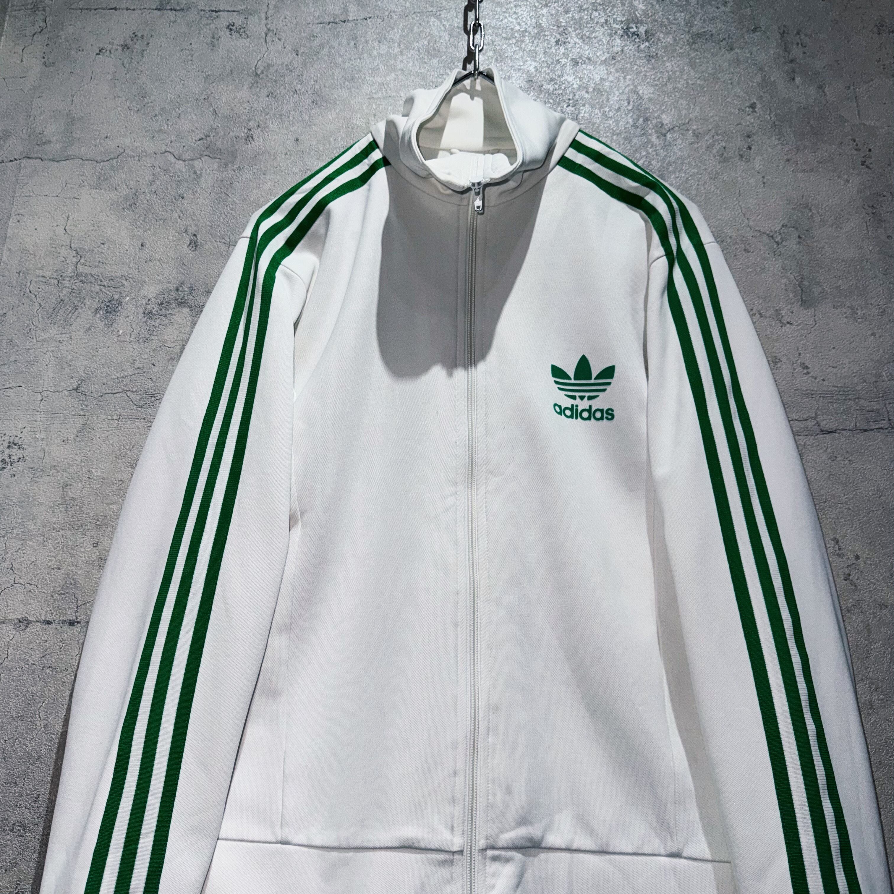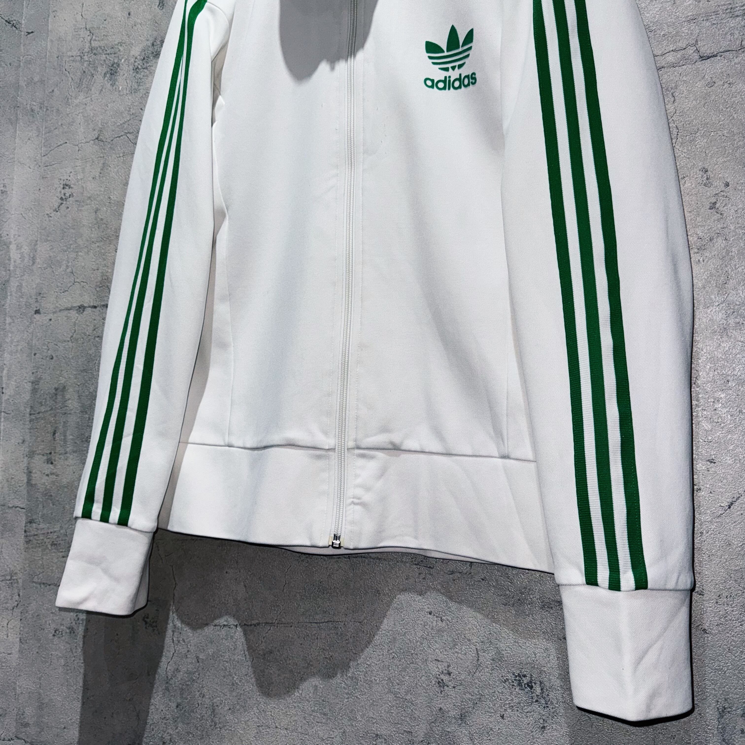 ”アディダスオリジナルス”ホワイト×グリーンカラースタンドネックトラックジャケット