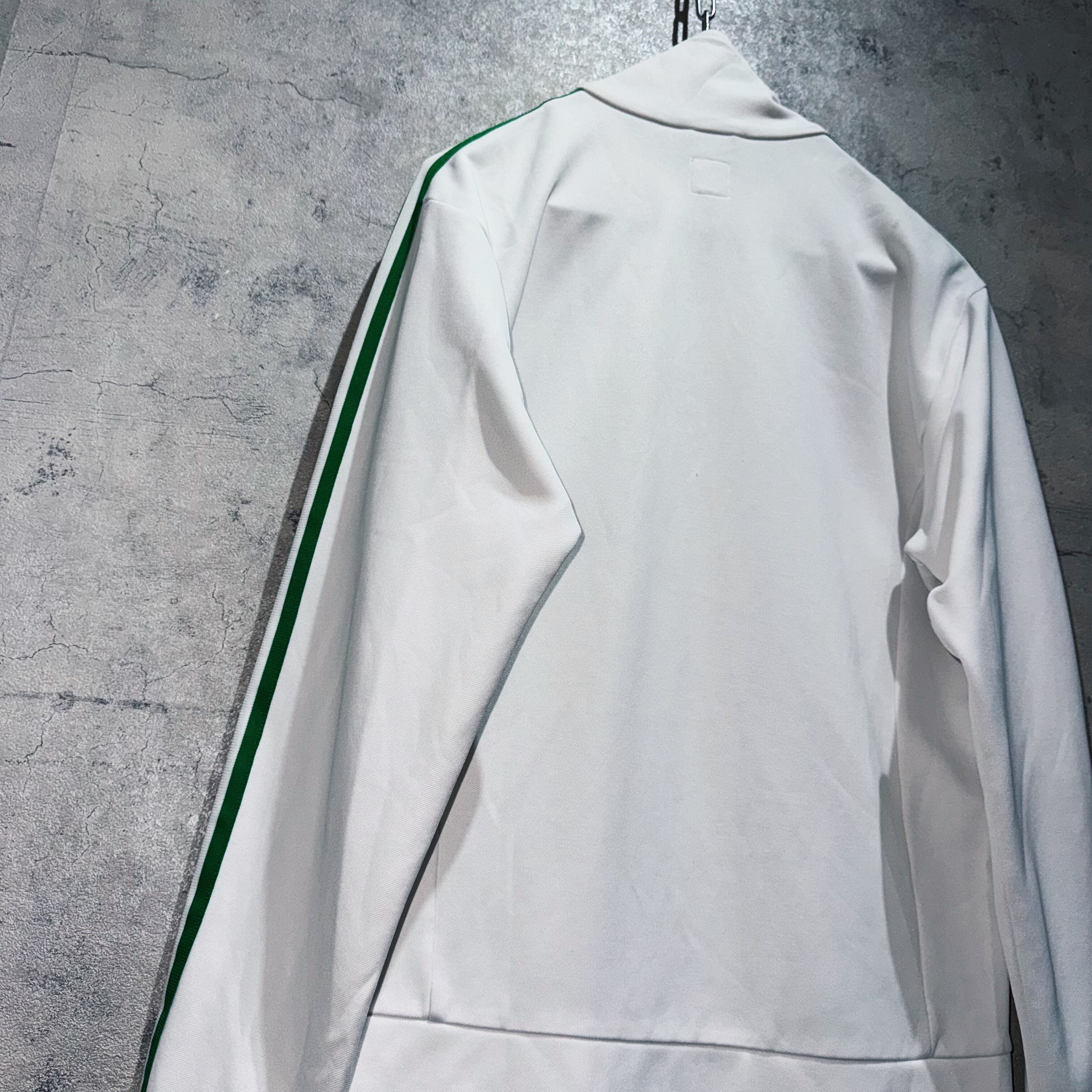 ホワイトのボディに”ADIDAS”の代名詞である3ストライプスやトレフォイルロゴがグリーンカラーに切り替わったトラックジャケット。このカラーリングのトラックジャケットを探している方も多いかと。近年では球数も減ってきて中々お目にかかれません…