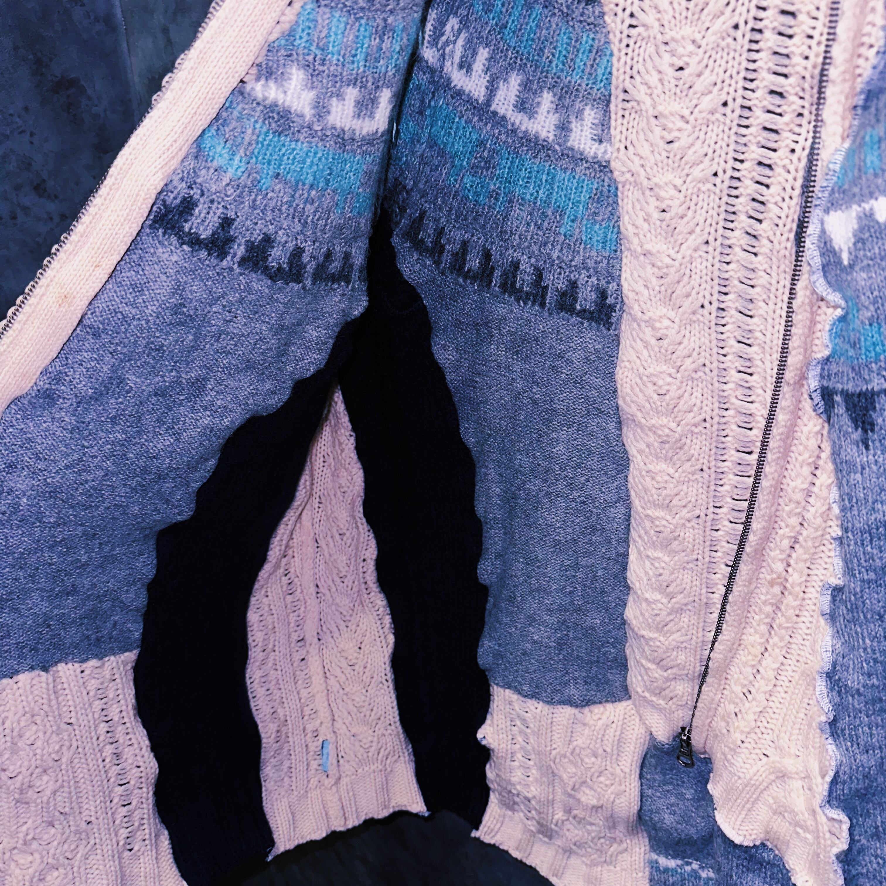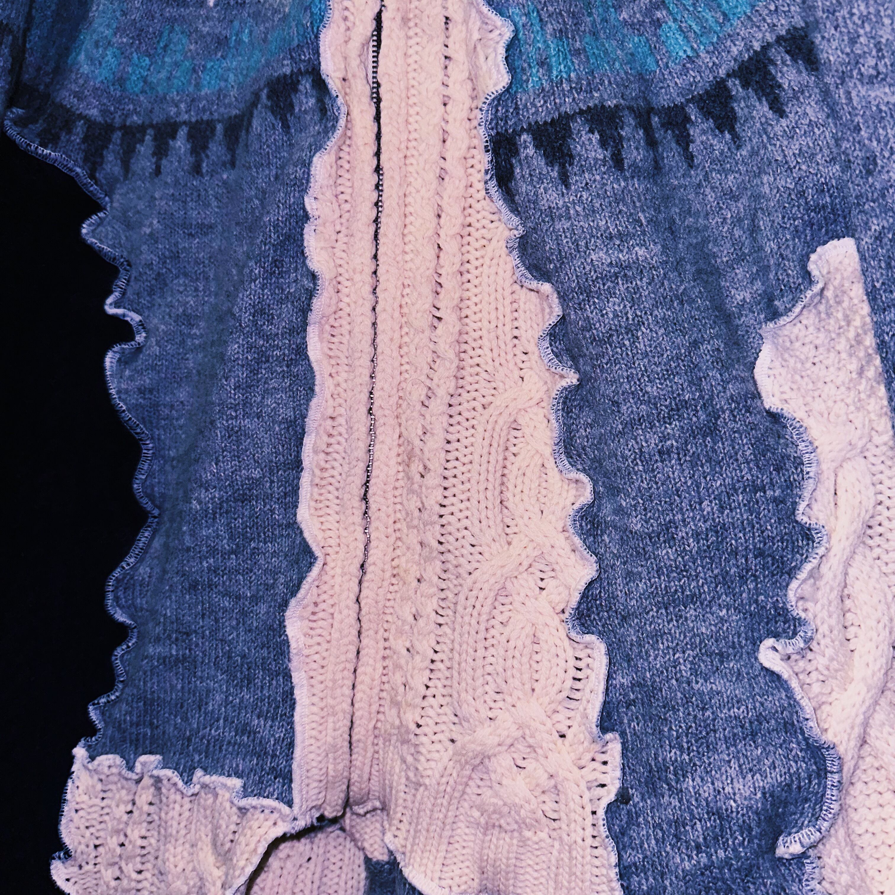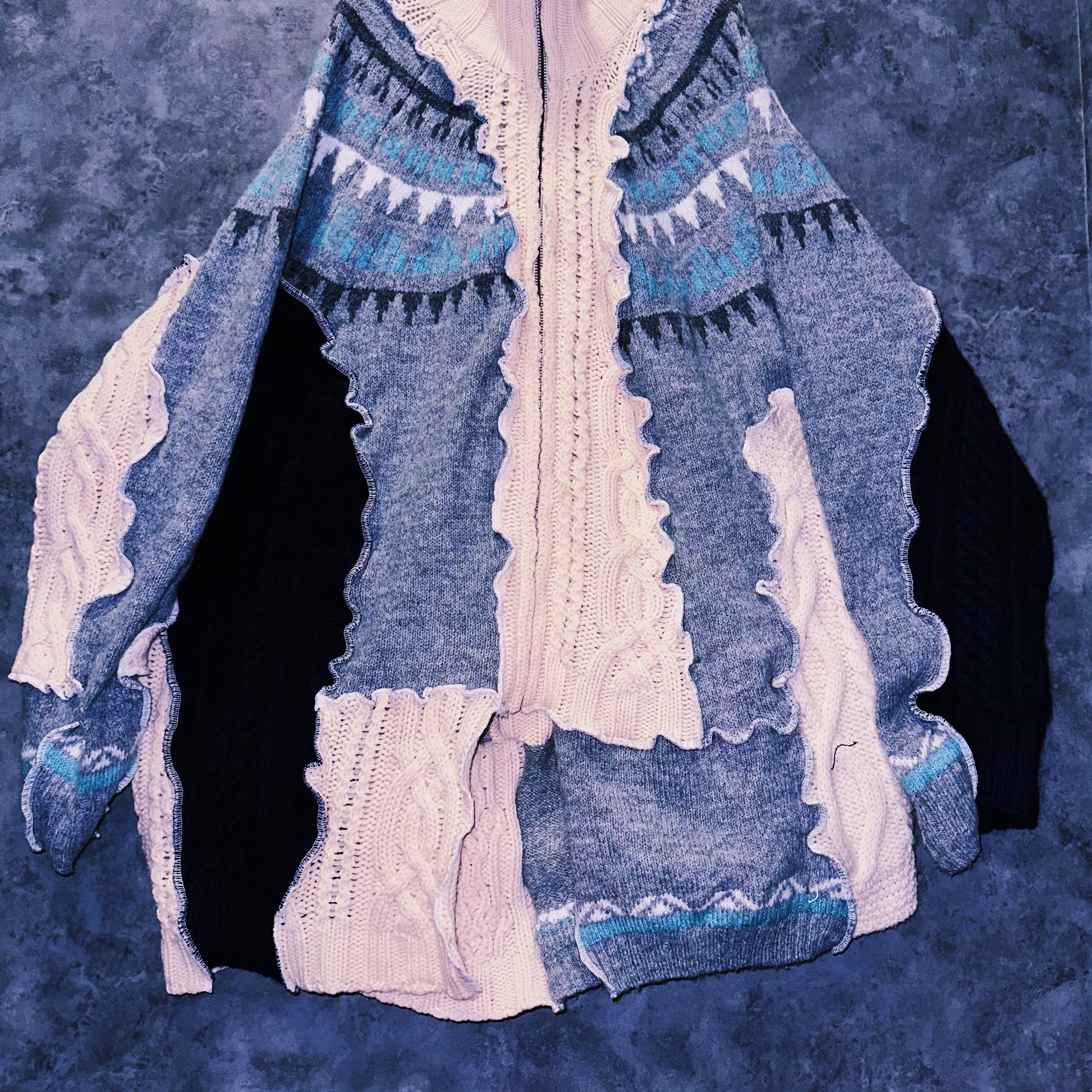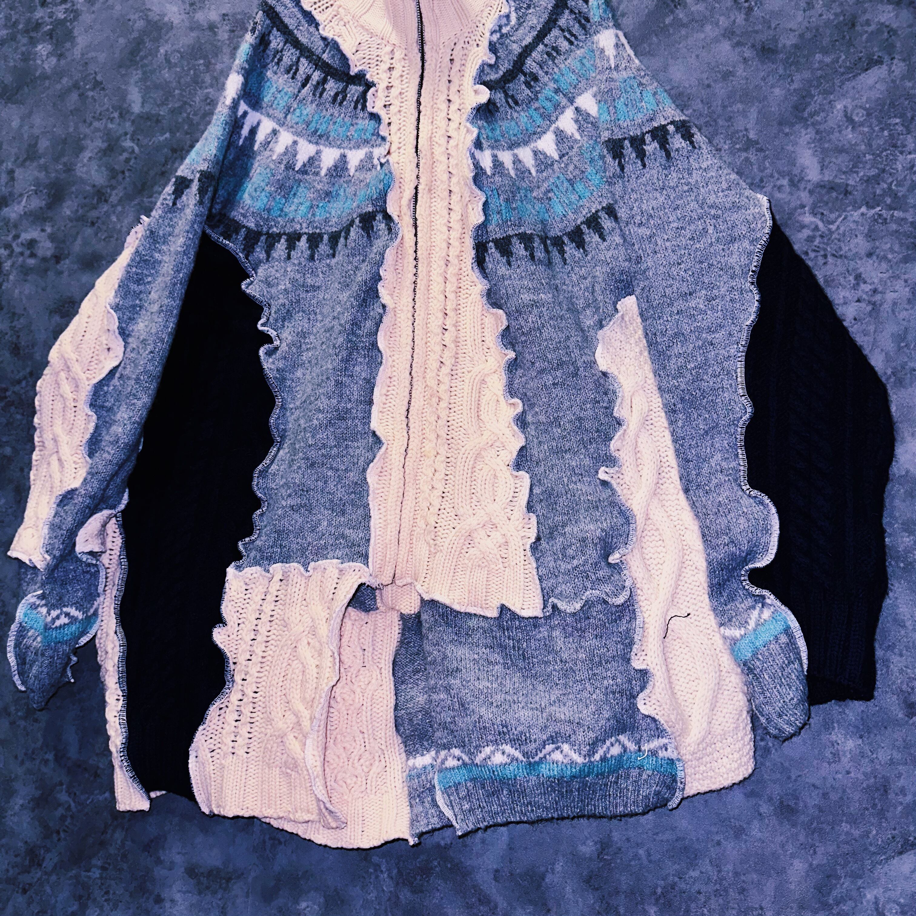 "ツギハギ"クレイジードッキングパターンリメイクケーブルドライバーズニット
