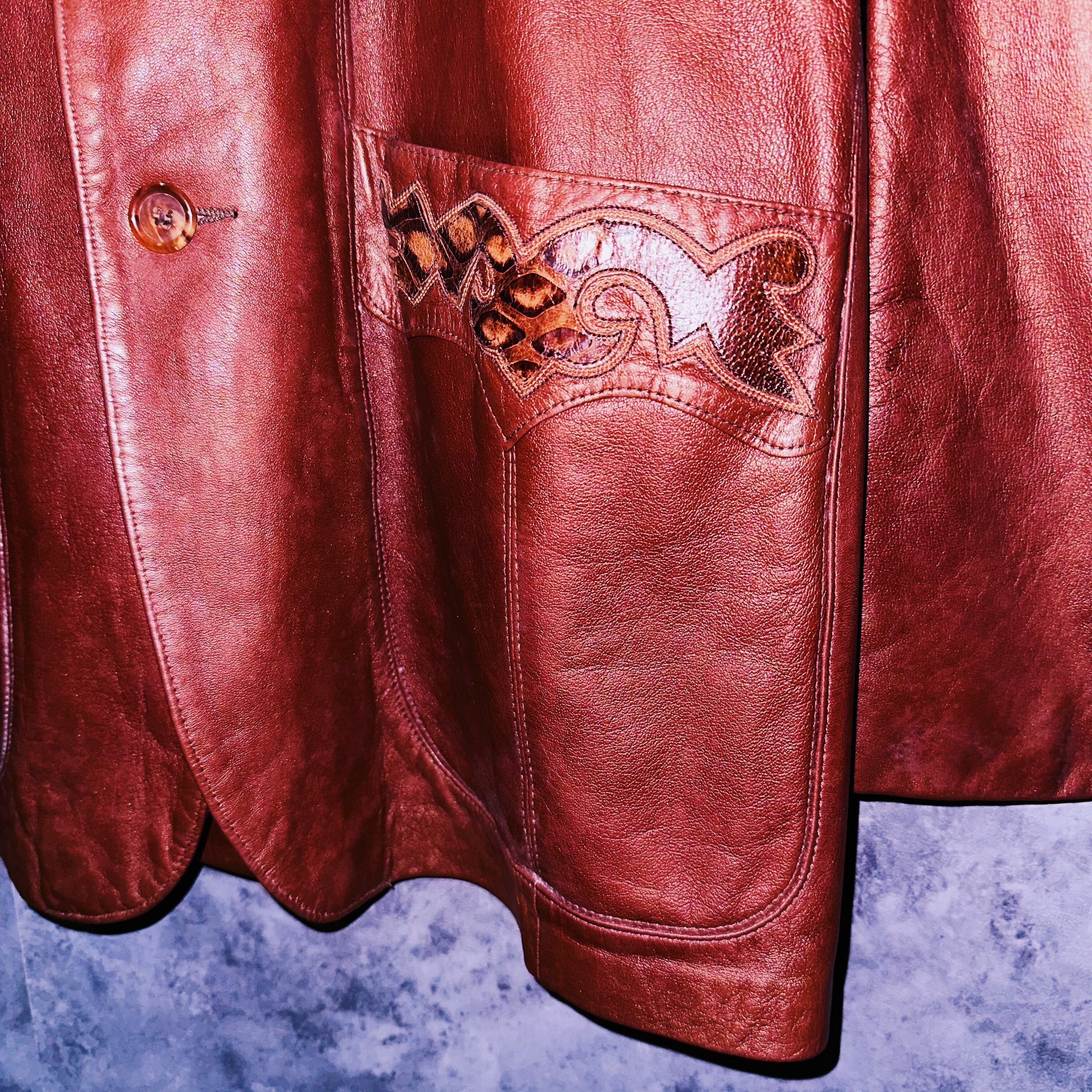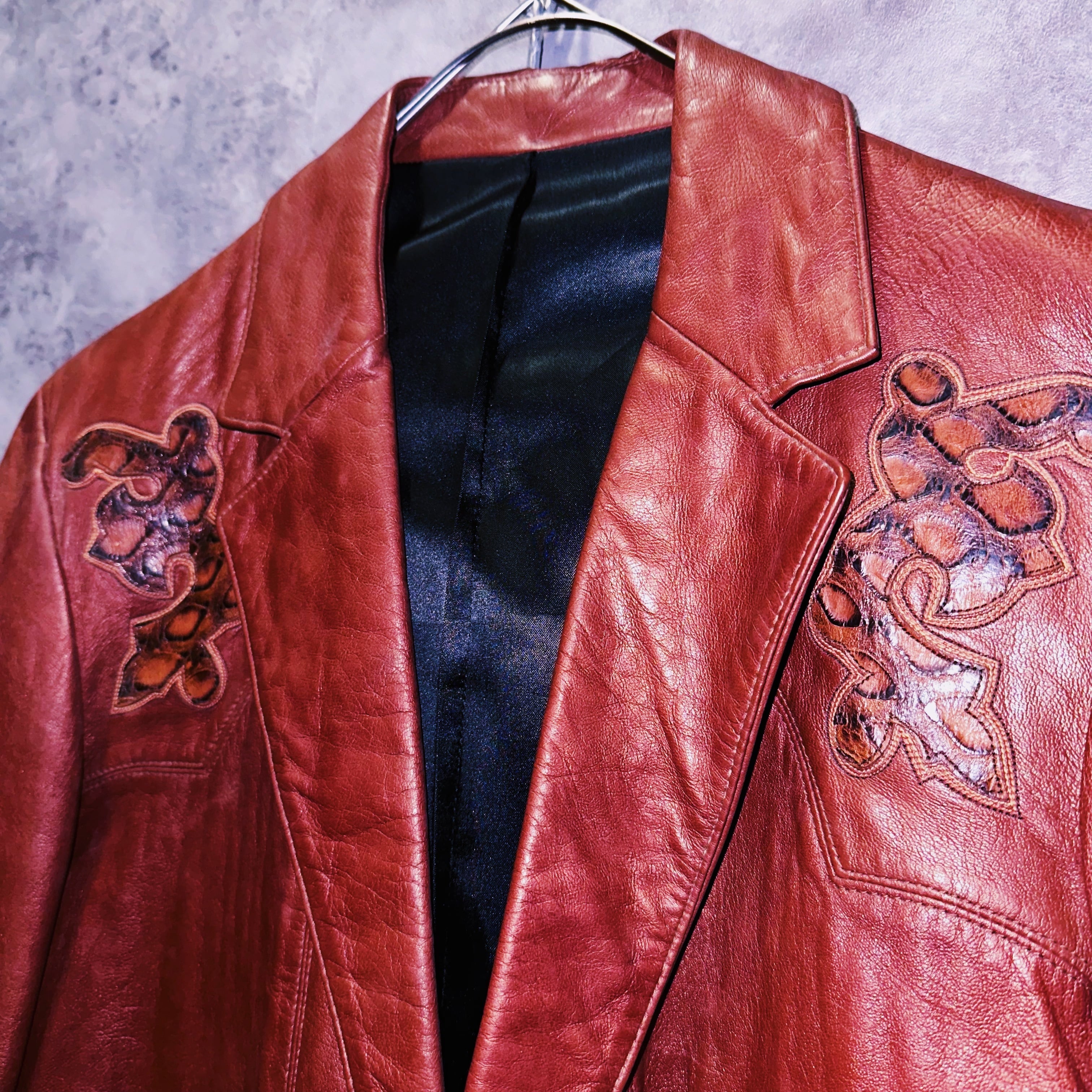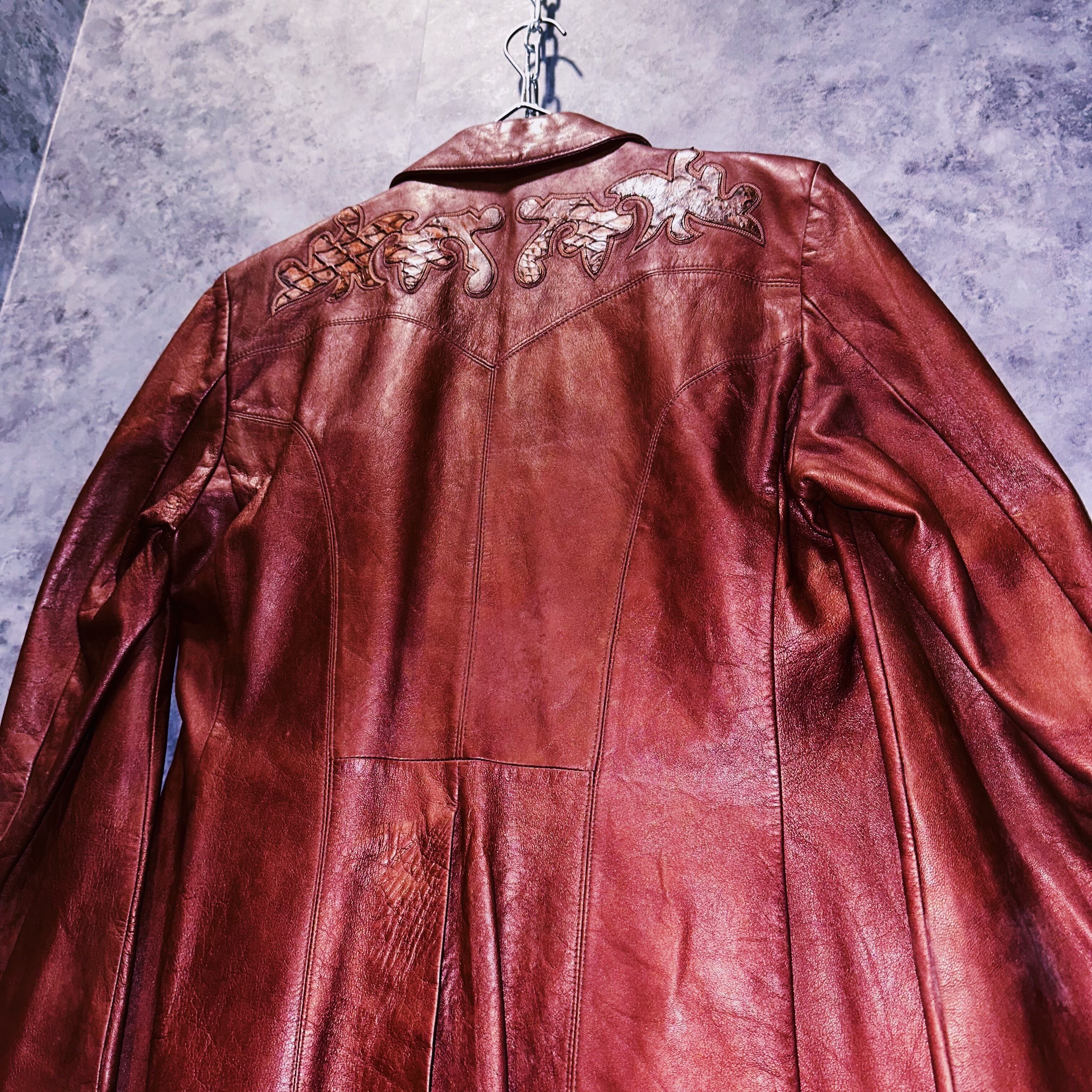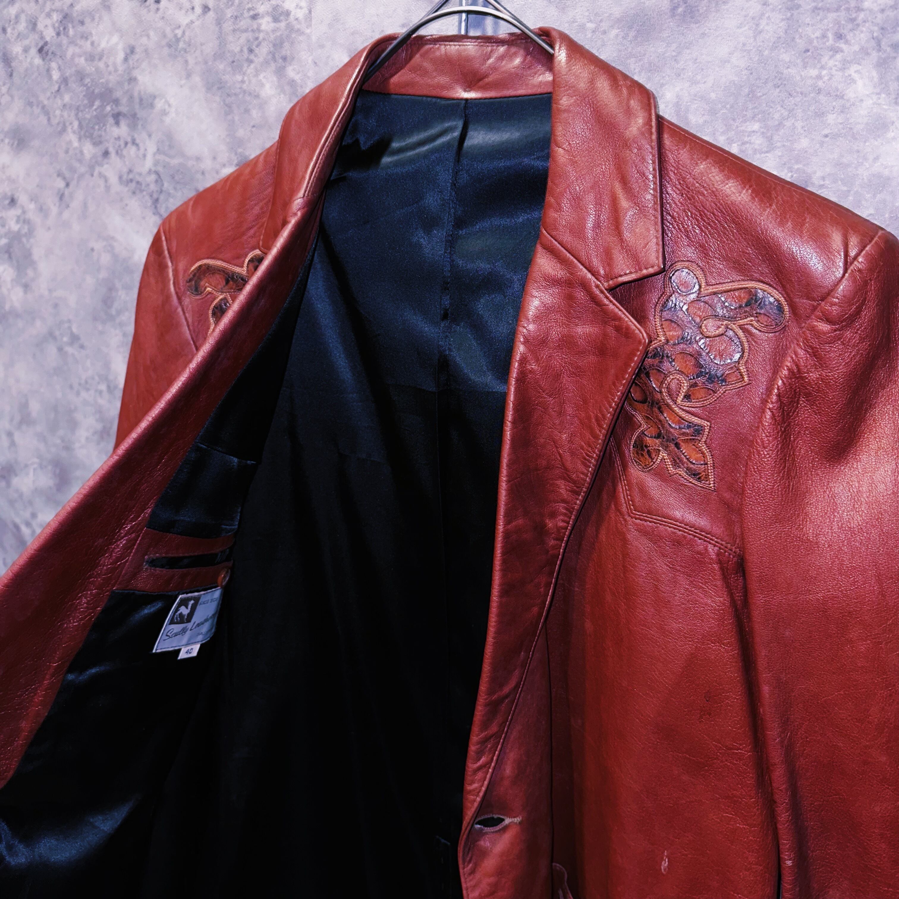 70'sヴィンテージウエスタンエンブロイダリーデザインレザーテーラードジャケット