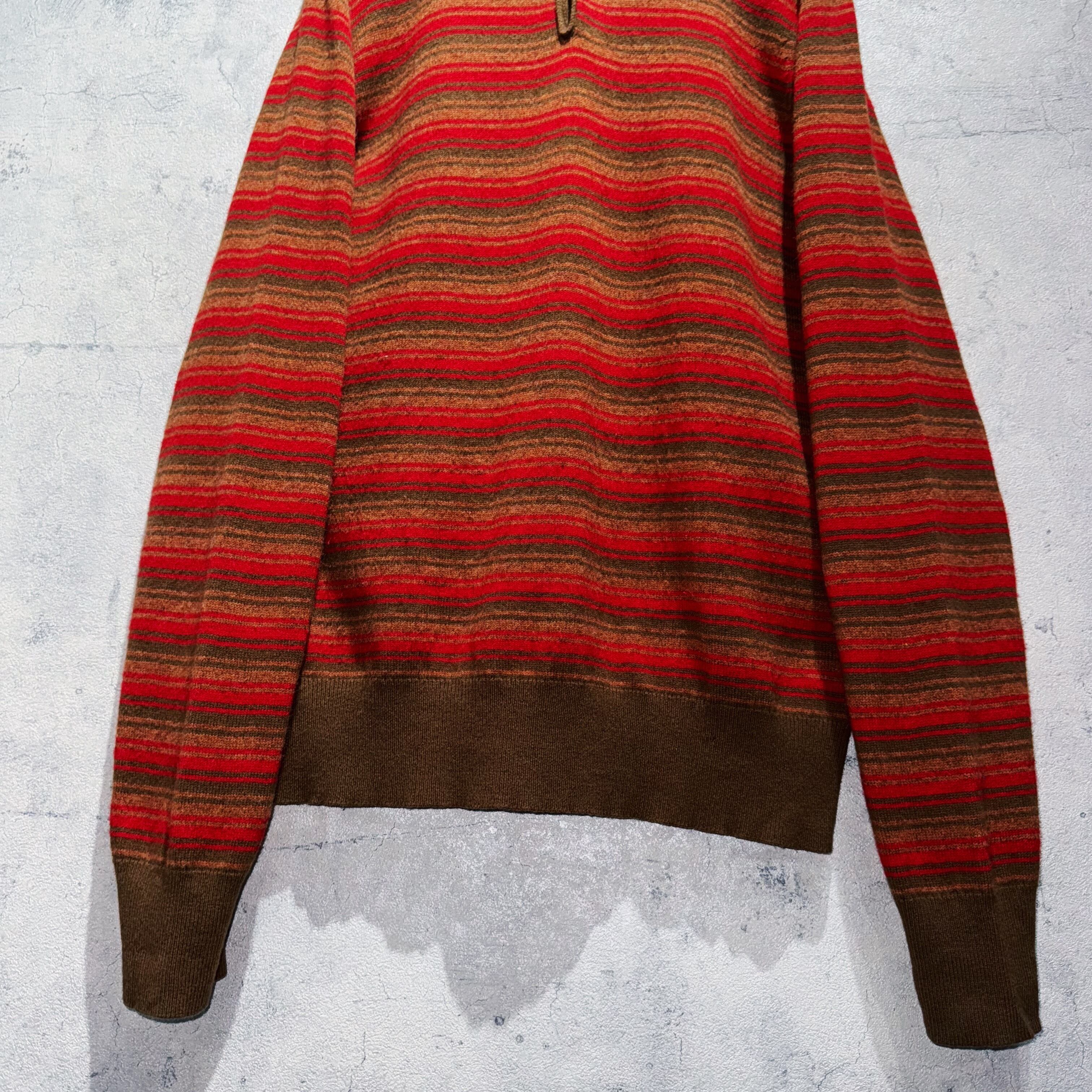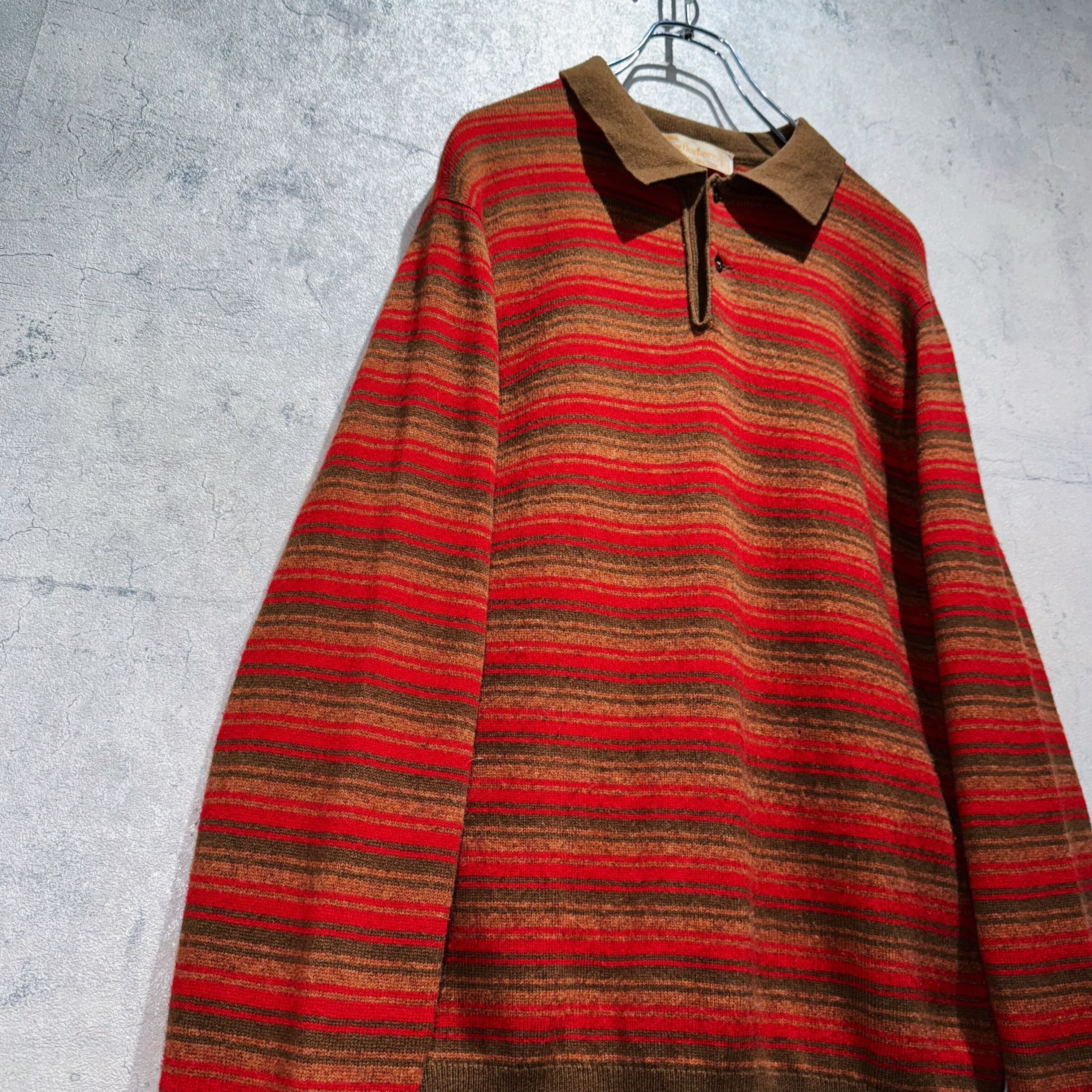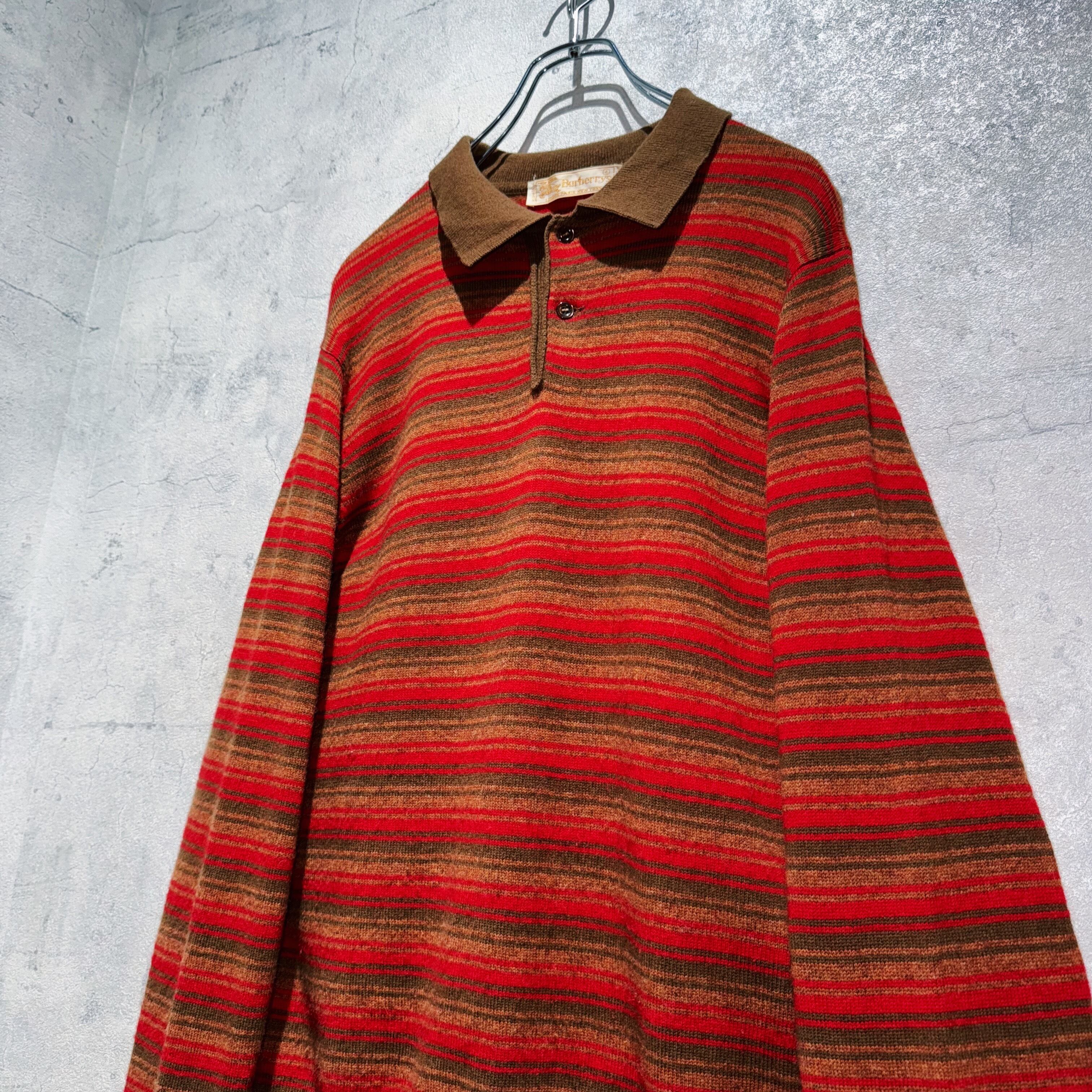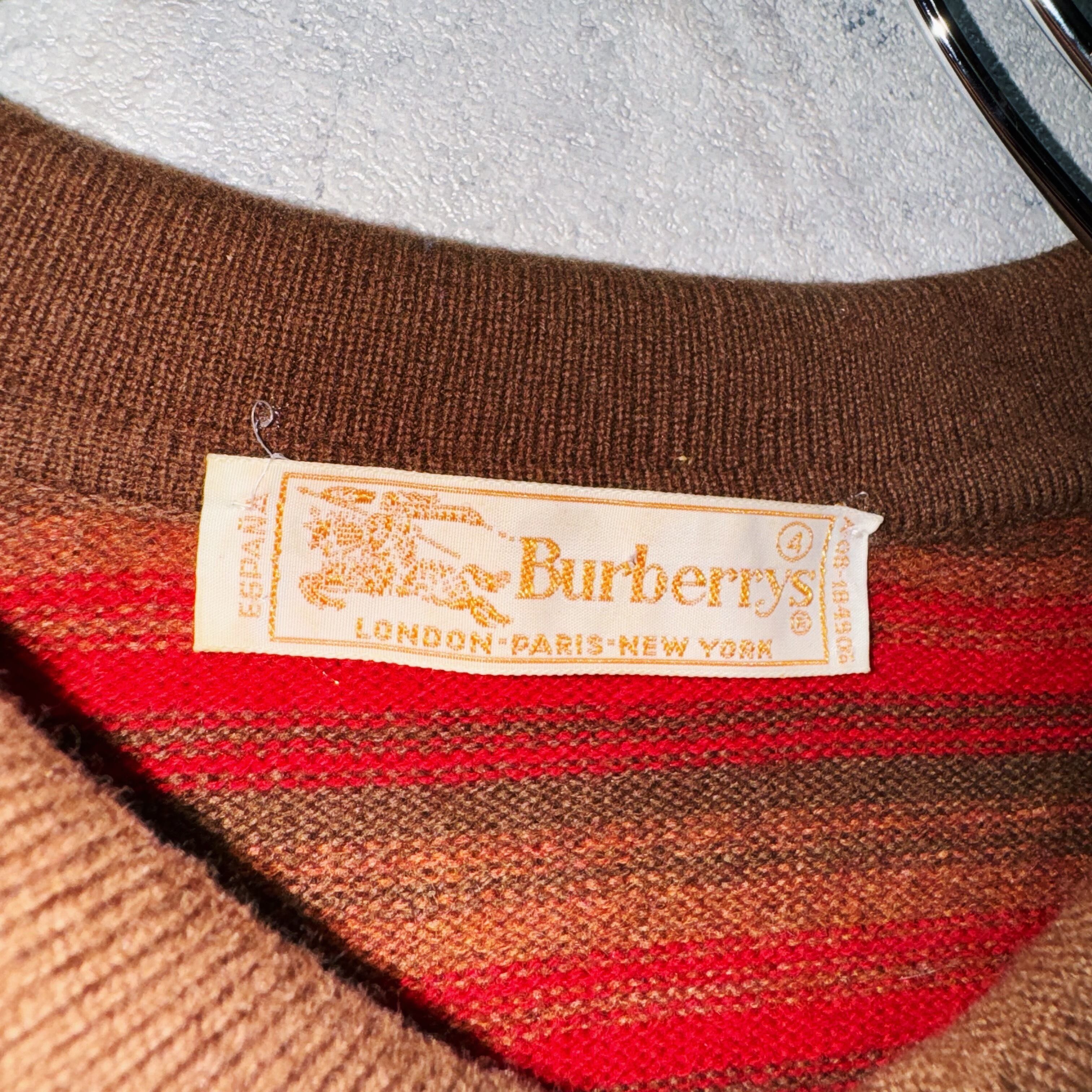 90年代”バーバリー”スイッチングカラーボーダーラインウールニットポロ