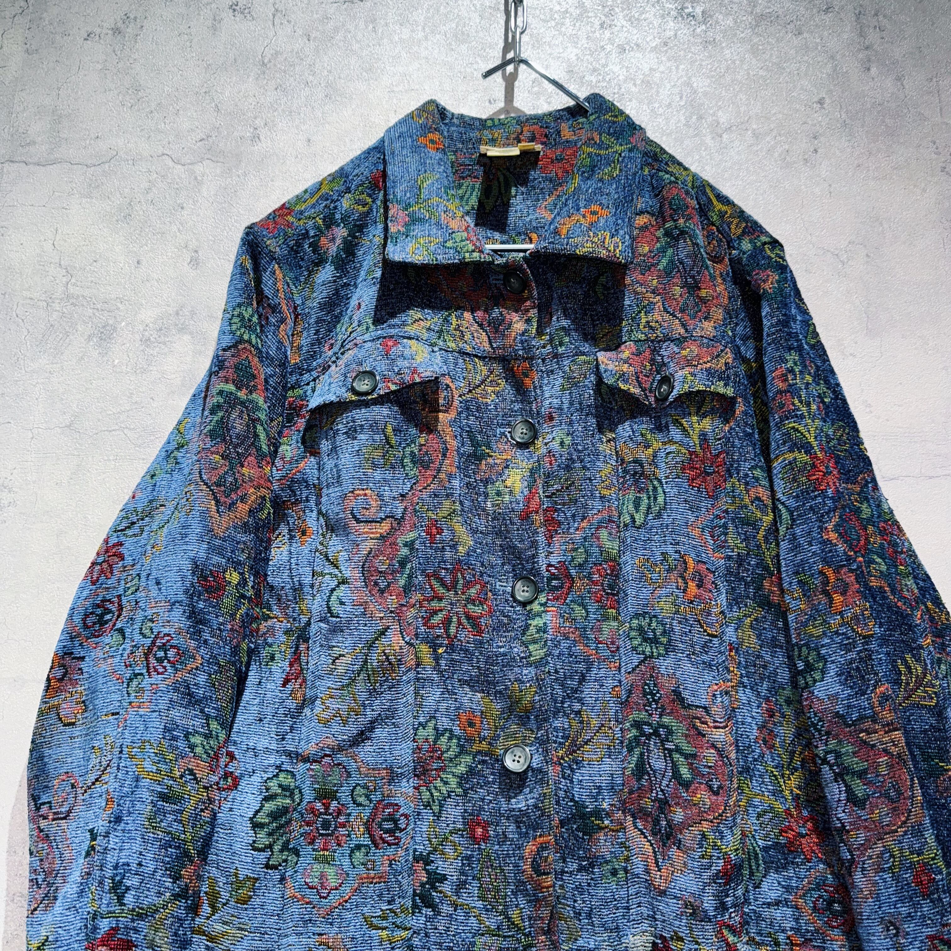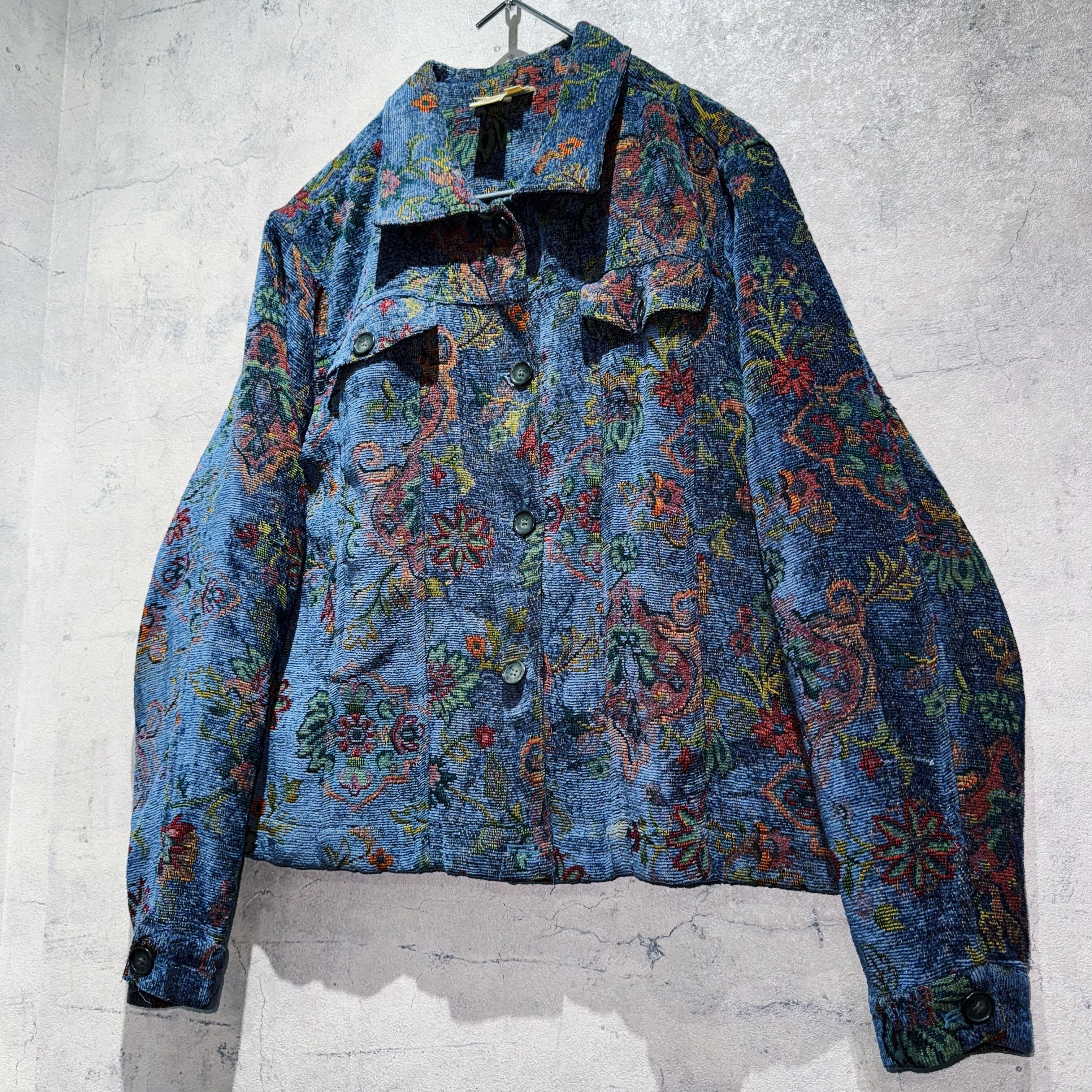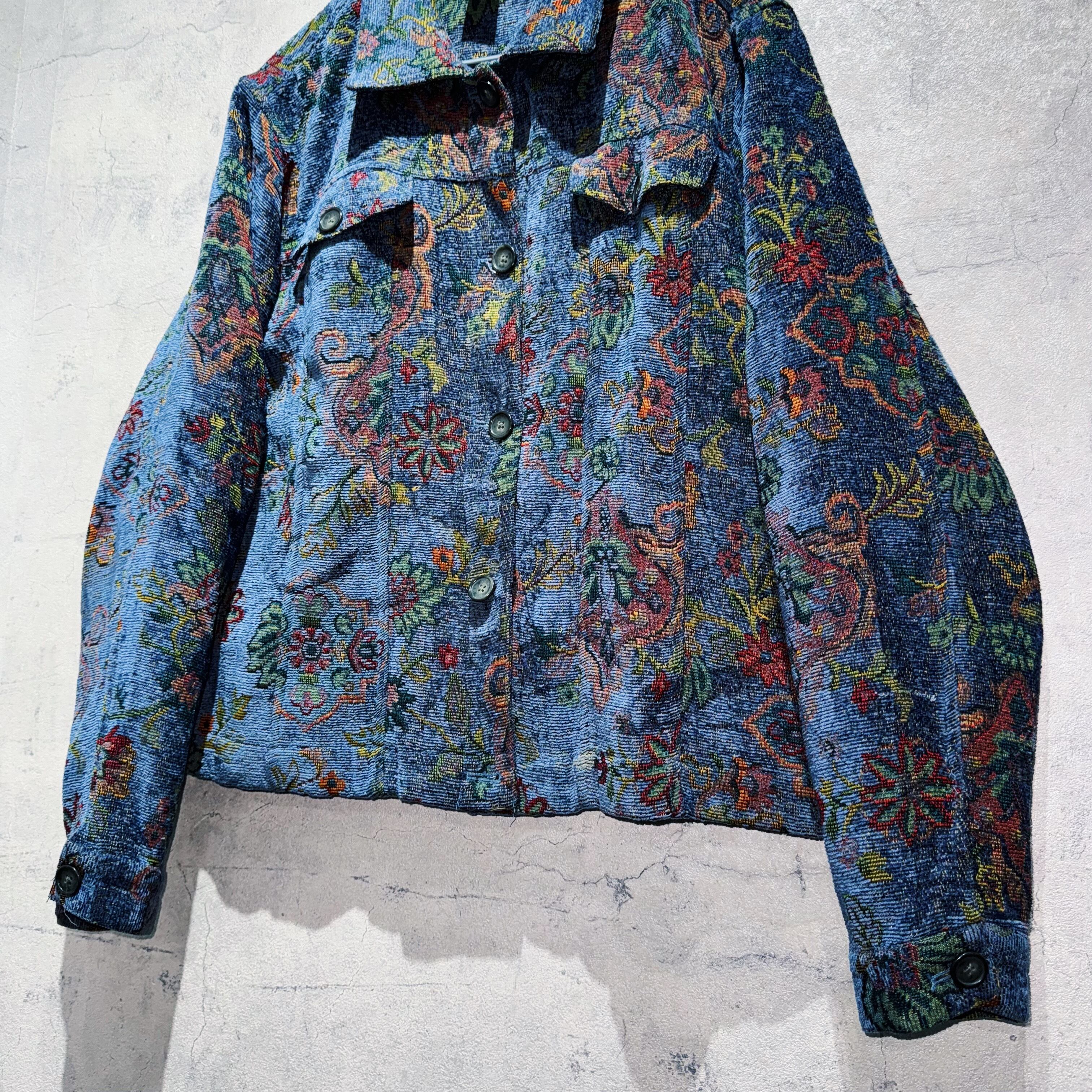 シェニールゴブランウィーブボタニカルパターンエンブロイダリージャケット