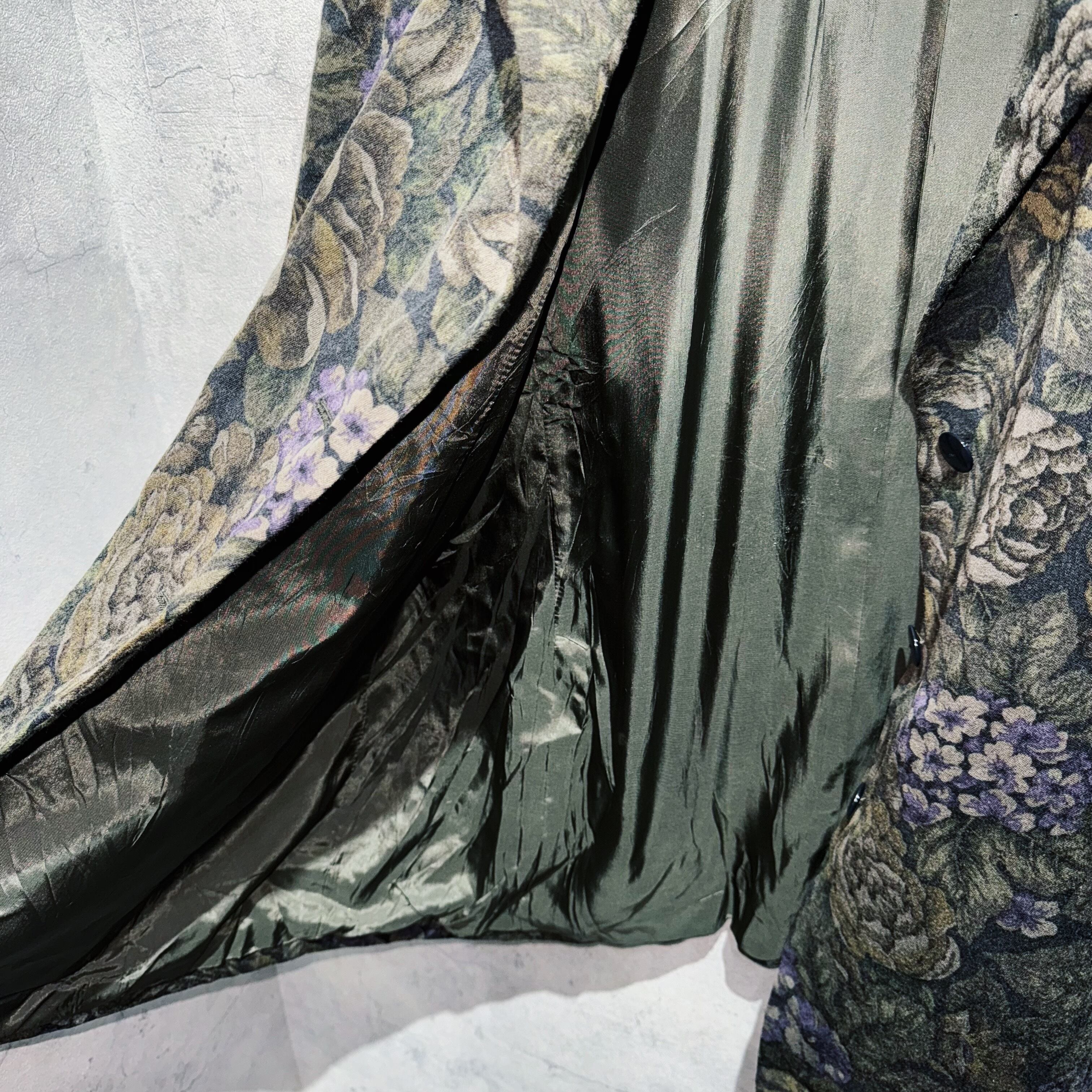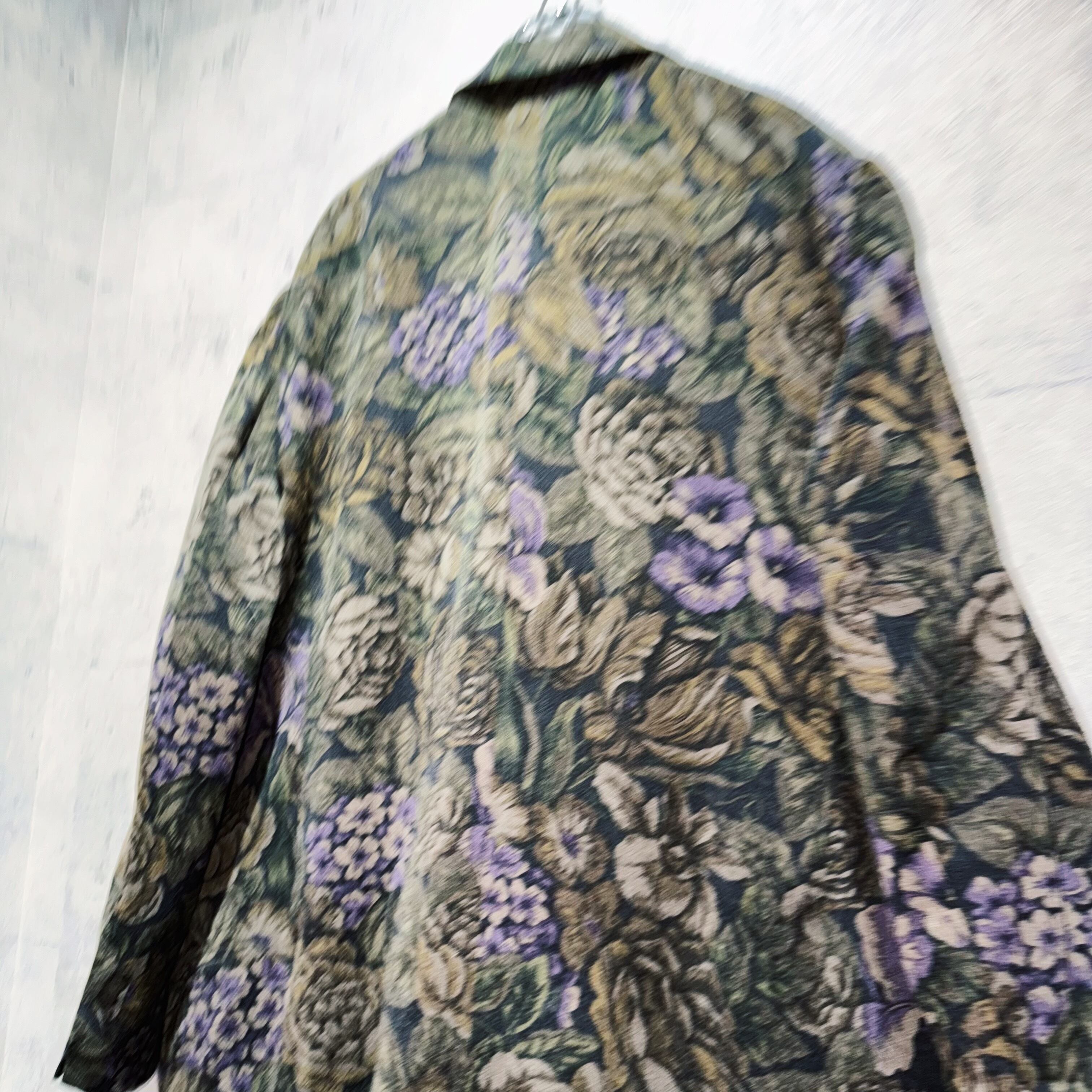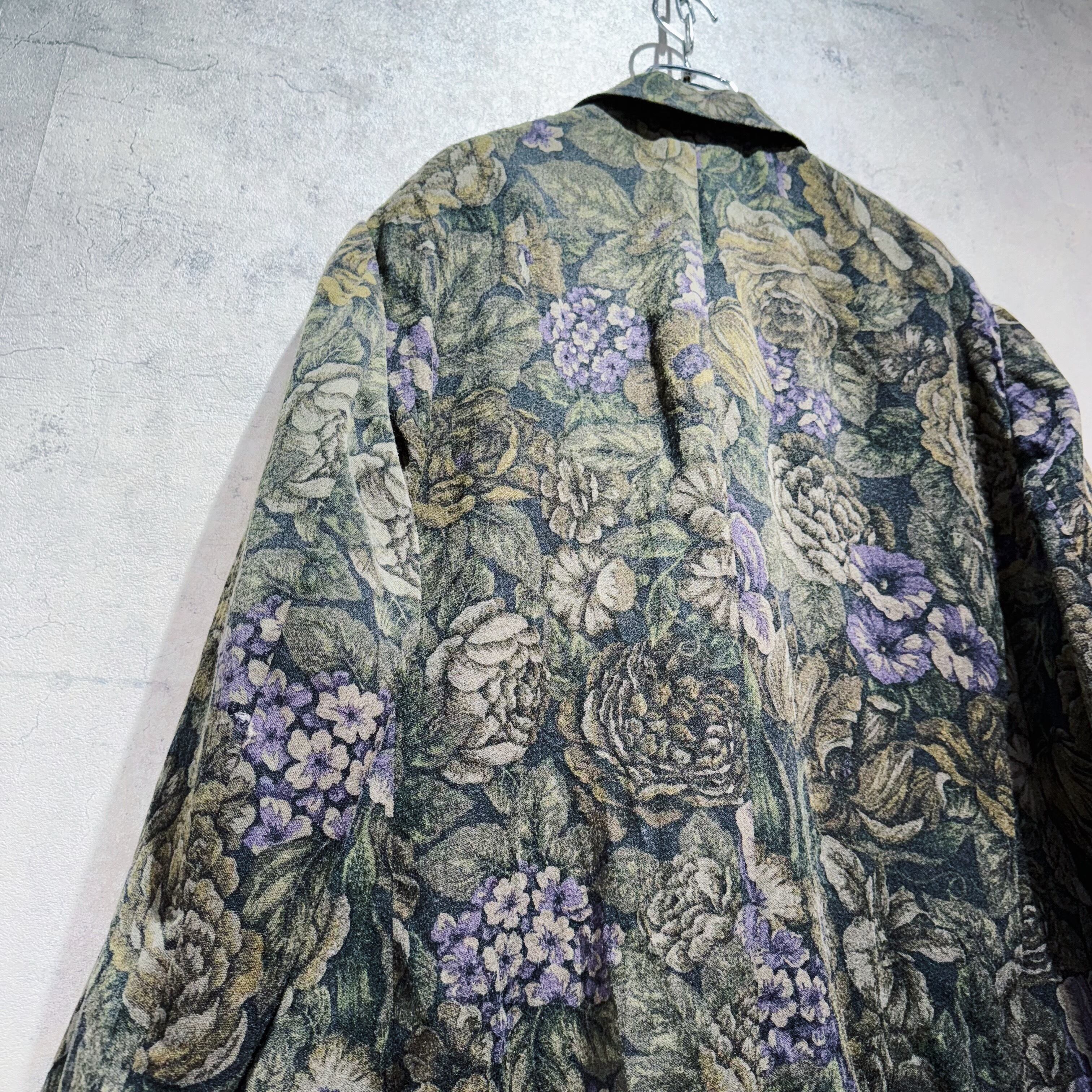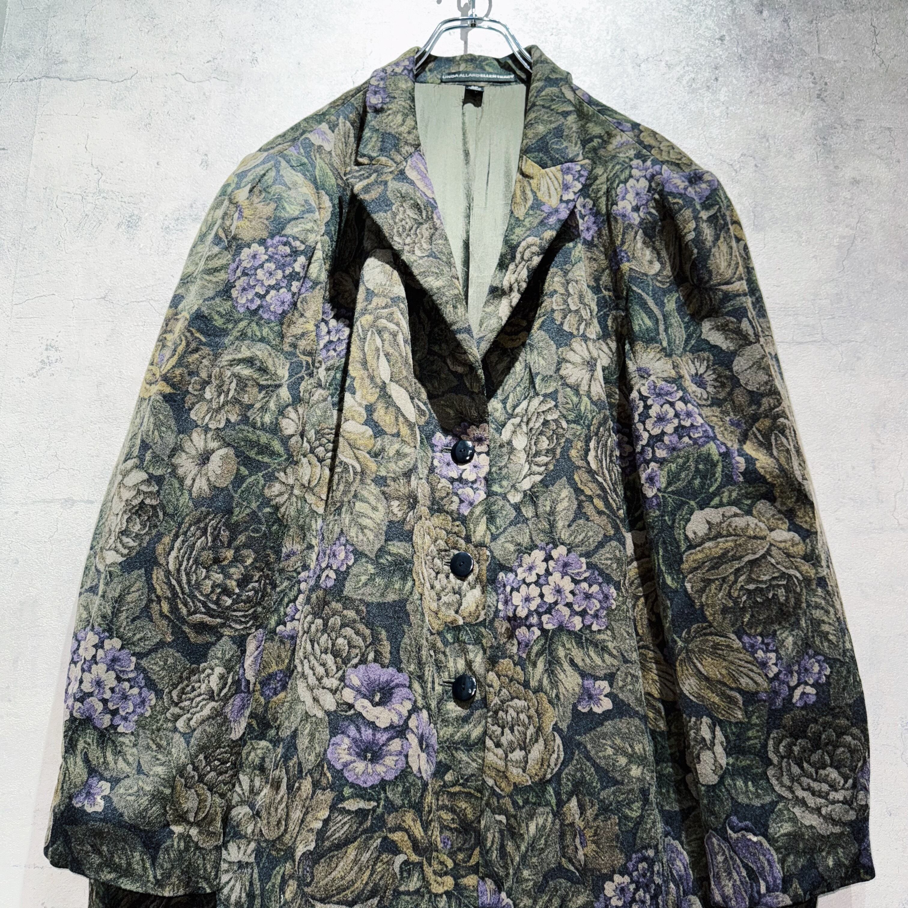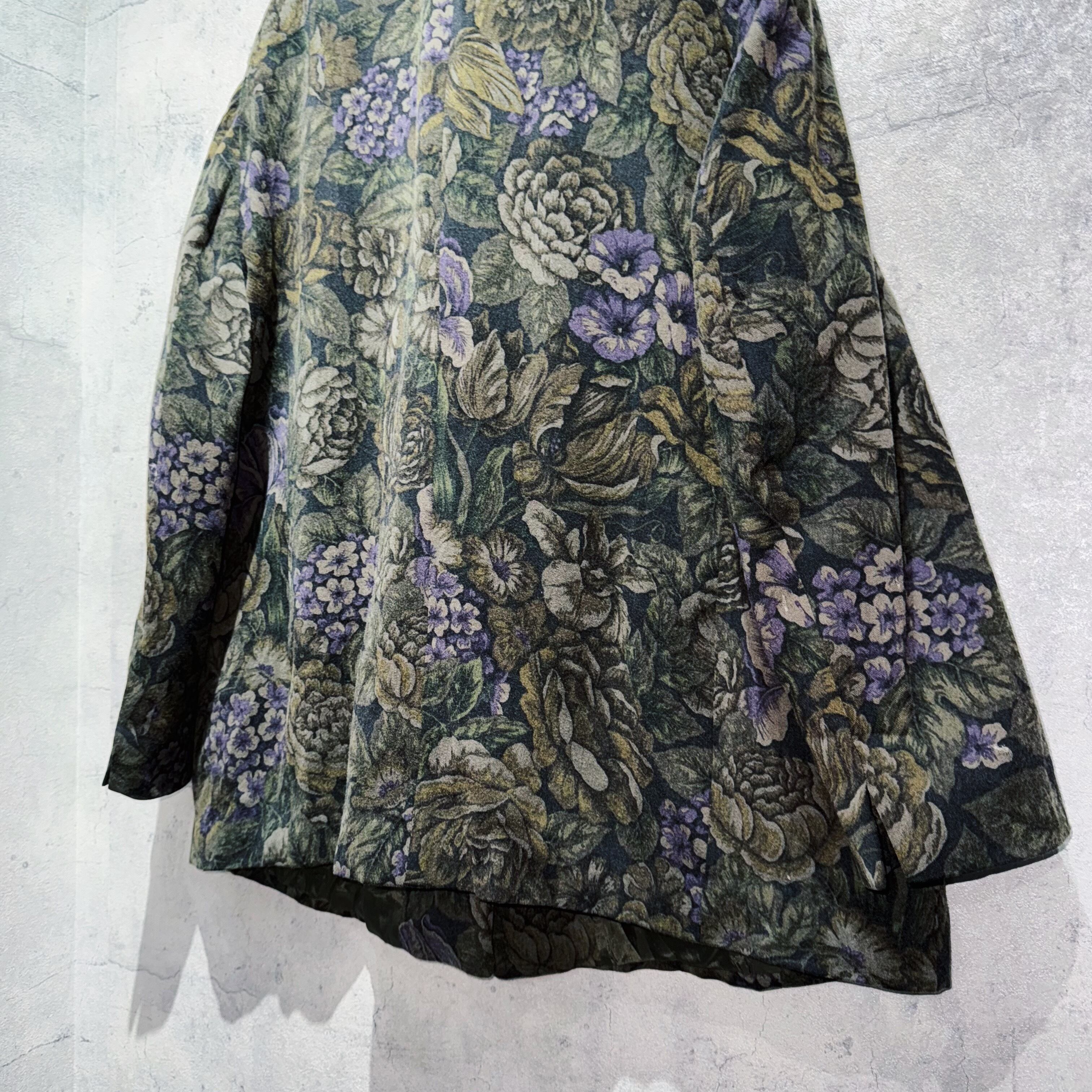 ボディ全体に美しく咲き誇り、レトロや妖麗な雰囲気を醸し出す花々を載せたテーラードジャケット。