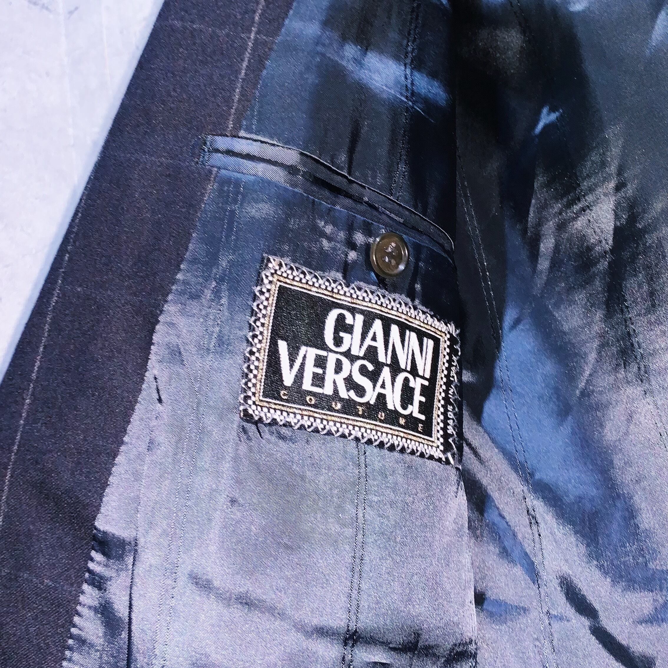 ”ヴェルサーチ”ウィンドウペンチェックパターンデザインクアトロボタンダブルブレストセットアップ