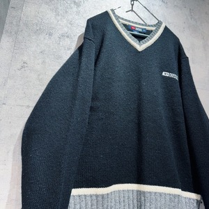 ”ディーゼル”シグネチャーロゴエンブロイダリーデザインVネックウールニット