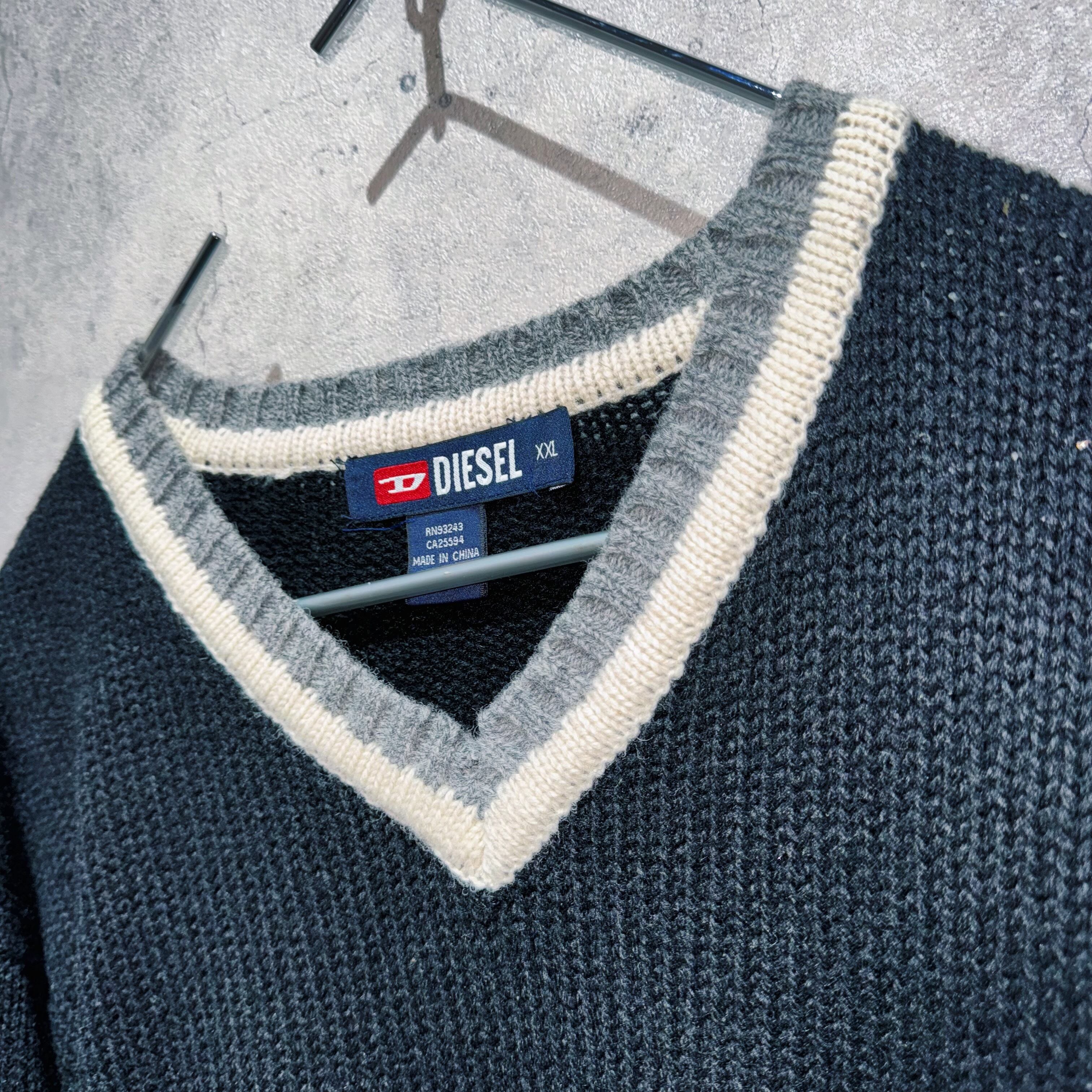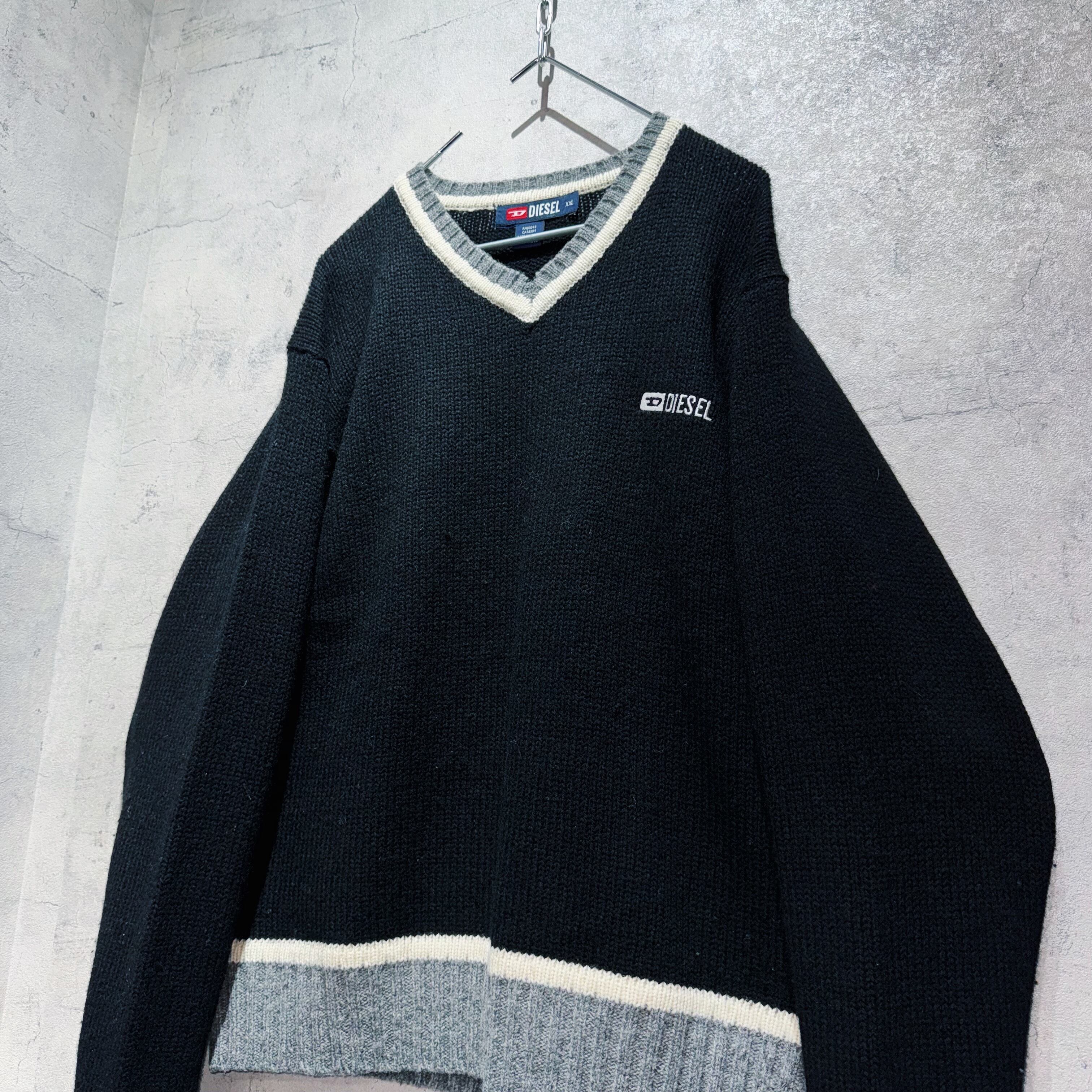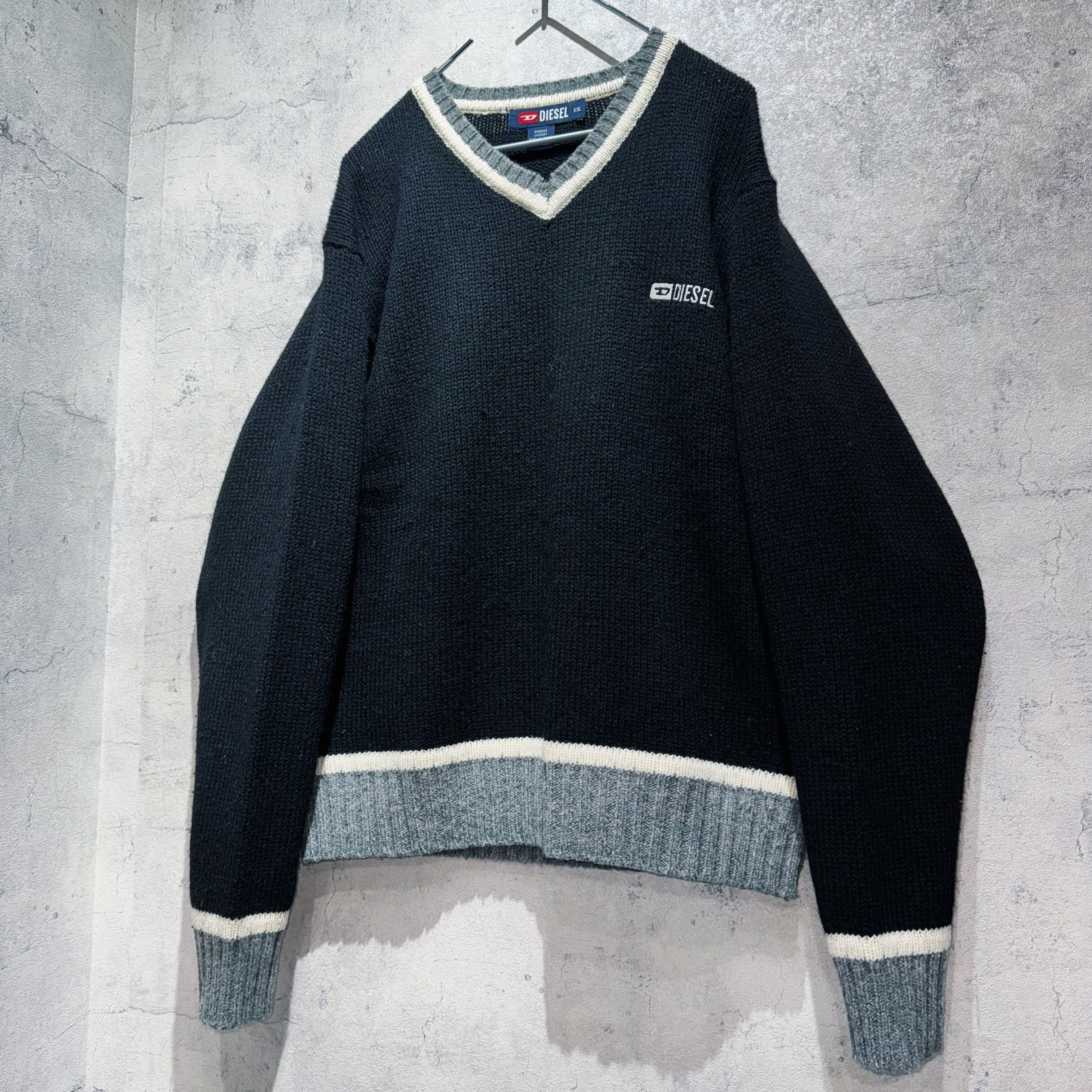 “DIESEL”signature logo embroidery design V-neck wool knit