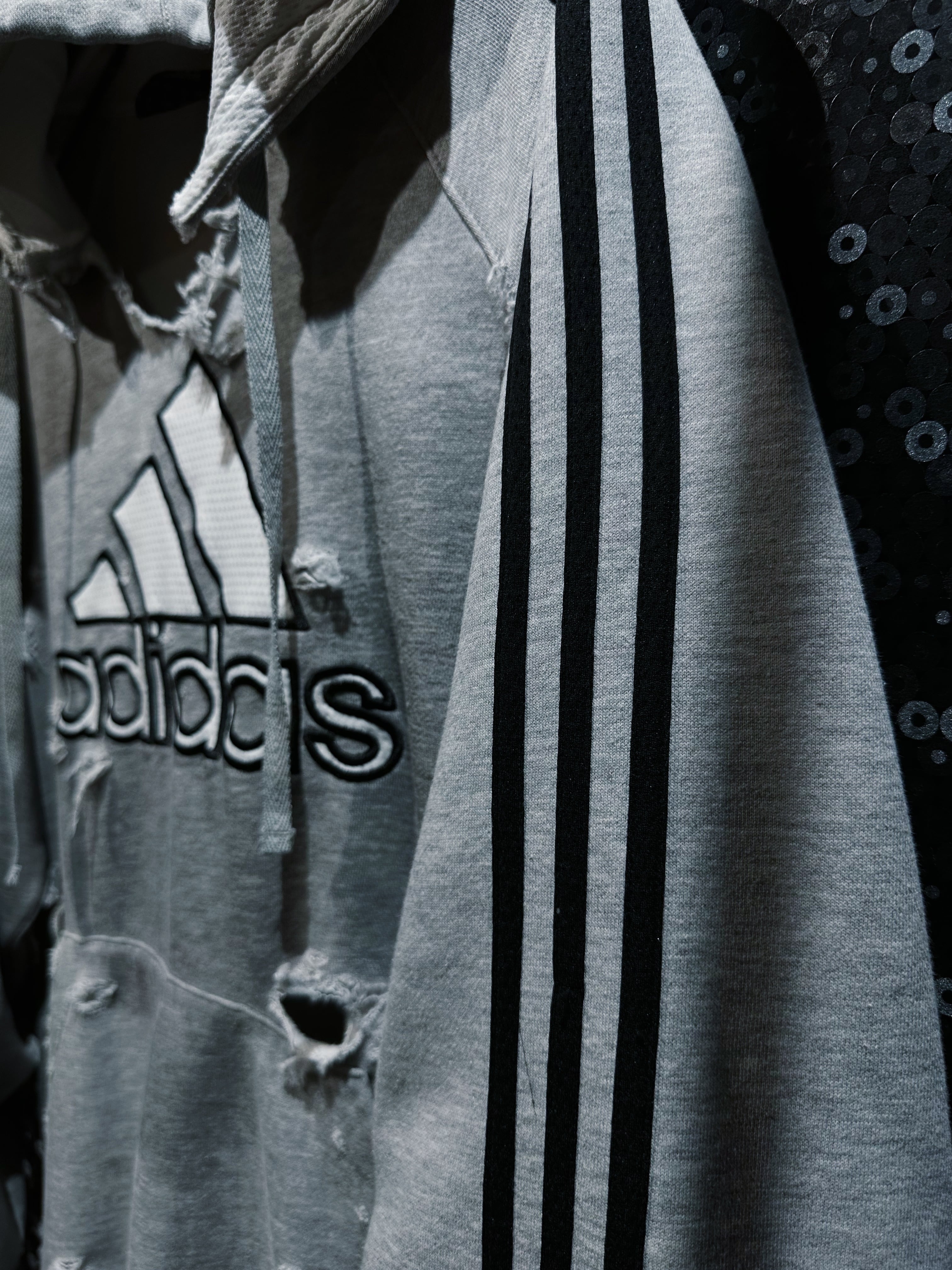 90年代ヴィンテージ"アディダス”ボロカスタムリメイクルーズフーディープルオーバー